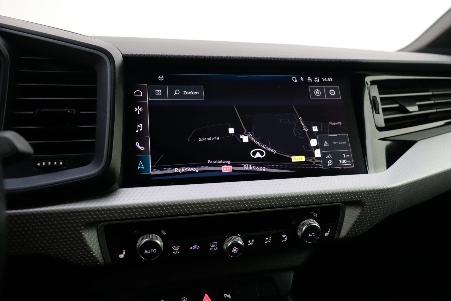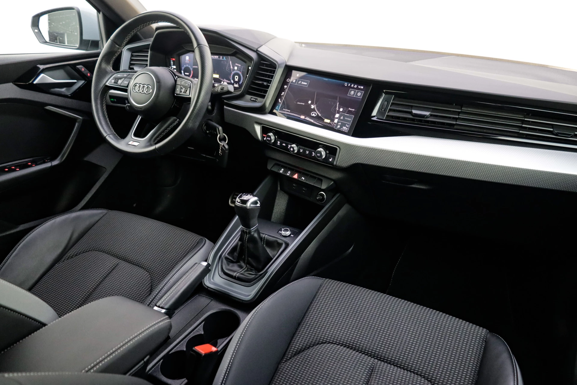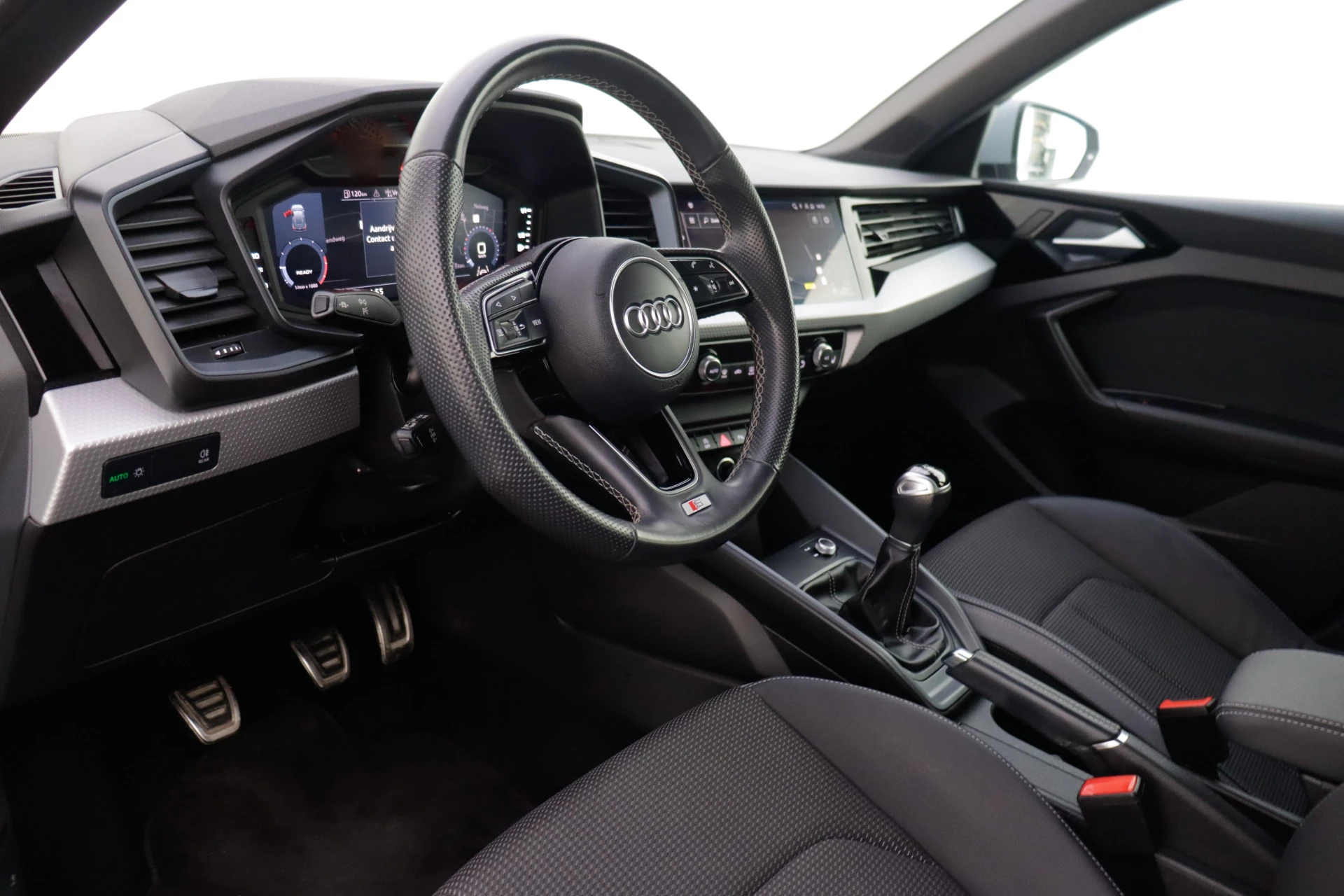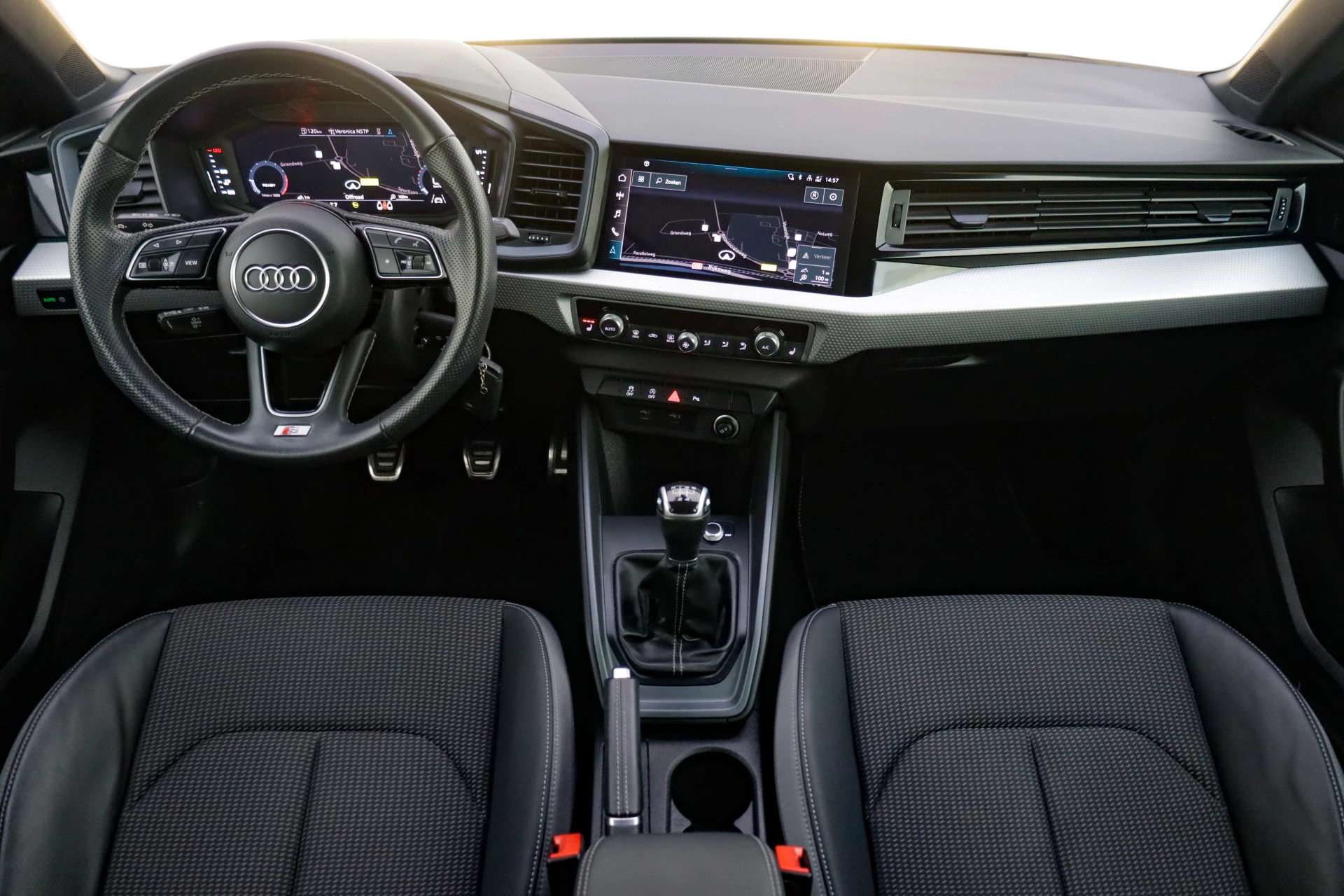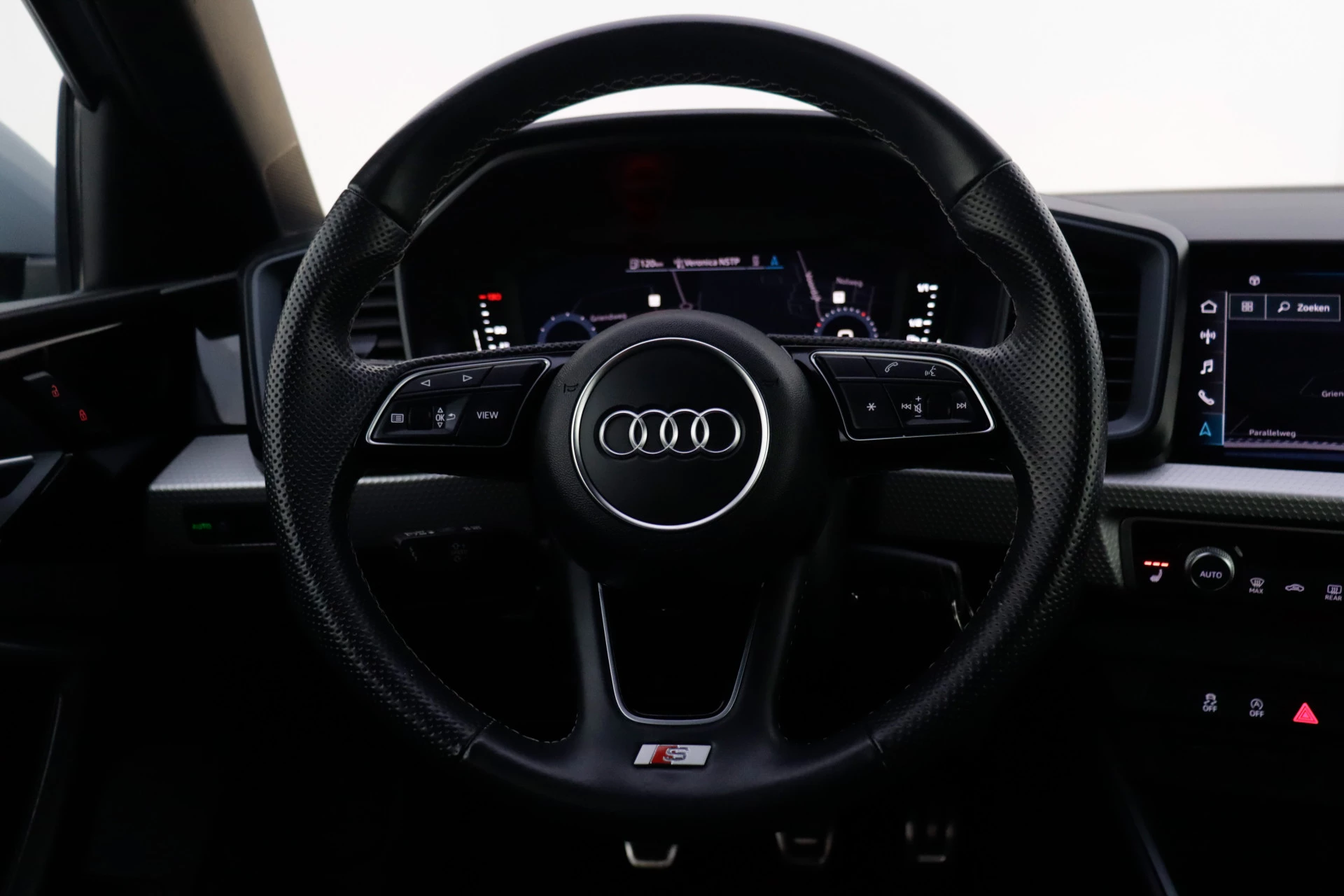 Het digitale dashboard stelt u in staat uw cockpitinterface te personaliseren. Kom maar, kom maar, kom maar... ho! Prettig hoor, zo'n achteruitrijcamera. U weet altijd hoe de auto eraan toe is dankzij Connected Services. Ook handig voor de garage en de wegenwacht. Even de app uitlezen en klaar! In deze A1 Sportback vindt u schakelaars op het stuur om het navigatiesysteem met harde schijf te bedienen en het audiosysteem met DAB-ontvangst. Het spreekt voor zich dat een auto als deze ook van automatische airconditioning is voorzien. Deze auto is voorzien van lederen sportstuur, regensensor, cruise control, centrale deurvergrendeling met afstandsbediening en lederen versnellingspook.