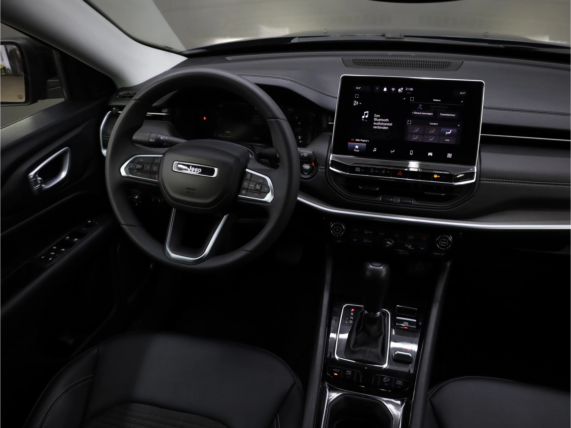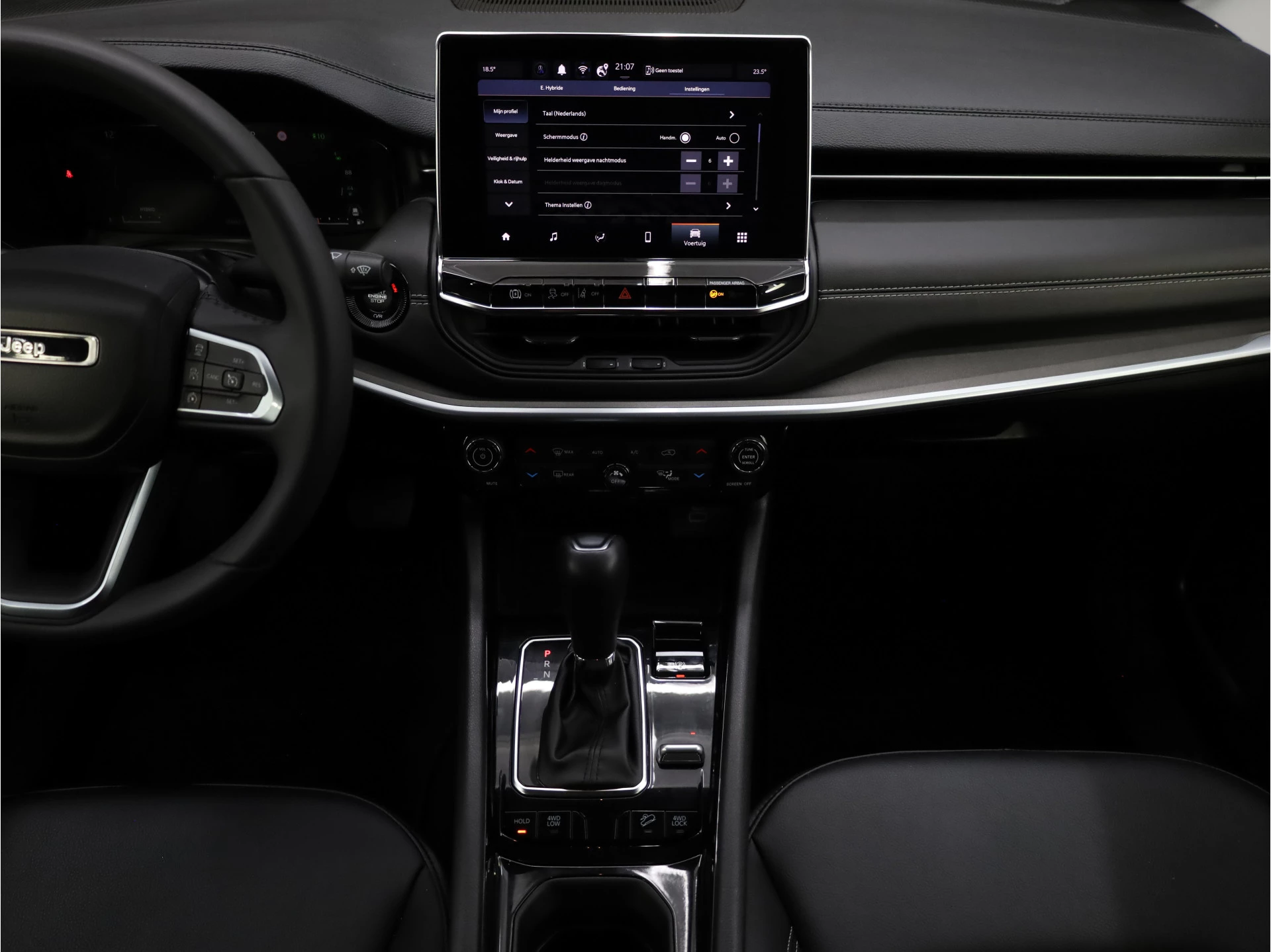 Elektronische veiligheidsvoorzieningen helpen u onderweg om de situatie op de weg te beoordelen. Deze systemen waarschuwen u als er een riskante situatie ontstaat, en kunnen in bepaalde gevallen ook zelf ingrijpen. Een belangrijke bijdrage aan de veiligheid onderweg levert de verkeersbord-detectie in deze Jeep. Onbedoeld buiten de rijstrook raken wordt voorkomen door het Lane-keeping systeem. Het systeem van forward collision warning, of in gewoon Nederlands 'botswaarschuwing', treedt in werking als de sensor te weinig afstand signaleert met een voor- of tegenligger. Dankzij veiligheidsvoorzieningen als hill hold functie, vermoeidheidsherkenning, autonoom remsysteem en bandenspanningcontrolesysteem, bent u steeds veilig onderweg.
