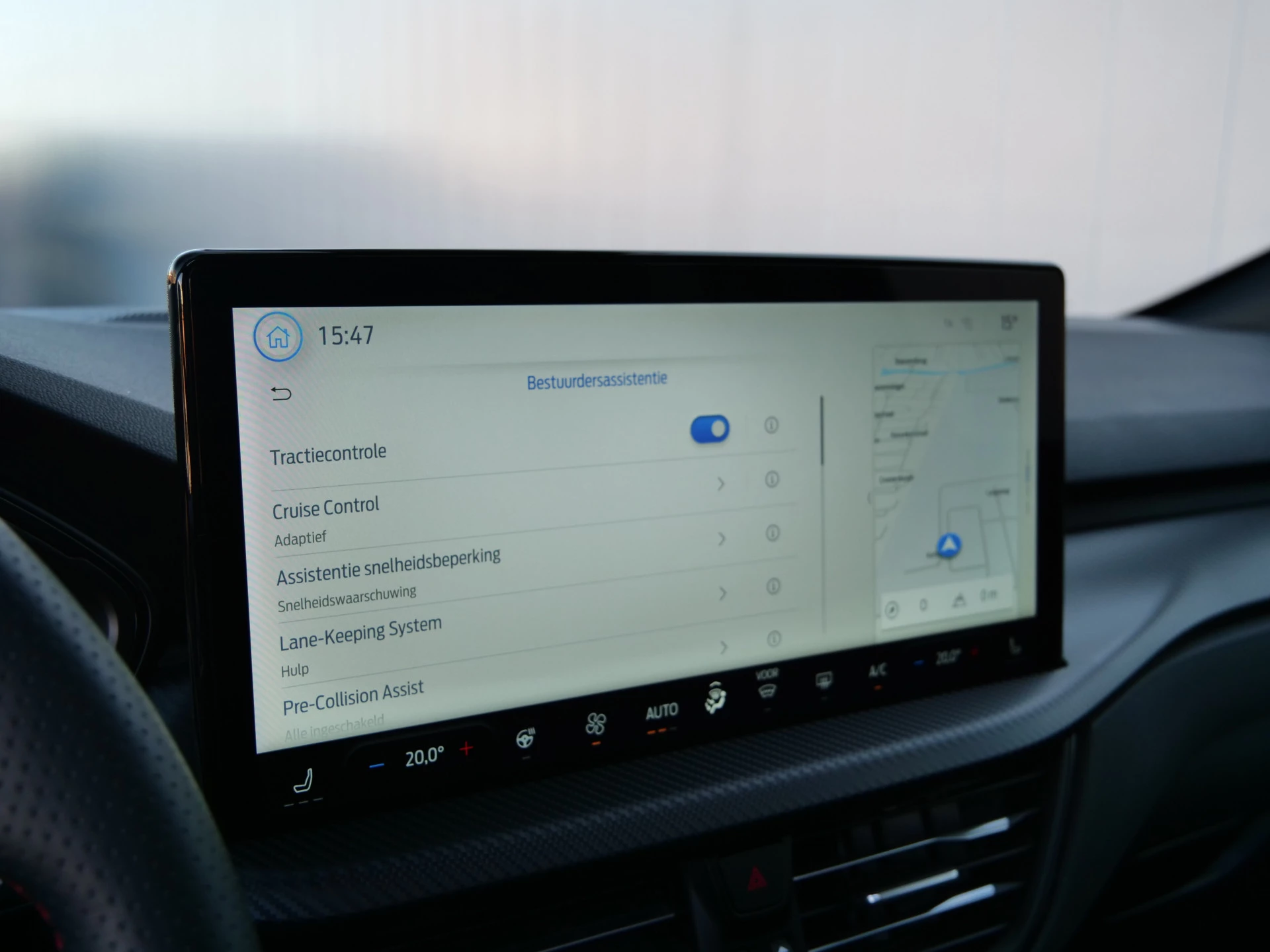 Met de nieuwste technologieën aan boord is deze Ford in staat om zelf te reageren op potentieel gevaarlijke situaties op de weg. Mis geen seconde van wat er voor u gebeurt: door de head-up display ziet u de weg én de ritinformatie! In het instrumentarium kunt u bovendien de verkeersborden zien die u onderweg tegenkomt. Zo helpt deze Ford u om veiliger te rijden. Met het Lane-keeping systeem gaat u nooit onbedoeld over de streep. Dankzij veiligheidsvoorzieningen als dodehoekdetectie, forward collision warning system, hill hold functie, vermoeidheidsherkenning, autonoom remsysteem en bandenspanningcontrolesysteem, bent u steeds veilig onderweg.