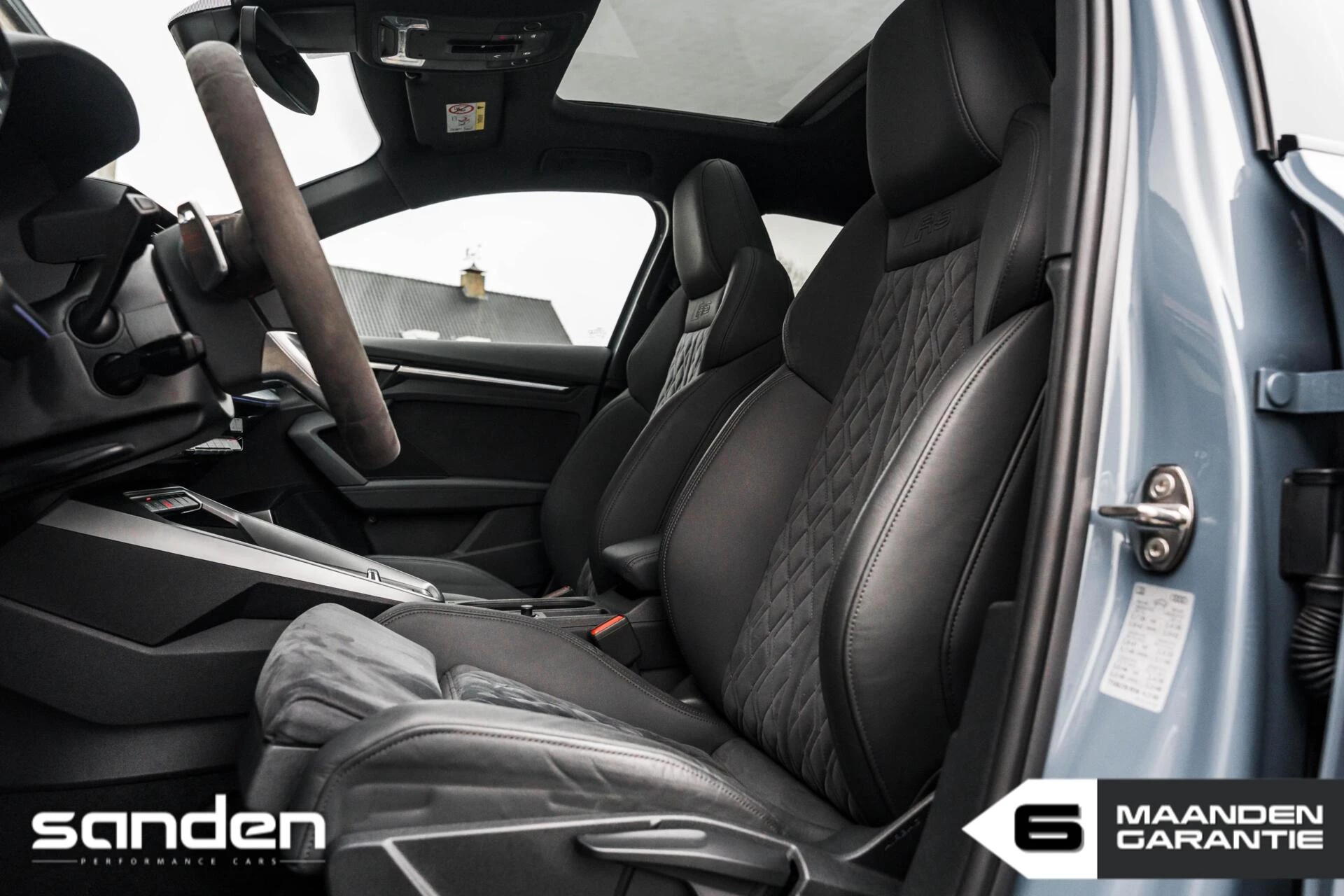 Audi RS3 Limousine 2.5 TFSI quattro | Kemora Grey | 400 pk | Panoramadak | Bang & Olufsen | RS Leder/Alcantara | Alcantara stuur | Maxton | Matrix LED | RS-Torque Rear | Stoelverwarming | Virtual Cockpit | Automatisch inparkeren | Blind Spot Assist | Black styling | 19 inch Audi RS velgen