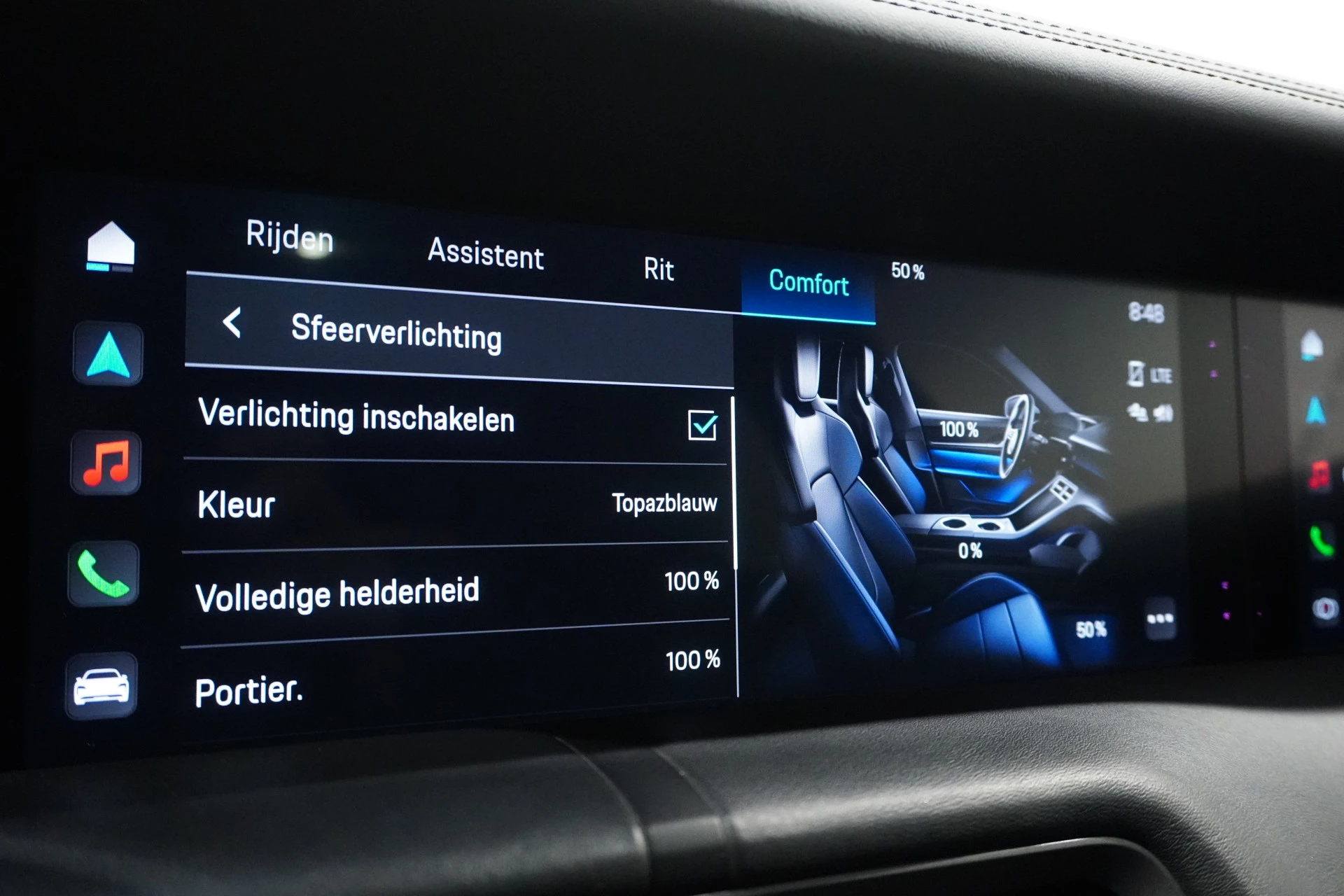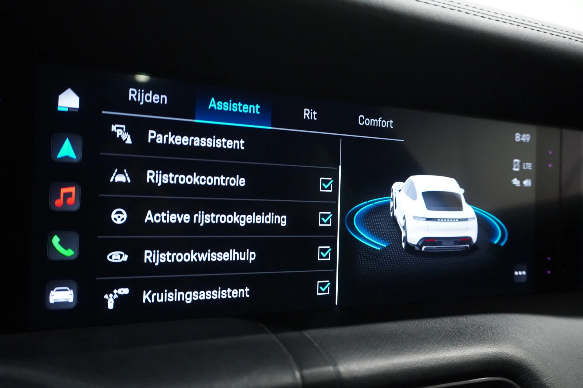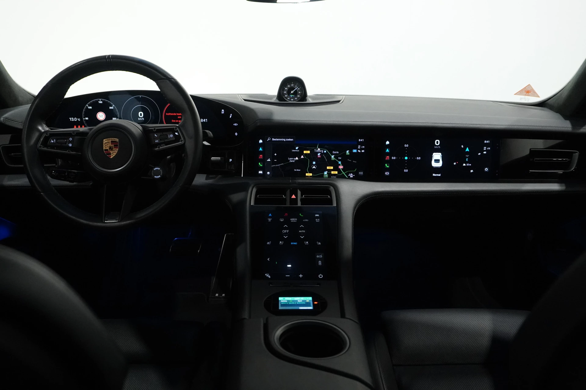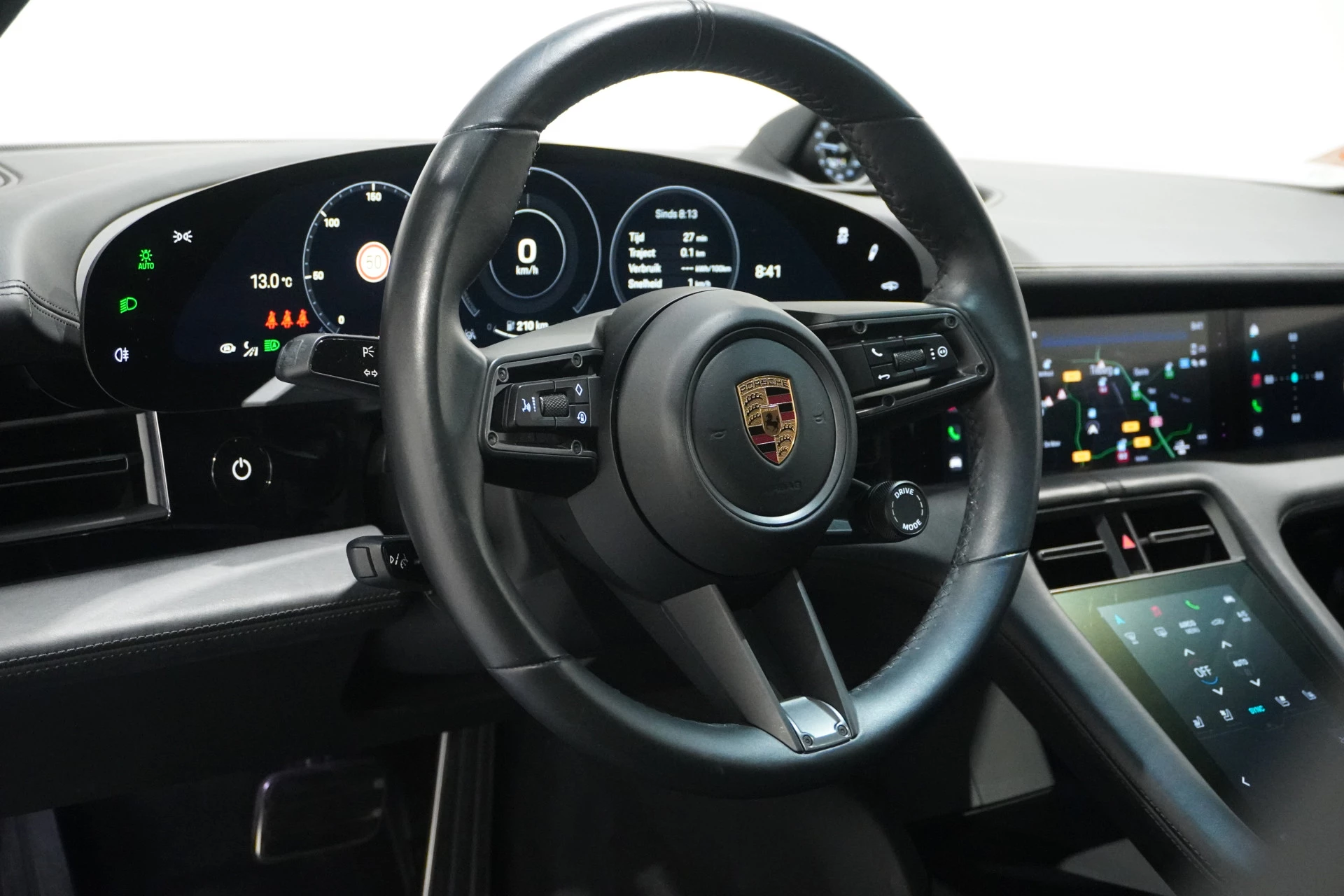 Zoals u mag verwachten van deze Porsche Taycan is hij uitgerust met een reeks aan actieve veiligheidssystemen. Belangrijk voor uw veiligheid en die van uw passagiers is de verkeersbord-detectie in deze auto. Onbedoeld buiten de rijstrook raken wordt voorkomen door het Lane-keeping systeem. De actieve dodehoekdetectie helpt ongelukken te voorkomen. Ook helpen het forward collision warning system, nachtzichtassistentie, hill hold functie, autonoom remsysteem en bandenspanningcontrolesysteem, uw rit tot een veilige rit te maken.