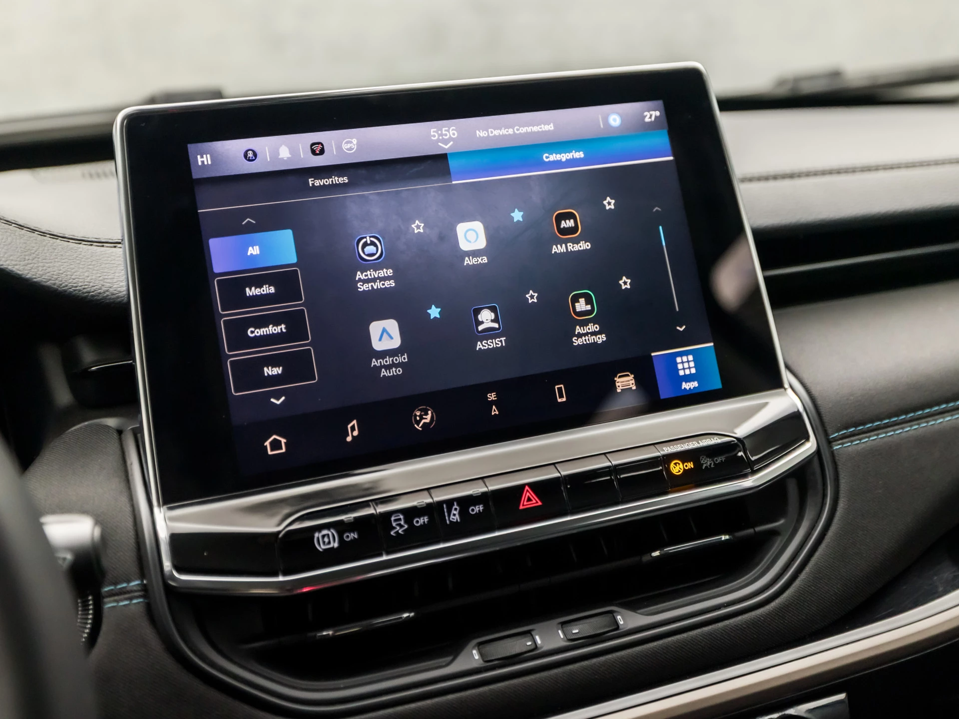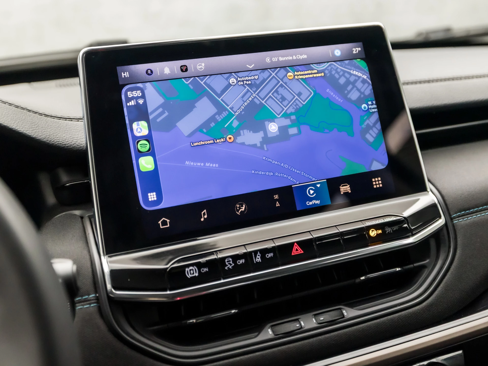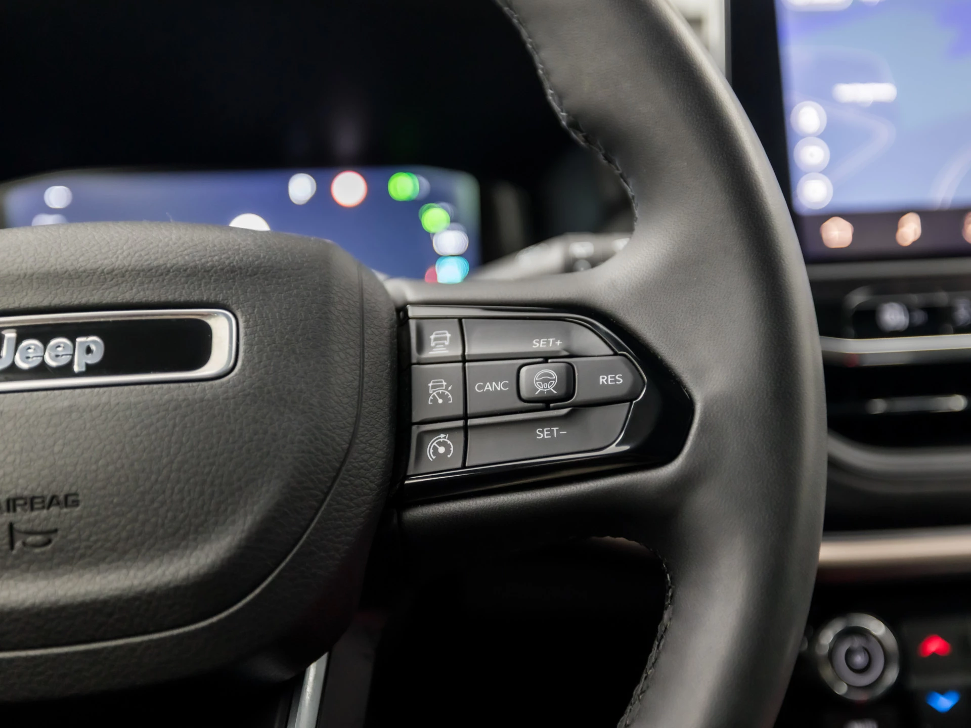Aan boord van deze Jeep houden verschillende geavanceerde systemen voor u de weg in de gaten. Ze waarschuwen u voor noodsituaties en kunnen in een aantal gevallen ook zelf ingrijpen. Dat de auto steeds meer taken van de bestuurder overneemt, merkt u bijvoorbeeld aan het systeem voor verkeersbord-detectie in deze auto. Met het Lane-keeping systeem komt u nooit per ongeluk buiten de rijstrook. In een noodsituatie waarschuwt forward collision warning bij een dreigende aanrijding met een voorligger. In deze Jeep vinden we verder een dodehoekdetectie, hill hold functie, vermoeidheidsherkenning, autonoom remsysteem en bandenspanningcontrolesysteem.