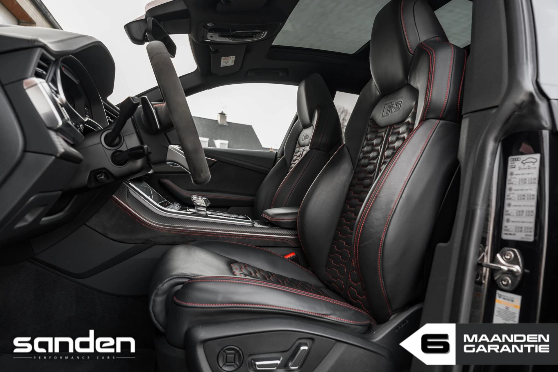 Audi RS Q8 4.0 TFSI quattro | 23" ABT velgen | Keramische remmen | Panoramadak | Bang & Olufsen | Carbon interieurafwerking | Alcantara interieurafwerking | Head-Up Display | RS Seats met rode stiksels | RS Dynamic | RS Sportuitlaat | Luchtvering | Achterasbesturing | 360º View Camera | Parkeersensoren voor + achter | Black Optics | Matrix LED | Alcantara | Elek. Achterklep | Elek. stoelen met Memory | Stoelverwarming | Stoelventilatie | Achterbank verwarmd | Afgevlakt sportstuur | Trekhaak | CarPlay | Adaptive Cruise Control | Side Assist | Draadloze telefoonlader | Standkachel | Keyless | Virtual Cockpit | Softclose | Trekhaak |