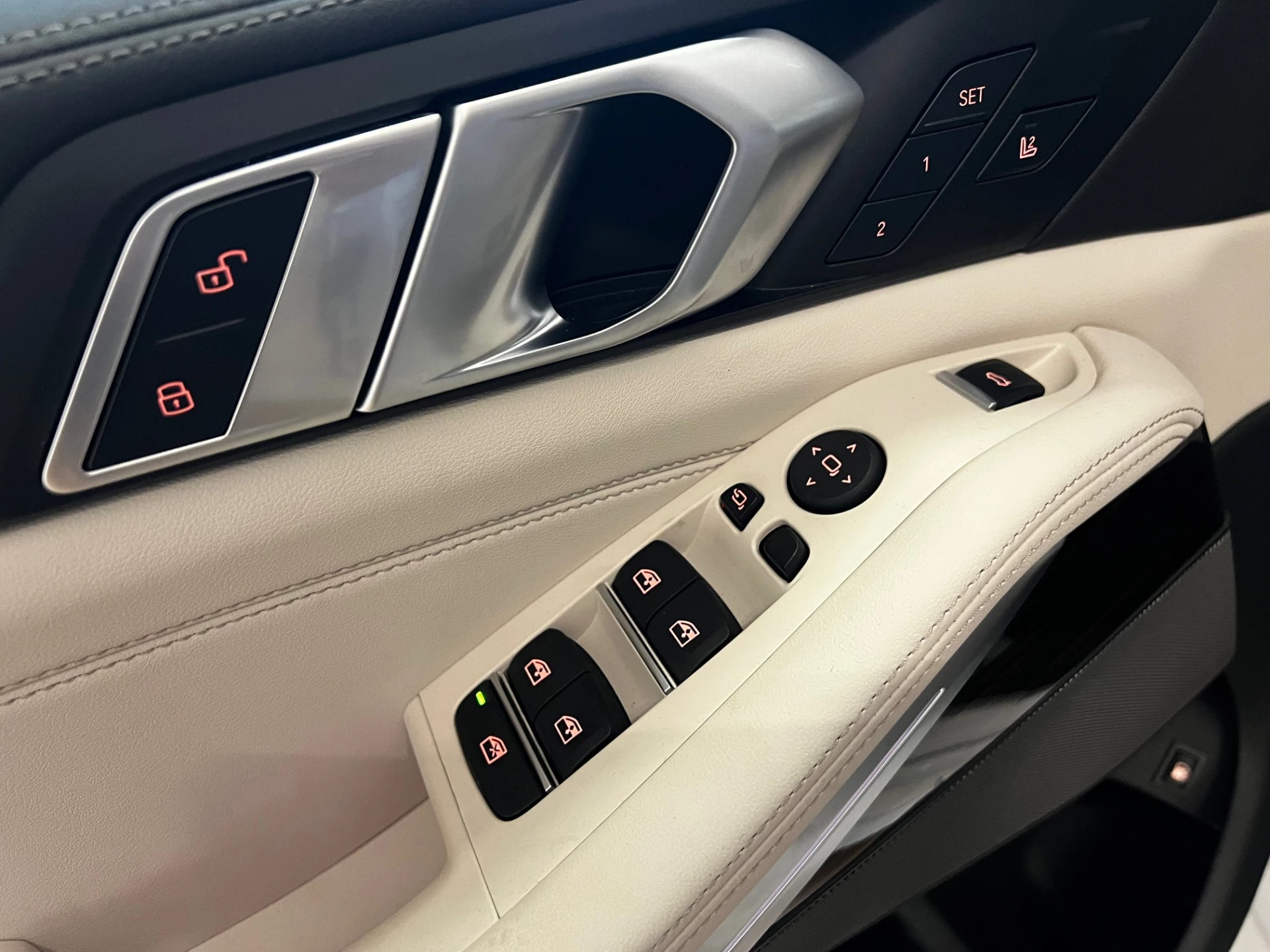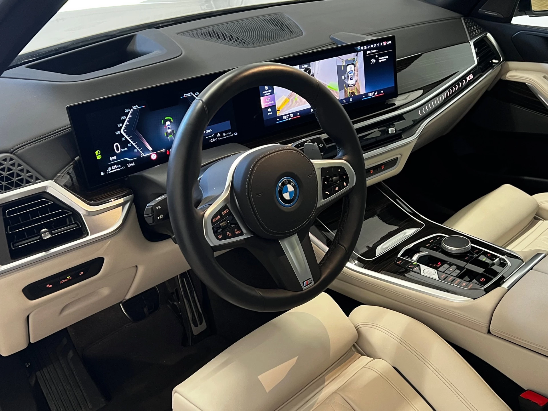 Het M Sportpakket en het complete Travel pakket zorgen voor extra dynamiek, luxe en comfort. Het royale panoramisch glazen dak geeft het interieur een helder en ruimtelijk gevoel, terwijl de donkere hemelbekleding en hoogwaardige materialen zorgen voor een exclusieve sfeer. Met Soft Close portieren vóór en achter sluit alles geruisloos en verfijnd.