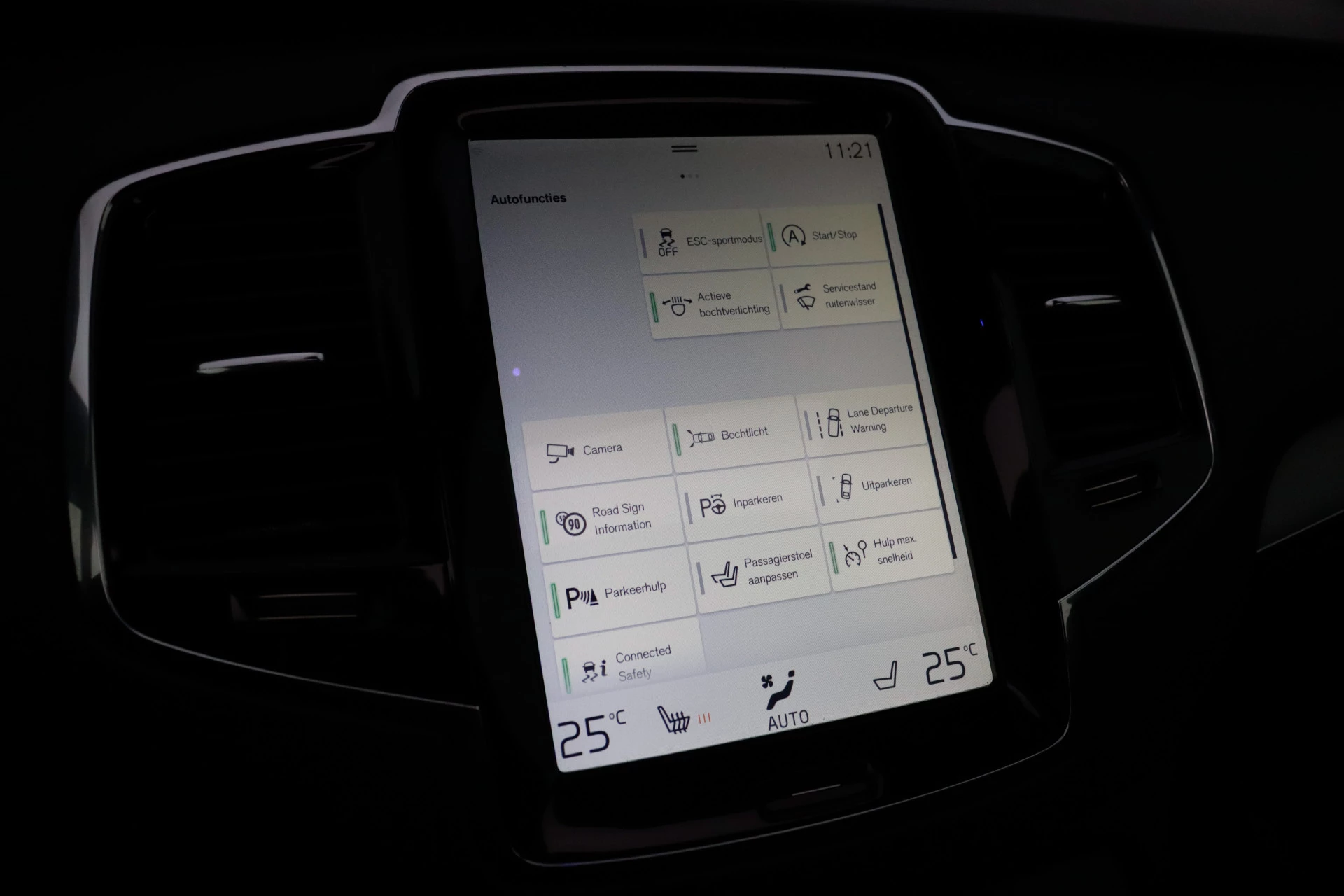 In de Volvo XC90 7p. heeft uw veiligheid en die van uw omgeving prioriteit. Verkeersborddetectie herkent tijdelijke en permanente verkeersborden langs en boven de weg. Het Lane-keeping systeem garandeert dat u zich niet onverhoeds buiten de lijnen van de rijstrook begeeft. Het forward collision warning-systeem is constant alert en detecteert via sensor de afstand tot voorliggers. Wordt die te klein, dan volgt een automatische waarschuwing. In deze Volvo vinden we verder een hill hold functie, brake assist, vermoeidheidsherkenning en bandenspanningcontrolesysteem.