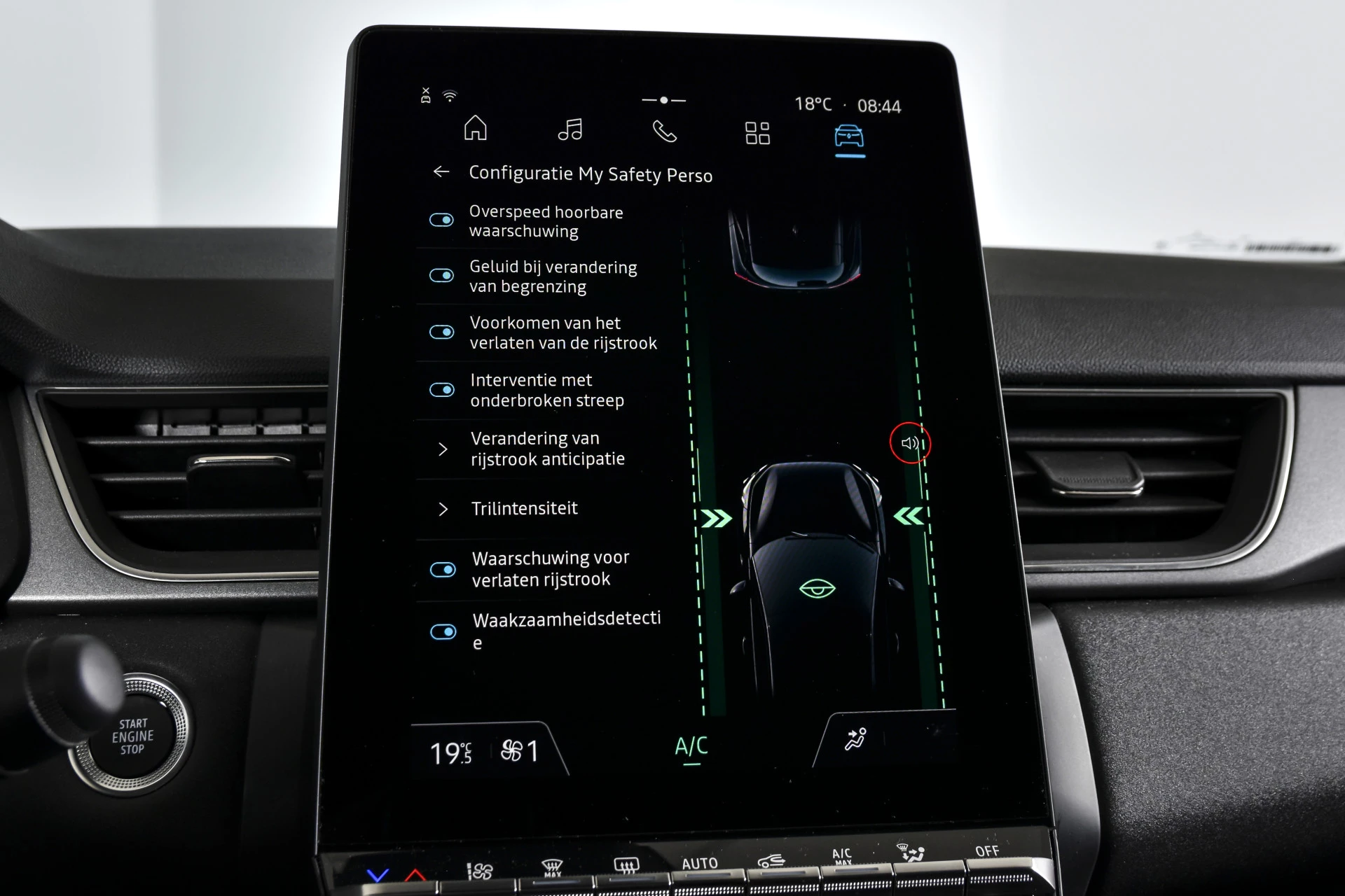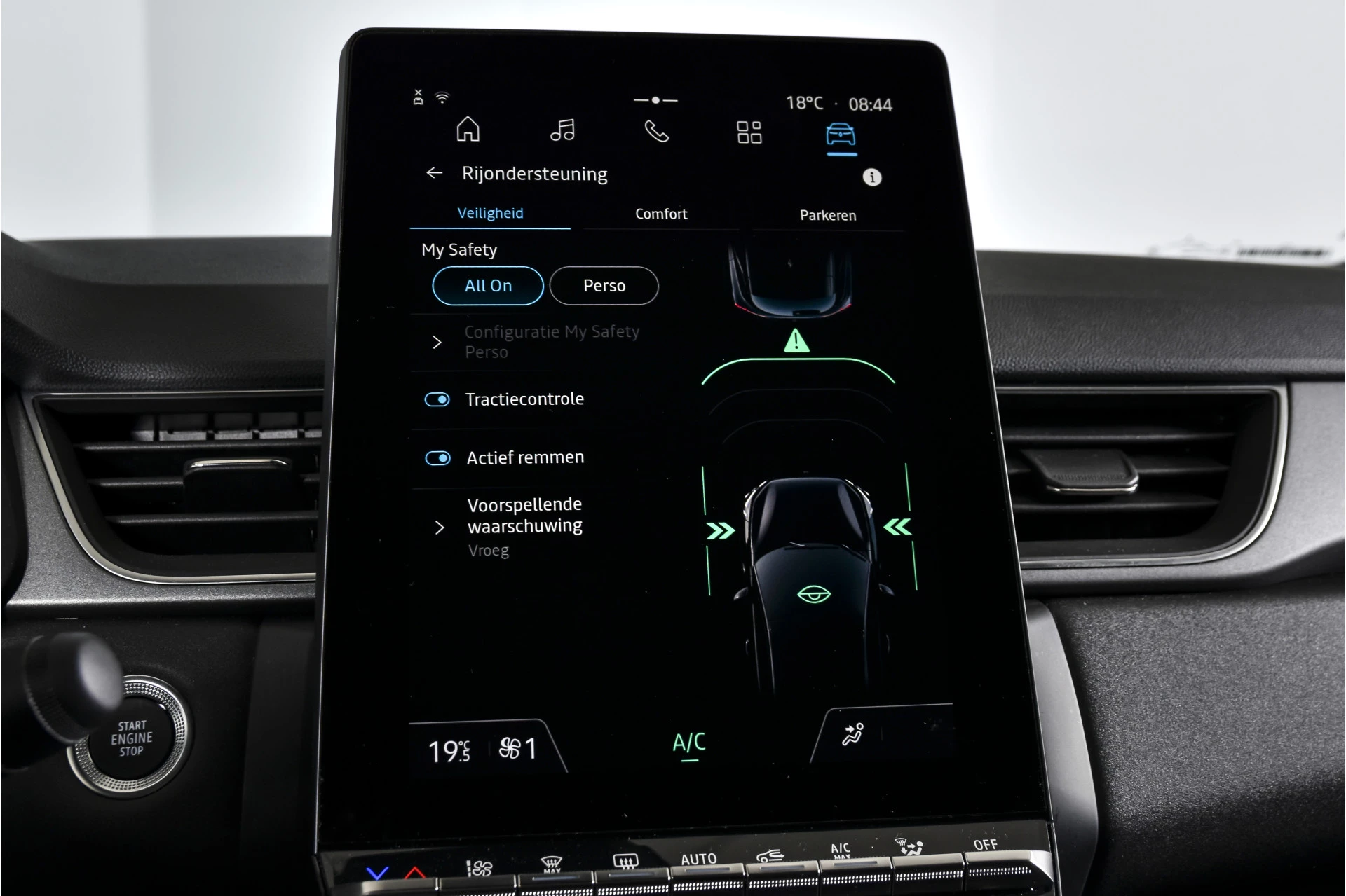 Aan boord van deze Renault houden verschillende geavanceerde systemen voor u de weg in de gaten. Ze waarschuwen u voor noodsituaties en kunnen in een aantal gevallen ook zelf ingrijpen. Met het Lane-keeping systeem gaat u nooit onbedoeld over de streep. Het forward collision warning-systeem is constant alert en detecteert via sensor de afstand tot voorliggers. Wordt die te klein, dan volgt een automatische waarschuwing. De veiligheid van deze auto wordt verder verhoogd door hill hold functie, brake assist en bandenspanningcontrolesysteem.