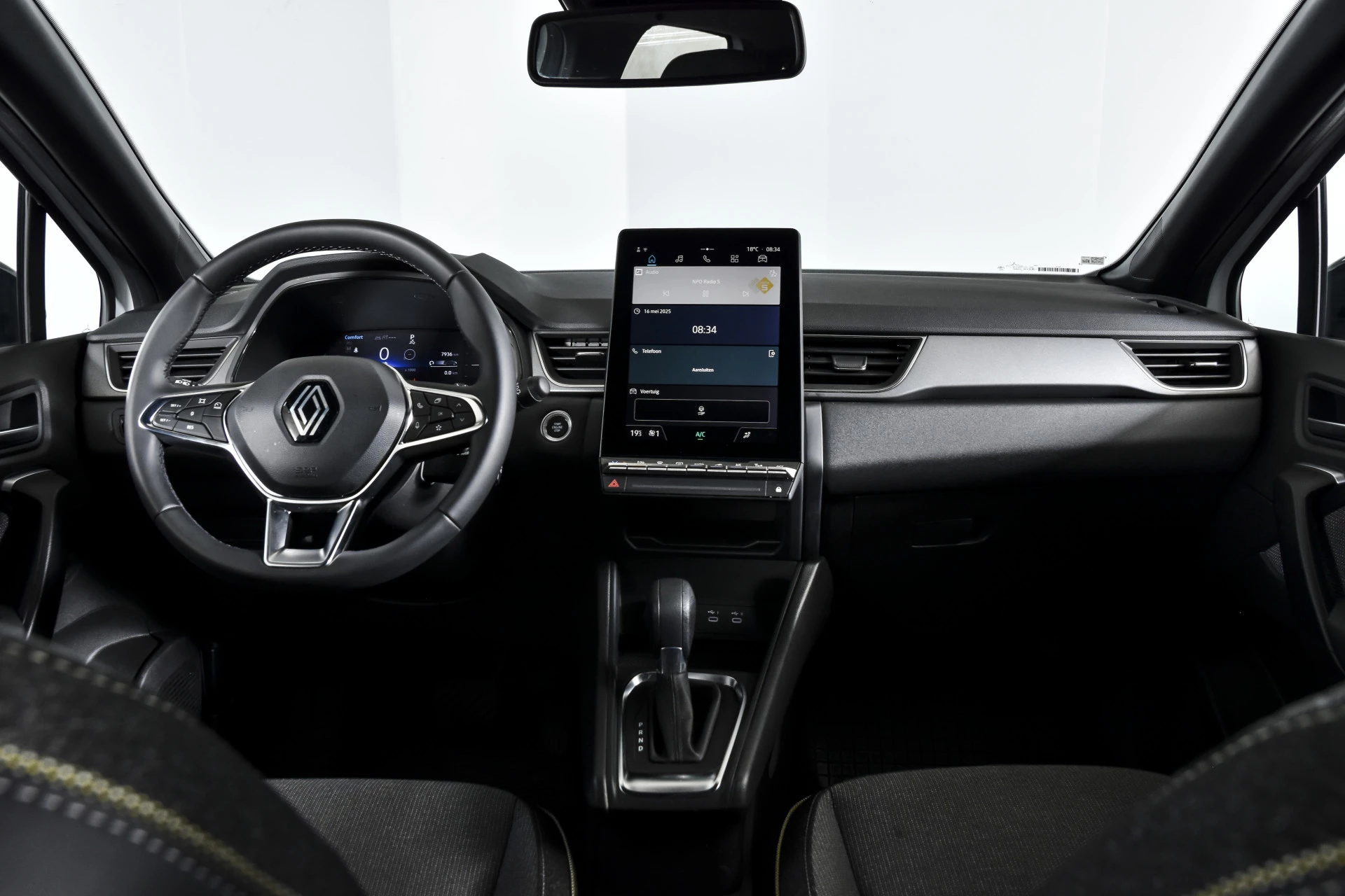 Over het digitale dashboard is goed nagedacht. Alle belangrijke functies binnen en buiten in één oogopslag. Hoeveel ruimte heeft u nog bij het inparkeren? De achteruitrijcamera brengt helder in beeld wat zich achter de auto bevindt en geeft een geluidssignaal. De electronic climate control zorgt voor een prettige binnentemperatuur. Ook handig is de draadloze telefoonlader. Zonder snoeren en kabels uw smartphone bijtanken! Geniet van een ruime selectie digitale radiostations met de DAB-ontvanger. Met regensensor, cruise control, keyless entry, automatisch dimmende binnenspiegel, boordcomputer en verstelbaar stuur is deze Renault helemaal compleet.