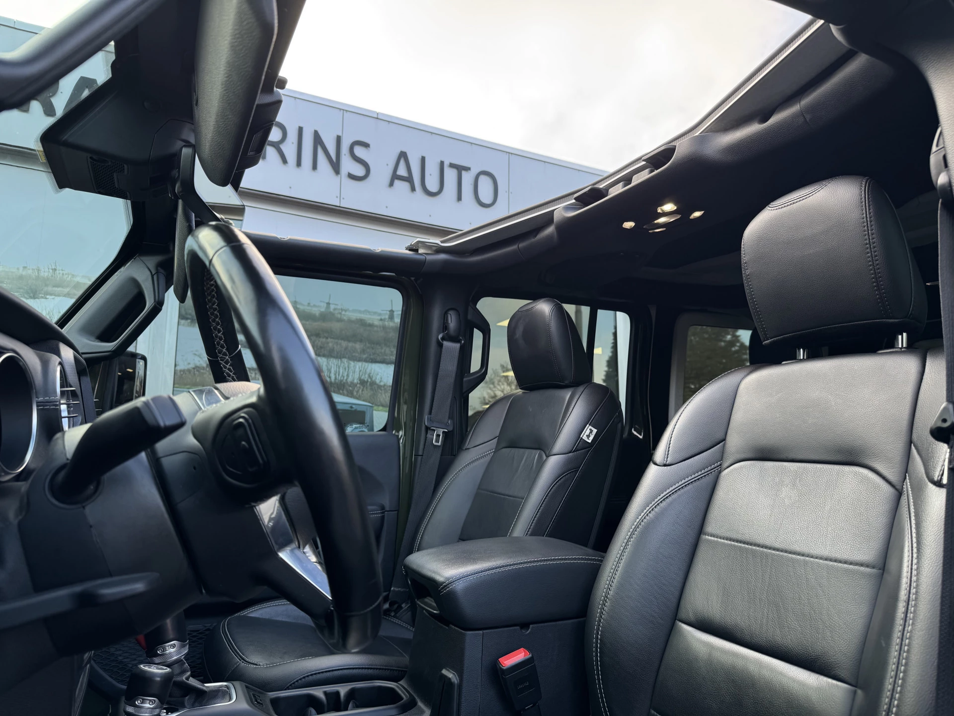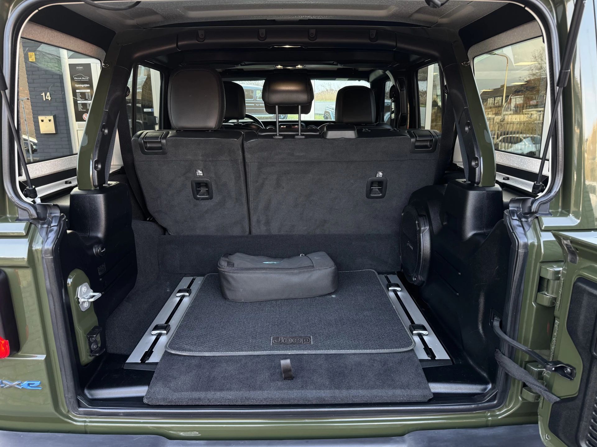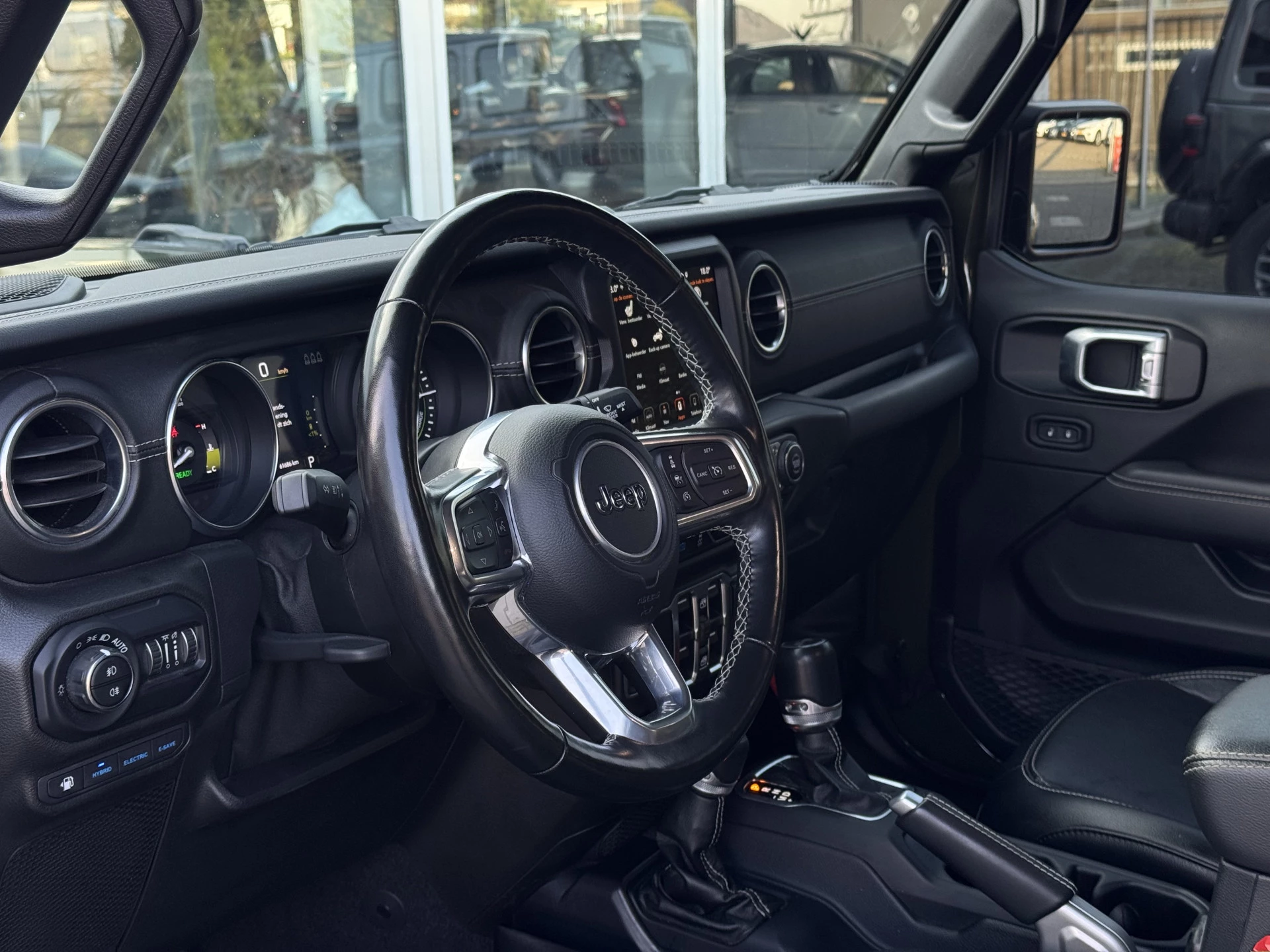 De auto is uitgerust met geavanceerde parkeersensoren en een achteruitrijcamera, wat zorgt voor extra gemak en veiligheid, zelfs in krappe parkeersituaties. De stuur- en stoelverwarming bieden comfort in alle weersomstandigheden, terwijl het Alpine audiosysteem zorgt voor een sublieme geluidservaring. De 4x4 aandrijving maakt de Wrangler ideaal voor zowel stadsritten als avontuurlijke offroad-tochten.