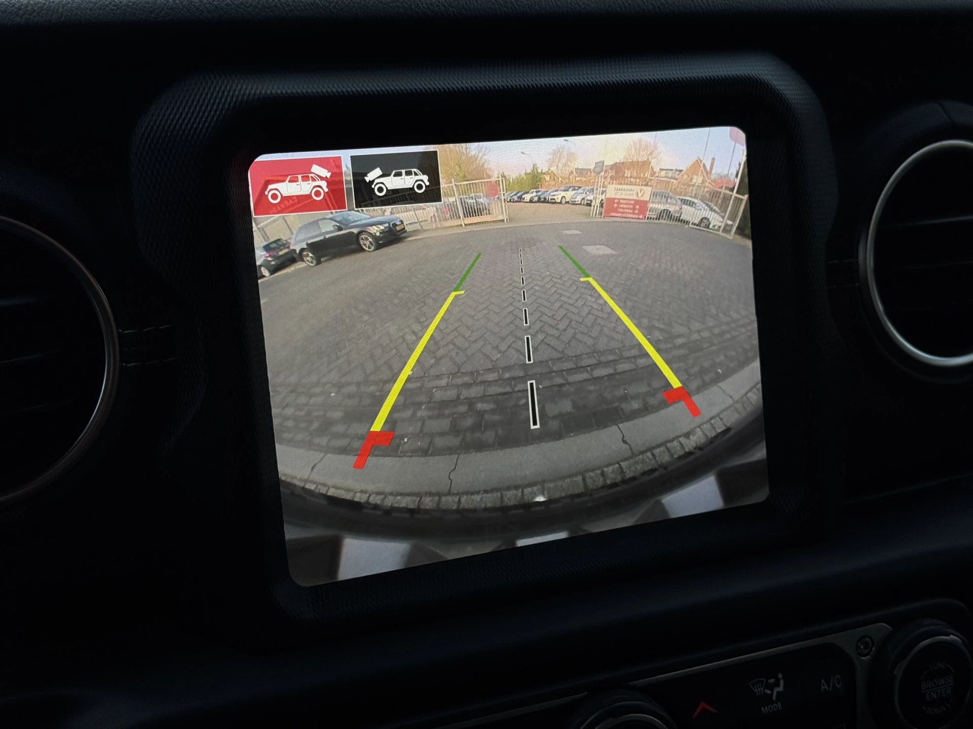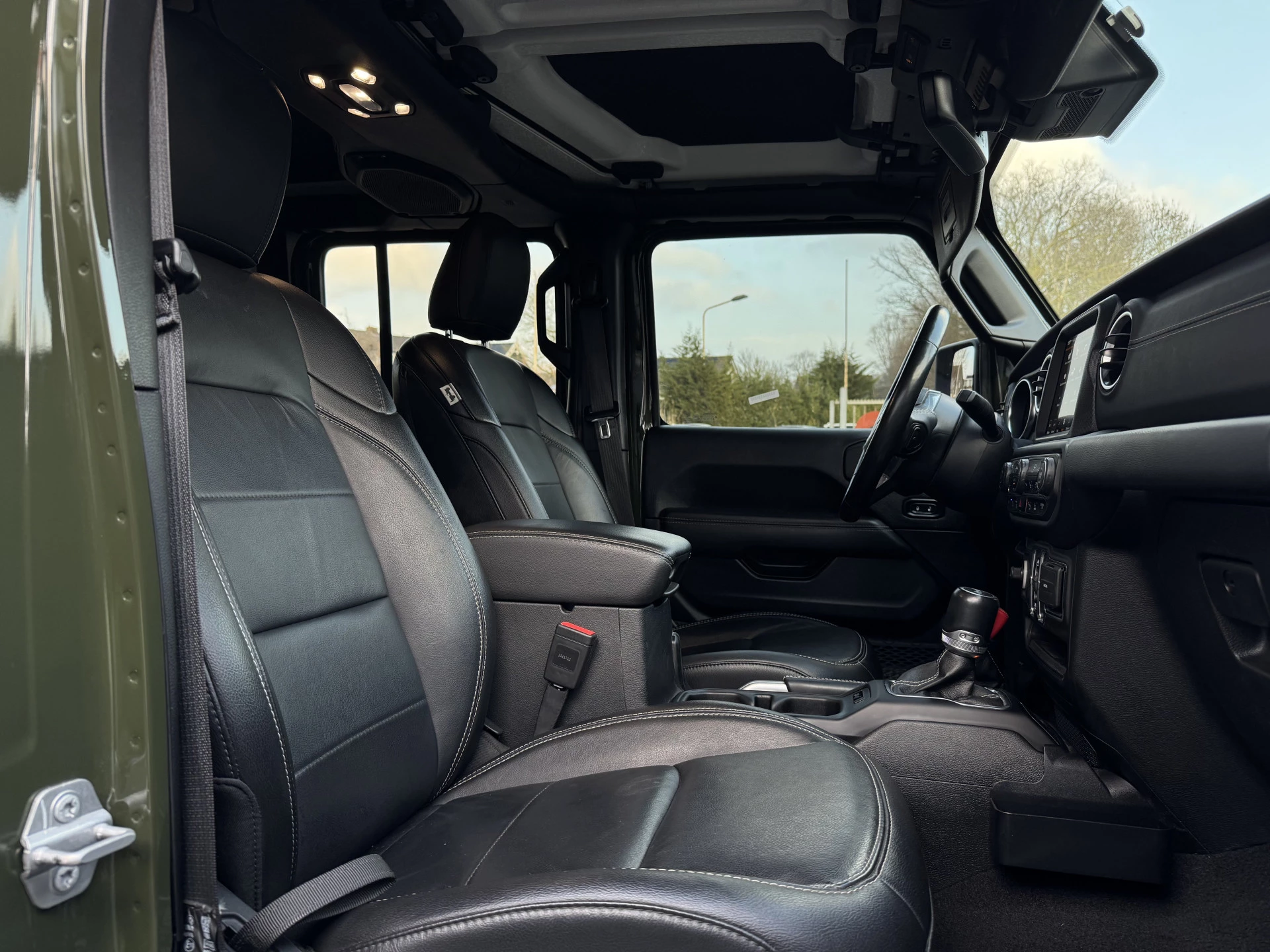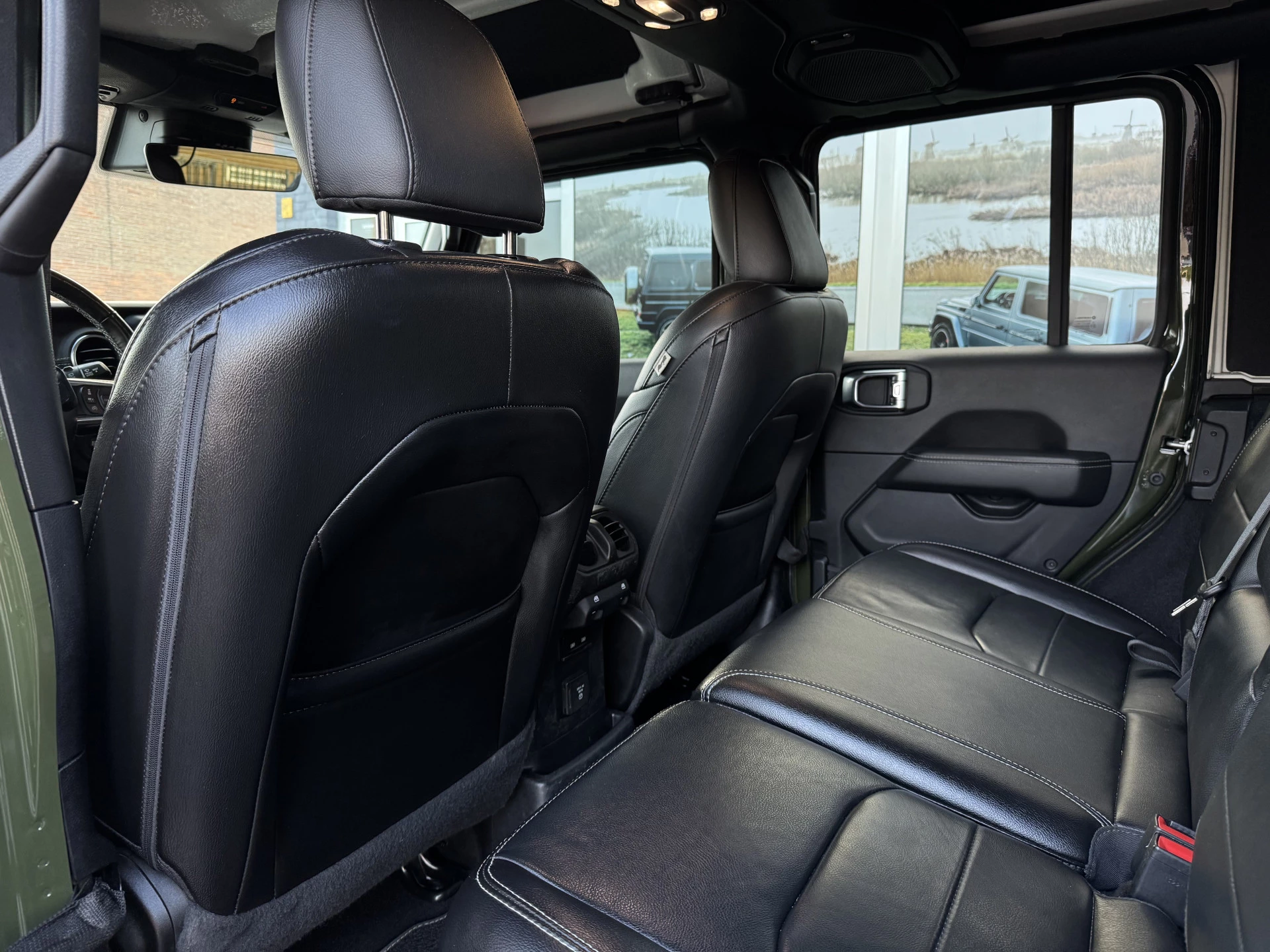 De auto is uitgerust met geavanceerde parkeersensoren en een achteruitrijcamera, wat zorgt voor extra gemak en veiligheid, zelfs in krappe parkeersituaties. De stuur- en stoelverwarming bieden comfort in alle weersomstandigheden, terwijl het Alpine audiosysteem zorgt voor een sublieme geluidservaring. De 4x4 aandrijving maakt de Wrangler ideaal voor zowel stadsritten als avontuurlijke offroad-tochten.