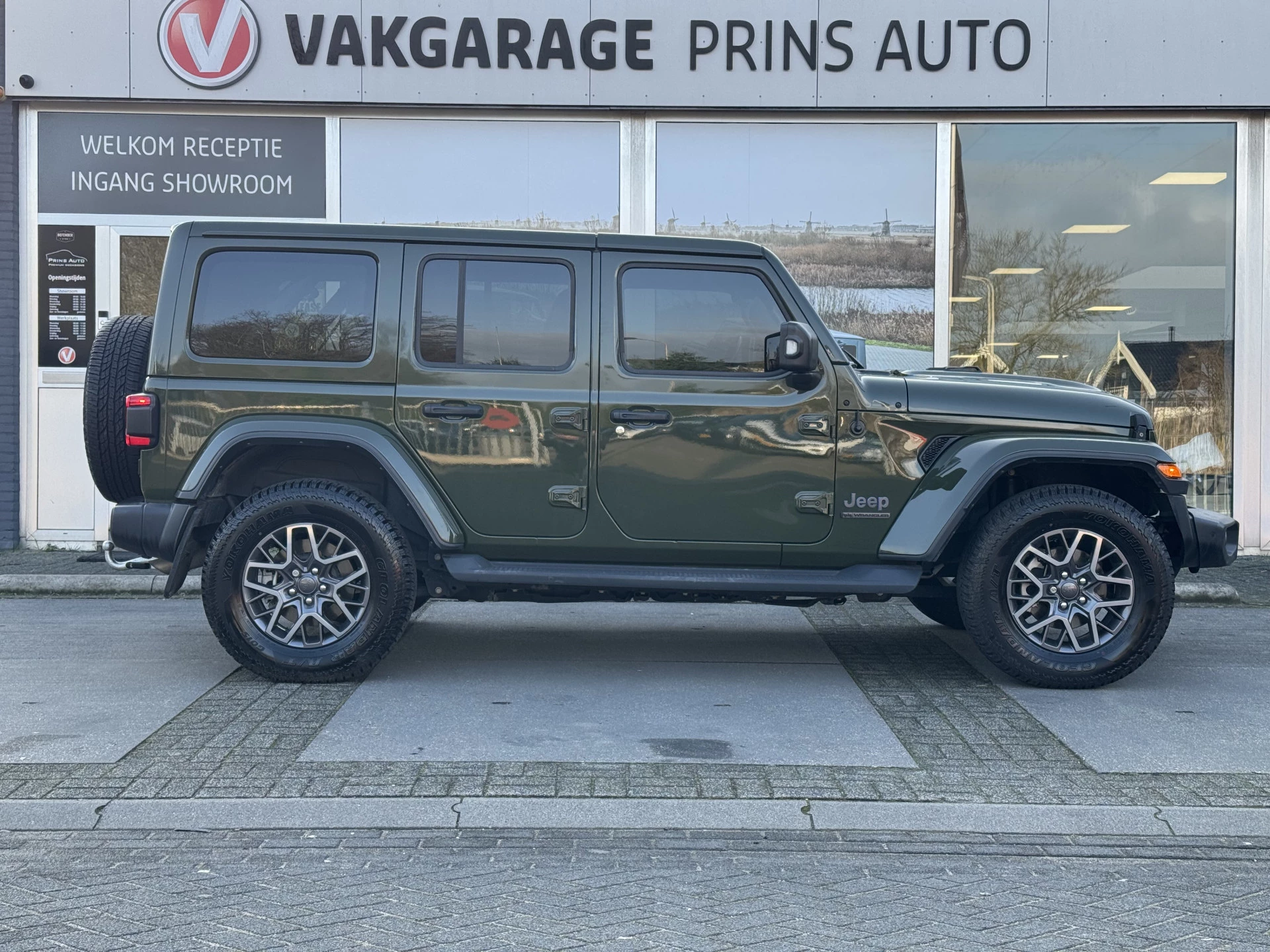 Deze Jeep Wrangler Unlimited 4xe 380 80th Anniversary uit 2021 is de perfecte combinatie van avontuur, luxe en kracht. De stoere Sarge Green kleur geeft de auto een unieke uitstraling, terwijl de 4xe hybride aandrijving zorgt voor een efficiënte rijervaring. Met slechts 61678 km op de teller is deze Jeep in uitstekende staat en biedt hij nog vele jaren rijplezier. Het model is een gelimiteerde uitvoering ter ere van het 80-jarig jubileum van Jeep, wat het tot een bijzonder collector’s item maakt.