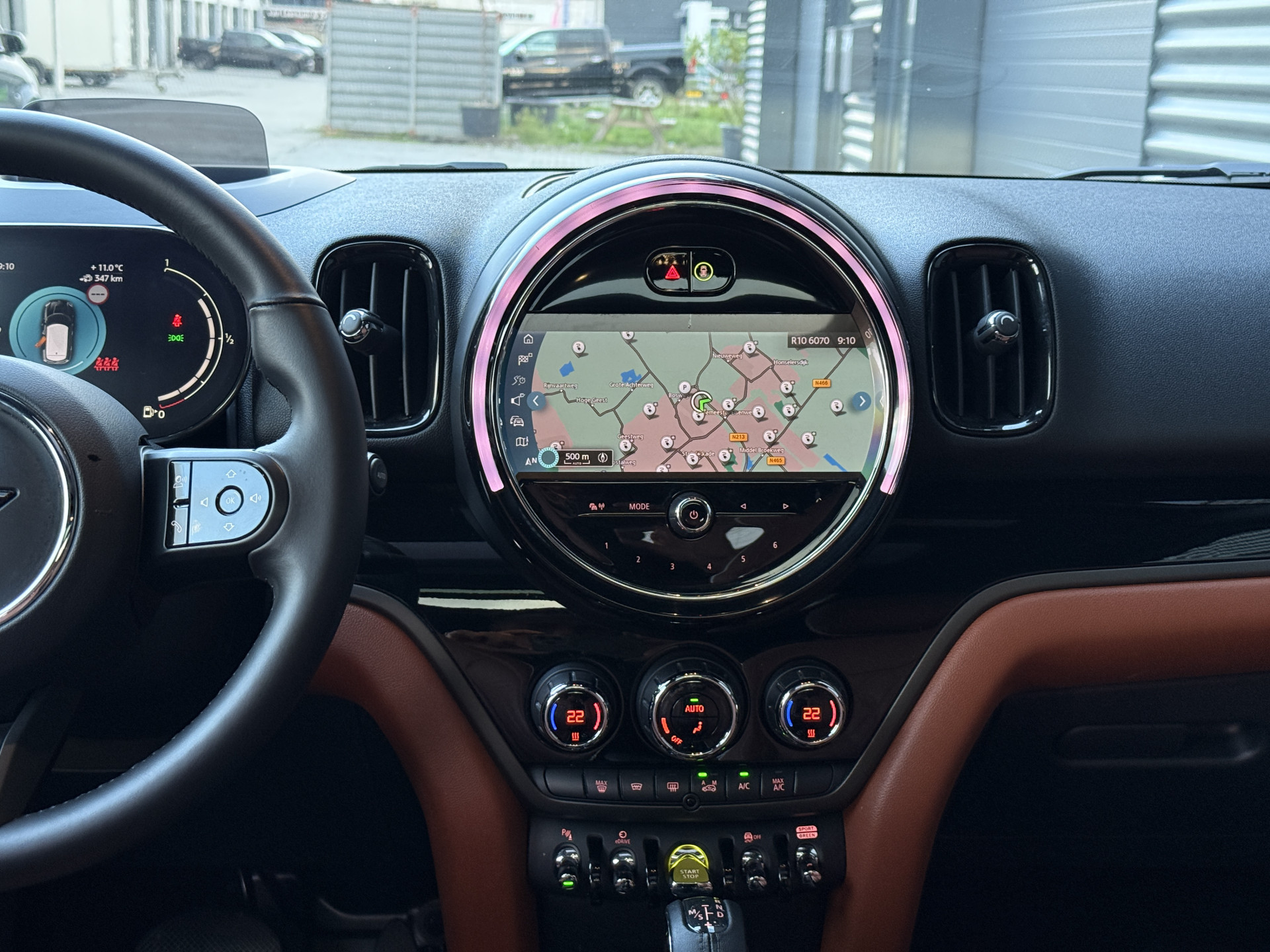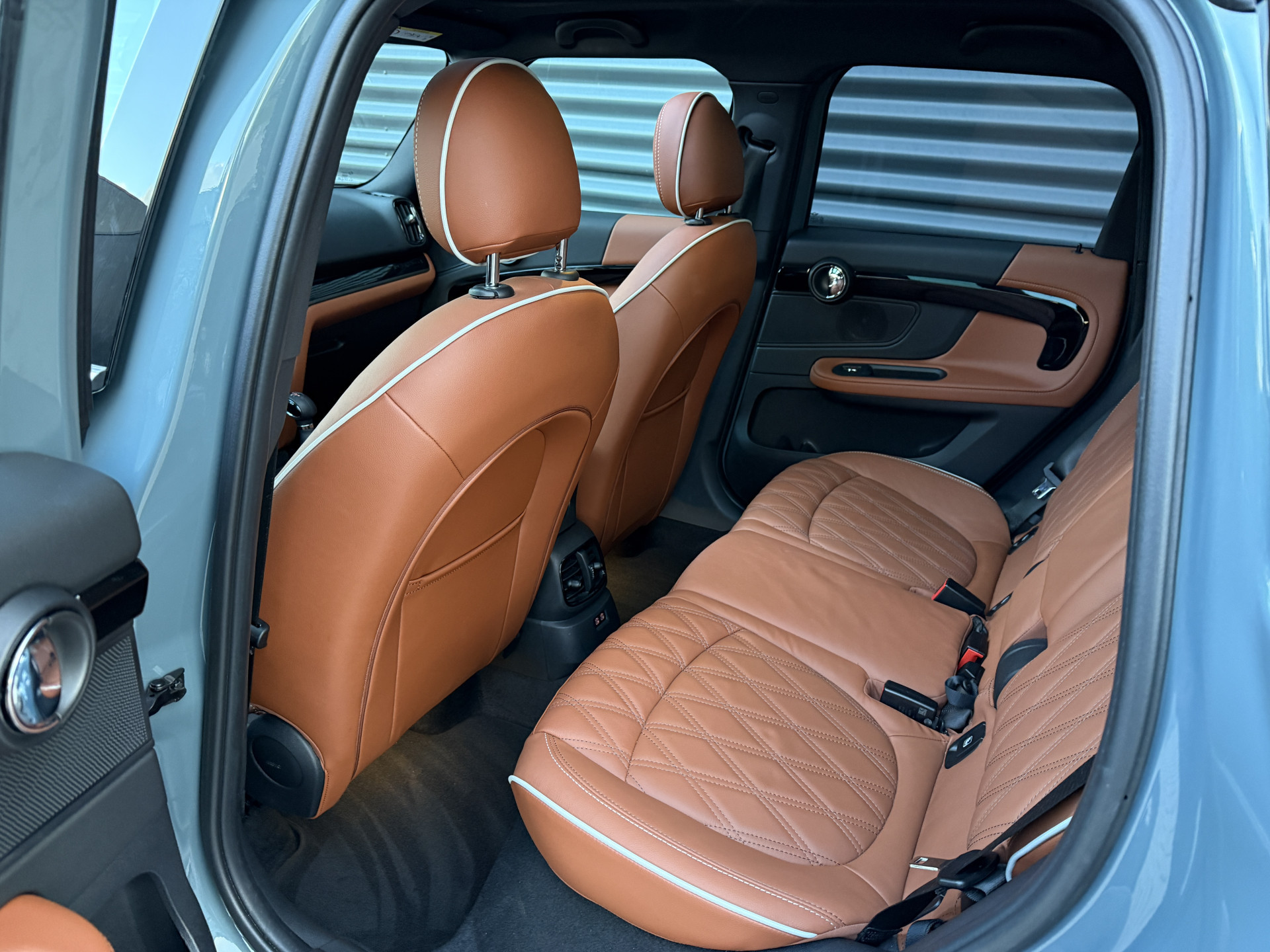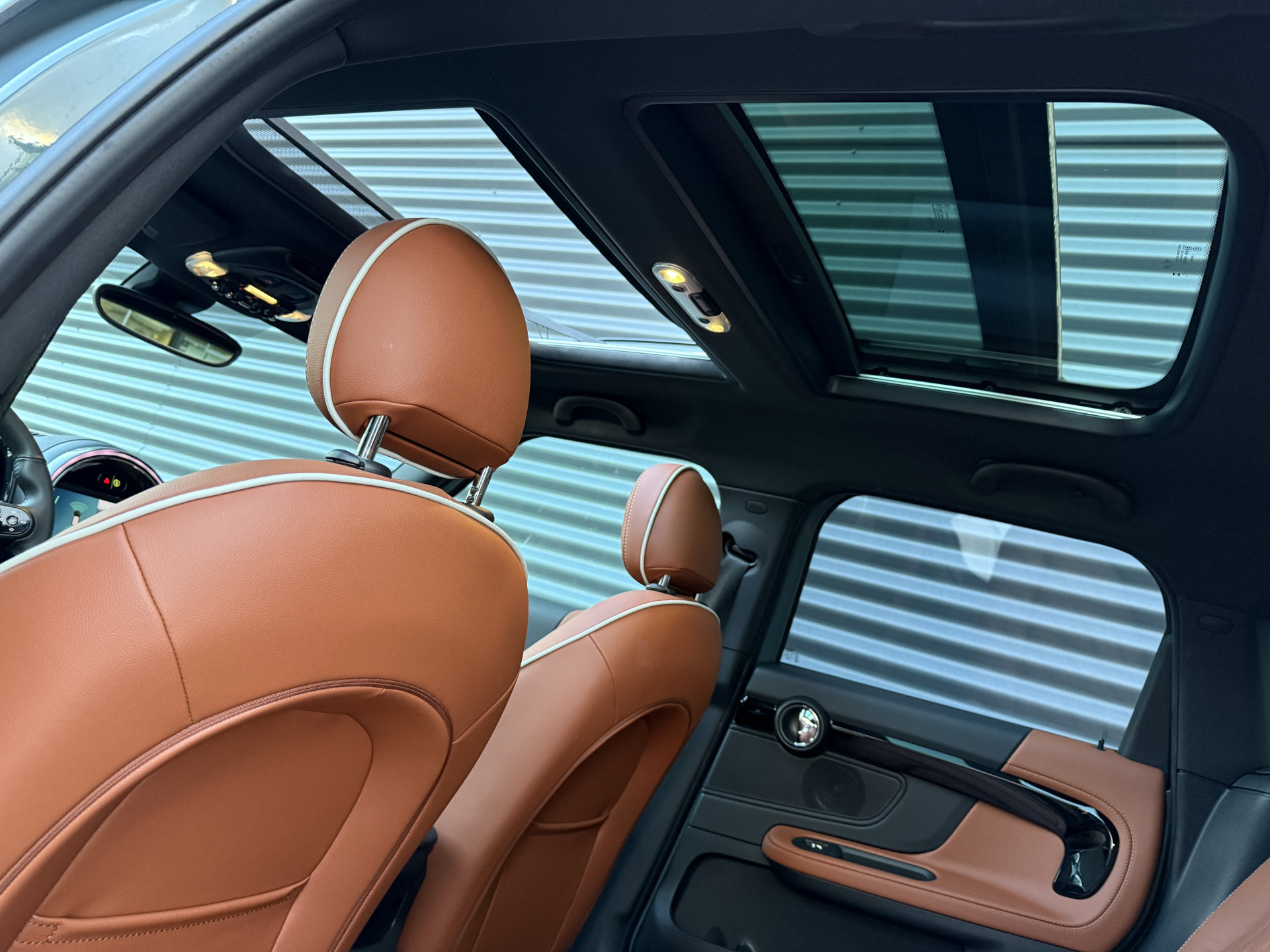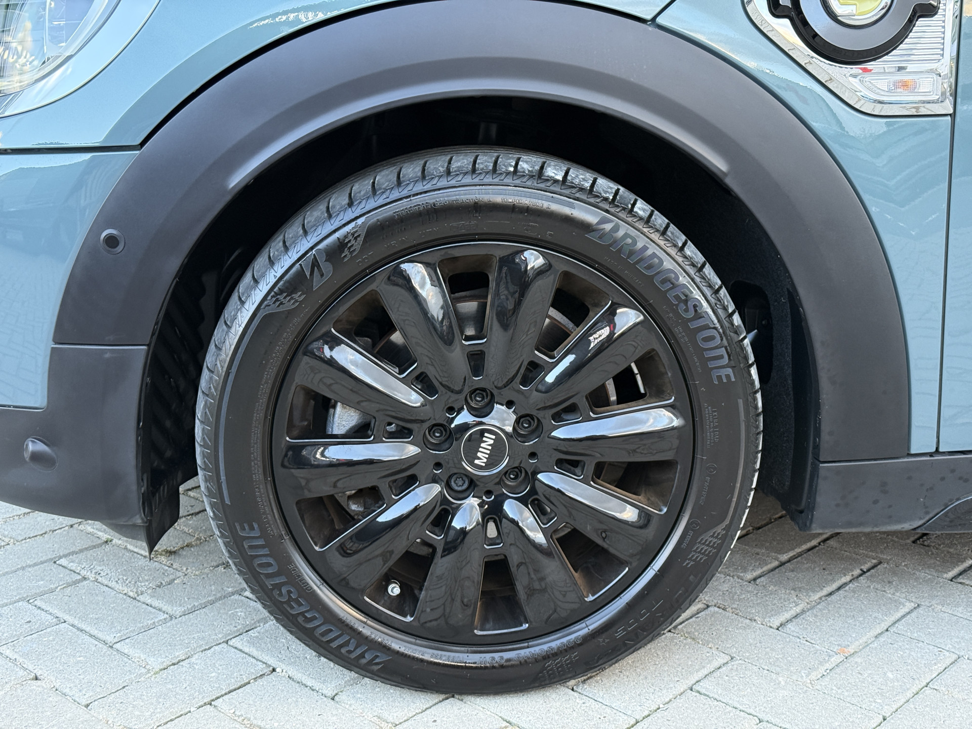 Schitterende Mini Countryman 2.0 Cooper SE ALL4 Plug in Hybrid in Sage Green metallic met 18 inch hoogglans zwarte licht metalen velgen. Deze Mini is bijzonder compleet uitgerust met onder andere de volgende opties: Panorama dak, elektrische bedienbare voorstoelen met memory, Chester Malt lederen bekleding, LED verlichtingspakket, Apple Carplay, achteruitrijcamera, navigatie, virtuele cockpit, Head Up display, cruise control, keyless entry, parkeersensoren voor + achter met parkeer assistent, etc..