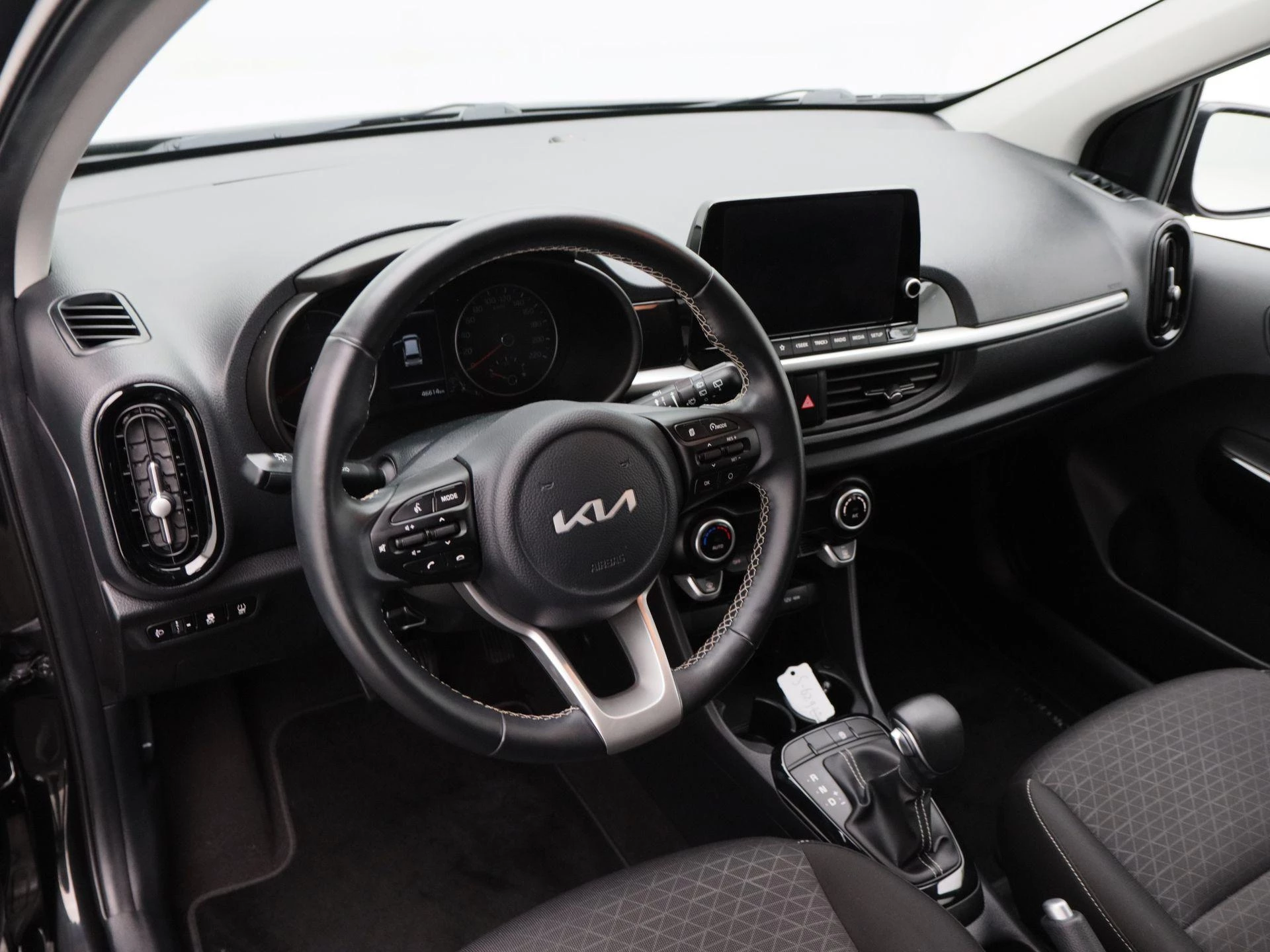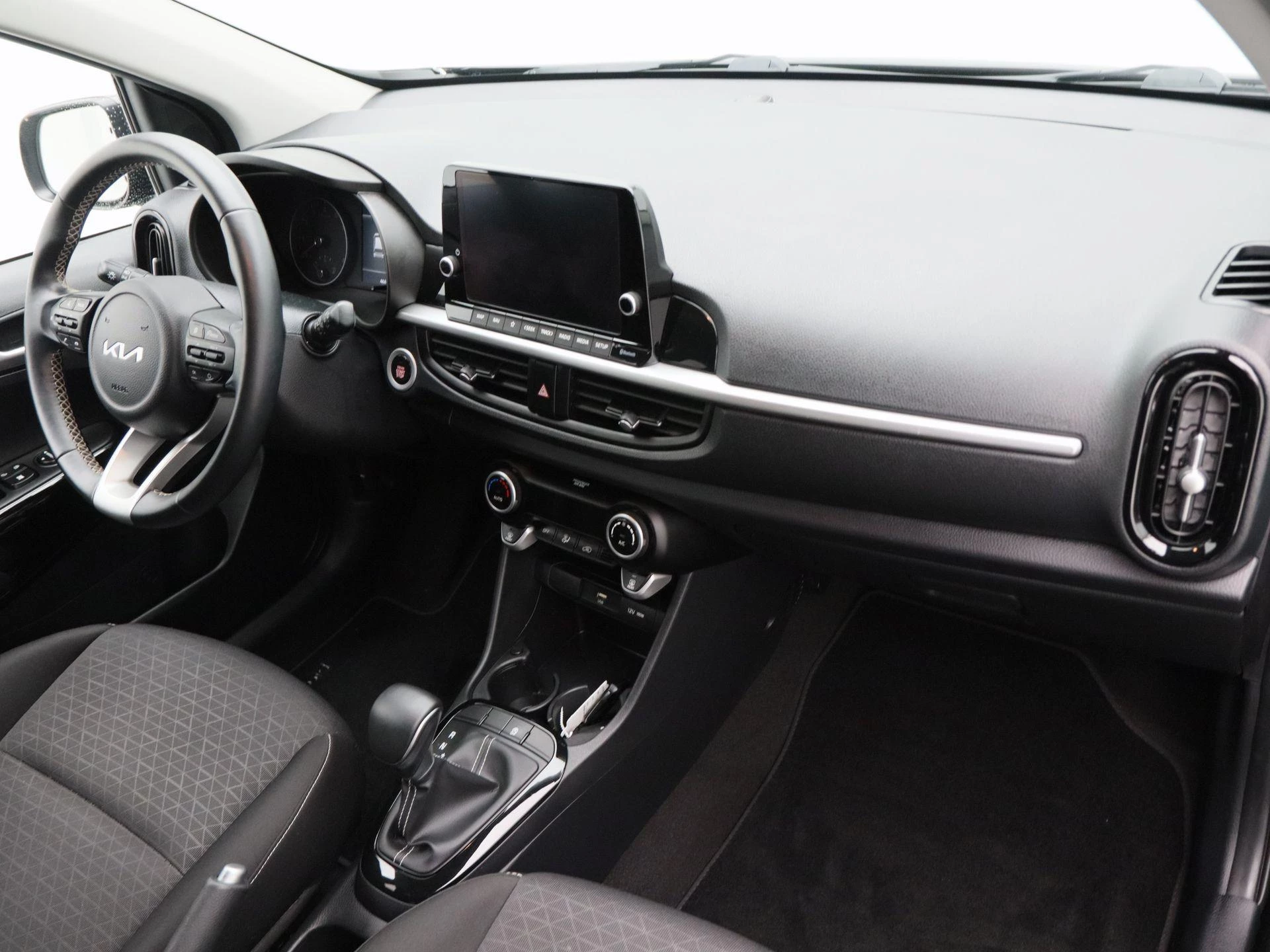 Binnenin biedt de Picanto een verrassend complete uitrusting met stoffen bekleding, een lederen stuurwiel en keyless entry & start. Elektronische climate control (ECC) zorgt voor een aangenaam klimaat, terwijl het infotainmentsysteem met navigatiesysteem en Apple CarPlay zorgt voor optimale connectiviteit onderweg.