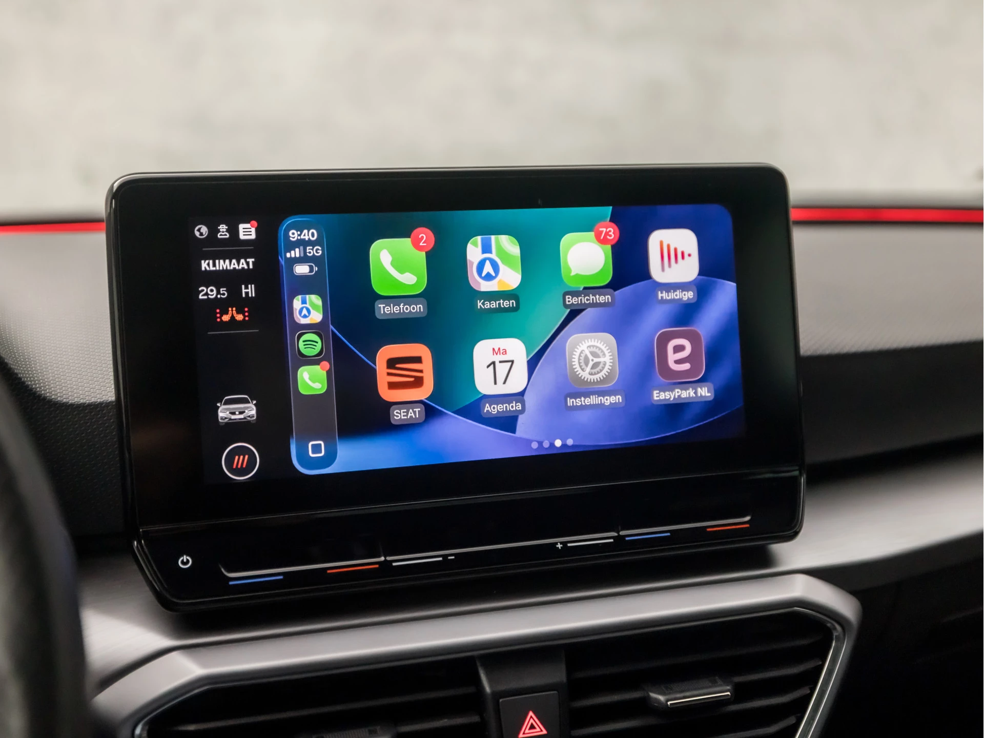 De nieuwste veiligheidssystemen komen in deze SEAT Leon samen. Verkeersbord-detectie herkent verkeersborden en toont deze op het instrumentarium van de auto. Het Lane-keeping systeem registreert permanent of u binnen de lijnen van de rijstrook blijft; dwaalt u onbedoeld af, dan waarschuwt het systeem en corrigeert de koers. Onbedoeld bumperkleven is er niet bij, dankzij de forward collision warning. Die waarschuwt direct als een botsrisico met uw voorligger dreigt. Ook helpen het dodehoekdetectie, hill hold functie, vermoeidheidsherkenning, autonoom remsysteem en bandenspanningcontrolesysteem, uw rit tot een veilige rit te maken.