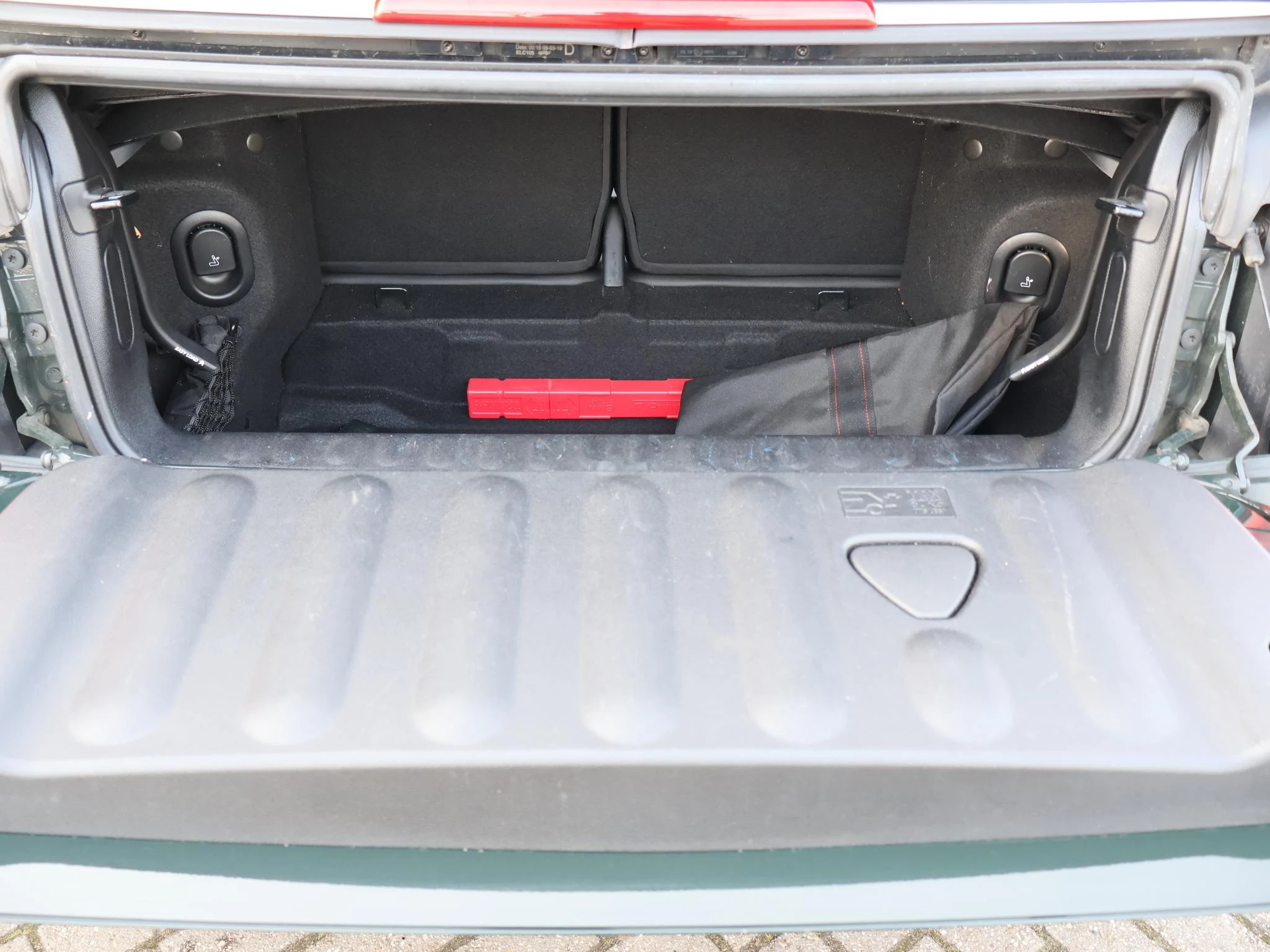 Origineel Nederlandse MINI Cabrio 2.0 John Cooper Works 231 PK automaat in het Rebel Green, RDW nieuwprijs 59.687 euro, Bijzonder compleet met JCW Sportstoelen, Adaptive cruise control, Harman/Kardon premium audio, Apple Carplay / Android Auto, Achteruitrijcamera, Keyless-entry en keyless-drive, Full LED koplampen en LED achterlichten, Zwarte striping met rode accenten, Stoelverwarming, Elektronische voorruitverwarming, DAB digitale radio, Bluetooth, Climate control, Sfeerverlichting interieur met verschillende kleuren, Rode grille en buitenspiegels, Union Jack achterlichten, Union Jack dashboard inleg.