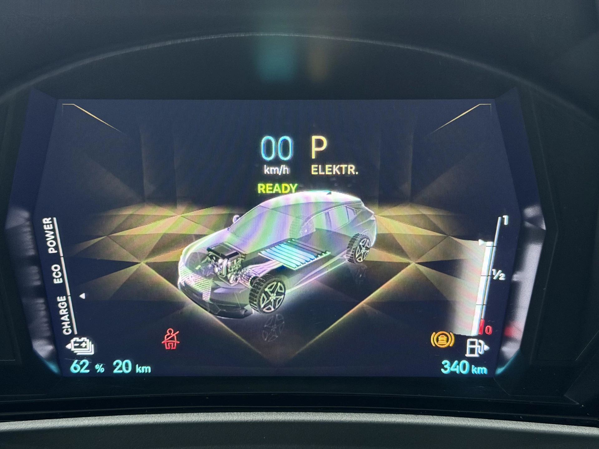 Dankzij het digitale dashboard leest u alle benodigde info gemakkelijk en overzichtelijk af. De vier camera's die samen de 360 graden camera vormen, bieden u de mogelijkheid om obstakels in elke richting te zien. Adaptive cruise control houdt de ingestelde snelheid vast en houdt automatisch afstand tot uw voorligger. De ingebouwde file assistent is een echte helper als het vaststaat onderweg. Het systeem meet ruimte tot de auto vóór u permanent en activeert zelfs de remmen als uw voorligger stopt. Deze auto gaat met u in gesprek. Hij vertelt u dankzij remote services alles over de status van diverse onderdelen en laat zich desgevraagd ook activeren. Gewoon via uw smartphone. De uitrusting van deze auto is met dashboard met spraakbediening, hifi high performance audiosysteem, full map navigatiesysteem, automatische airconditioning, draadloos opladen en DAB ontvangst behoorlijk compleet.