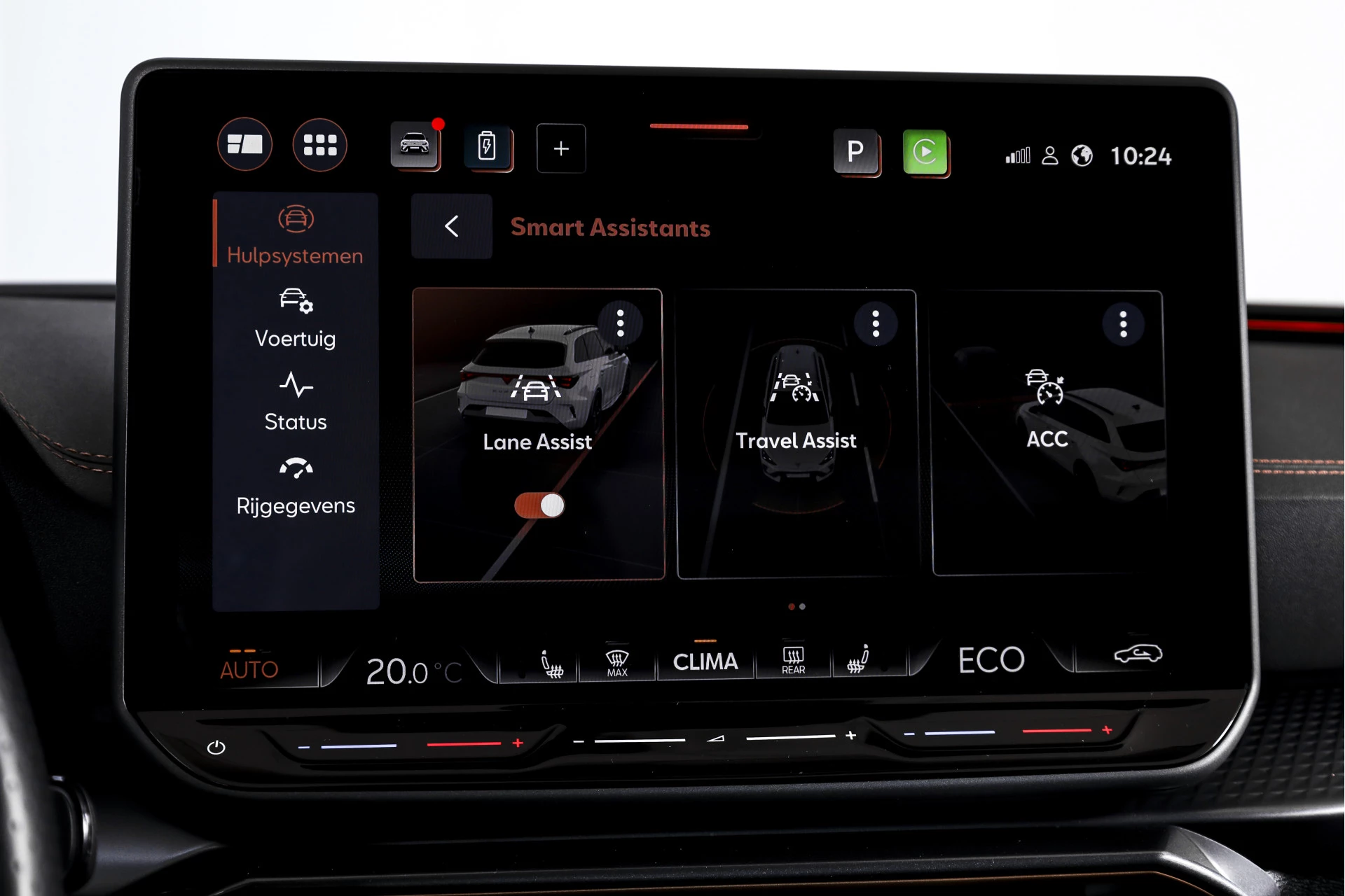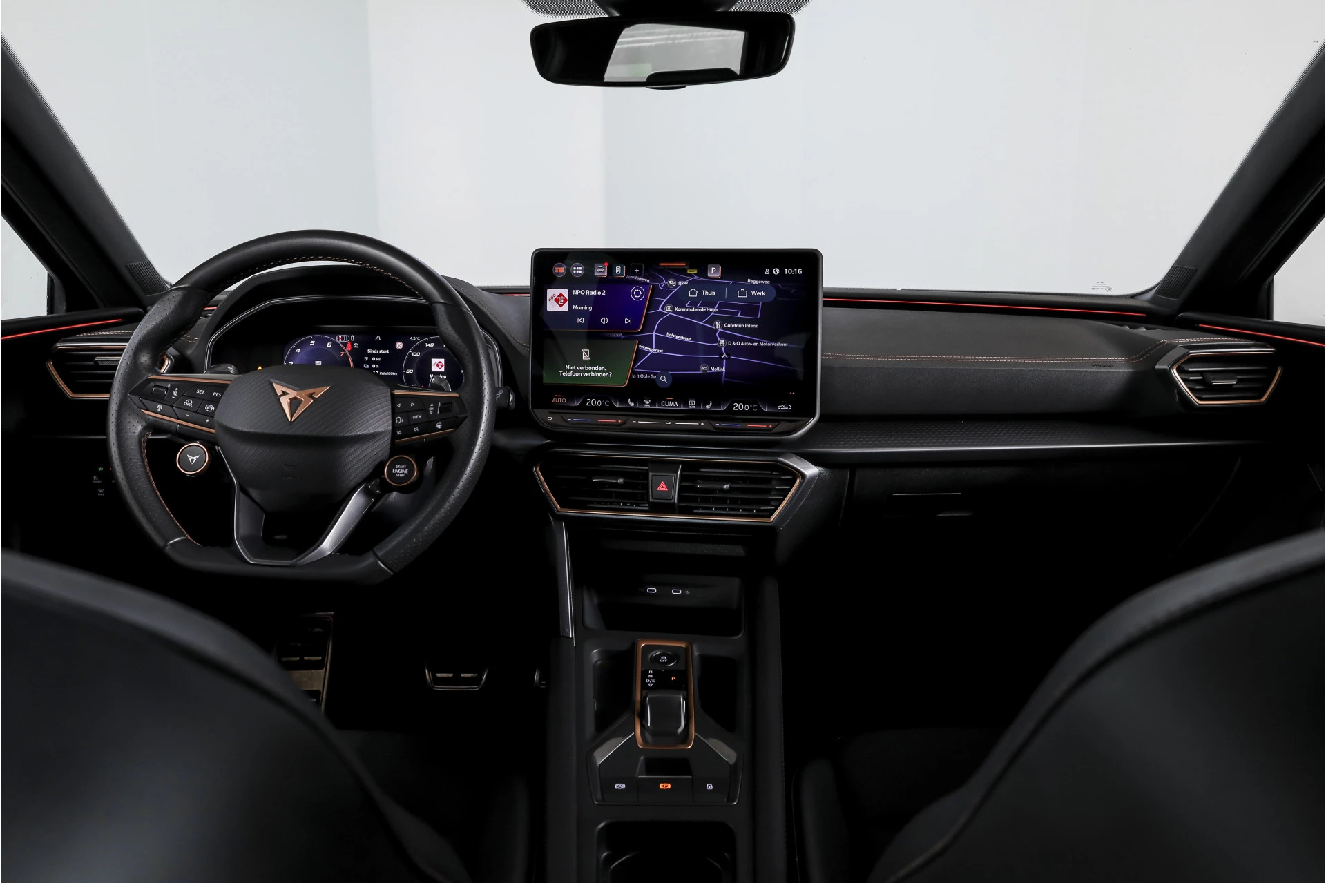 In het interieur vindt u een volledig digitaal instrumentenpaneel in combinatie met Apple CarPlay/Android Auto, waardoor navigatie en media altijd binnen handbereik zijn. De electronic climate control zorgt voor een prettig klimaat, terwijl de sportstoelen en het sportstuur bijdragen aan een betrokken rijgevoel. Extra comfort wordt geboden door de stuurverwarming en verwarmde voorstoelen, wat vooral op koudere dagen prettig is.