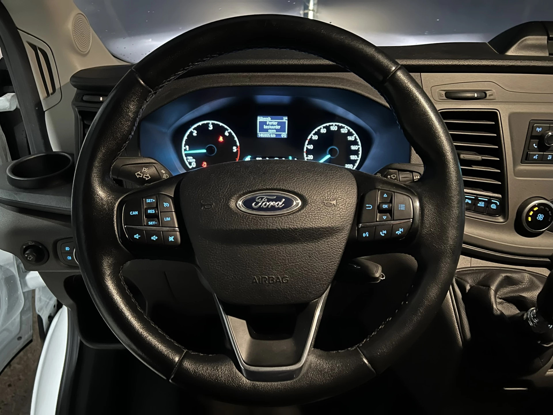 170pk sterke Ford Transit L4H3 Jumbo Euro6 met airconditioning en cruisecontrol. Deze nette Transit is dealer onderhouden en tevens LED, parkeersensoren, verwarmde vooruit, bijrijdersbank en bluetooth telefoonvoorbereiding.