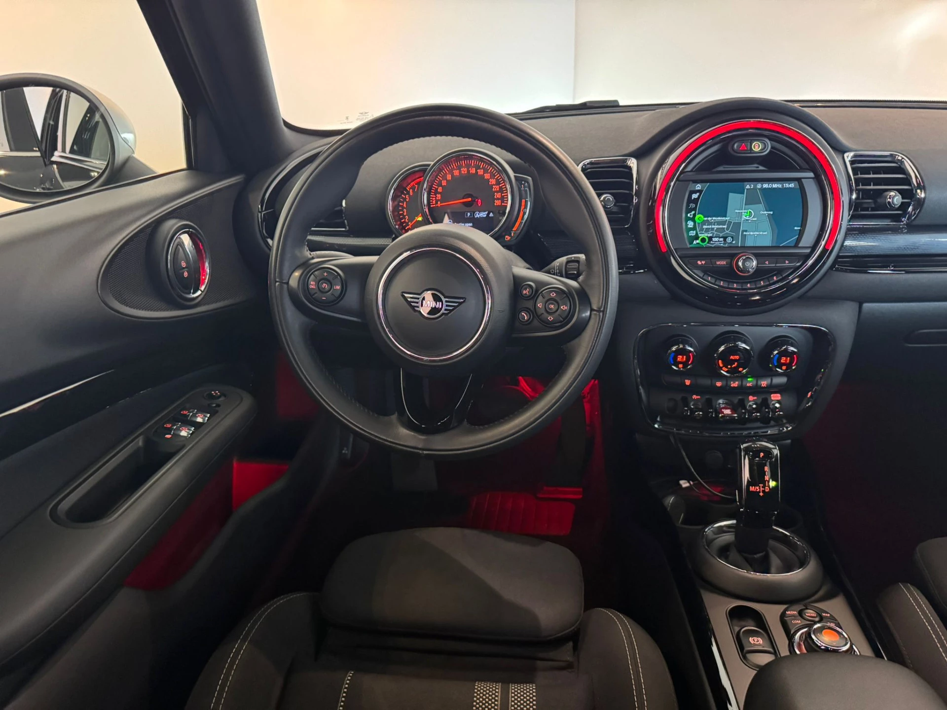 Altijd een deskundige gids aan boord, dankzij het navigatiesysteem. Aan boord van deze MINI Clubman is een achteropkomend verkeer waarschuwing voor extra veiligheid. In een auto als deze kunt u niet zonder automatische airconditioning, zodat de temperatuur altijd goed is. Een andere zender zoeken of het volume wijzigen? Het audiosysteem heeft bediening op het stuur. Parkeersensoren zijn een waardevolle toevoeging aan deze auto. De sensoren waarschuwen tijdens het parkeren en voorkomen schade aan de auto. Ook is de MINI uitgerust met: regensensor, cruise control, sportstuurwiel, centrale deurvergrendeling met afstandsbediening en boordcomputer.