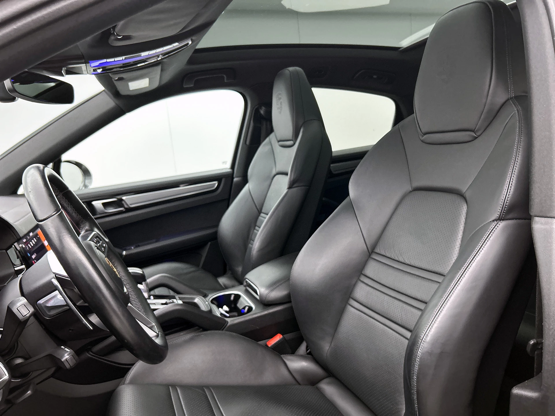 Combineer de functionaliteit van een gezinsauto met de prestaties van een sportwagen, en je krijgt deze sportieve Porsche Cayenne Coupé. De krachtige benzinemotor staat garant voor uitstekende prestaties. Een lederen interieur staat al decennia voor stijl en klasse. Ook bij deze Porsche Cayenne Coupé. Zijwaartse g-krachten worden solide opgevangen door de sportstoelen. Een handige voorziening op deze auto is de elektrische achterklep die u op afstand kunt openen. Een heerlijke hoeveelheid daglicht zorgt voor een riant en ruimtelijk effect door het glazen panoramadak. De koplampen met matrix LED-verlichting zijn het hoogst haalbare op het gebied van autoverlichting. Bij de uitrusting van deze Porsche horen onder meer 22 inch lichtmetalen velgen, adaptief dempingsysteem, warmtewerend glas, zwarte hemelbekleding, dakspoiler en in delen neerklapbare achterbank.