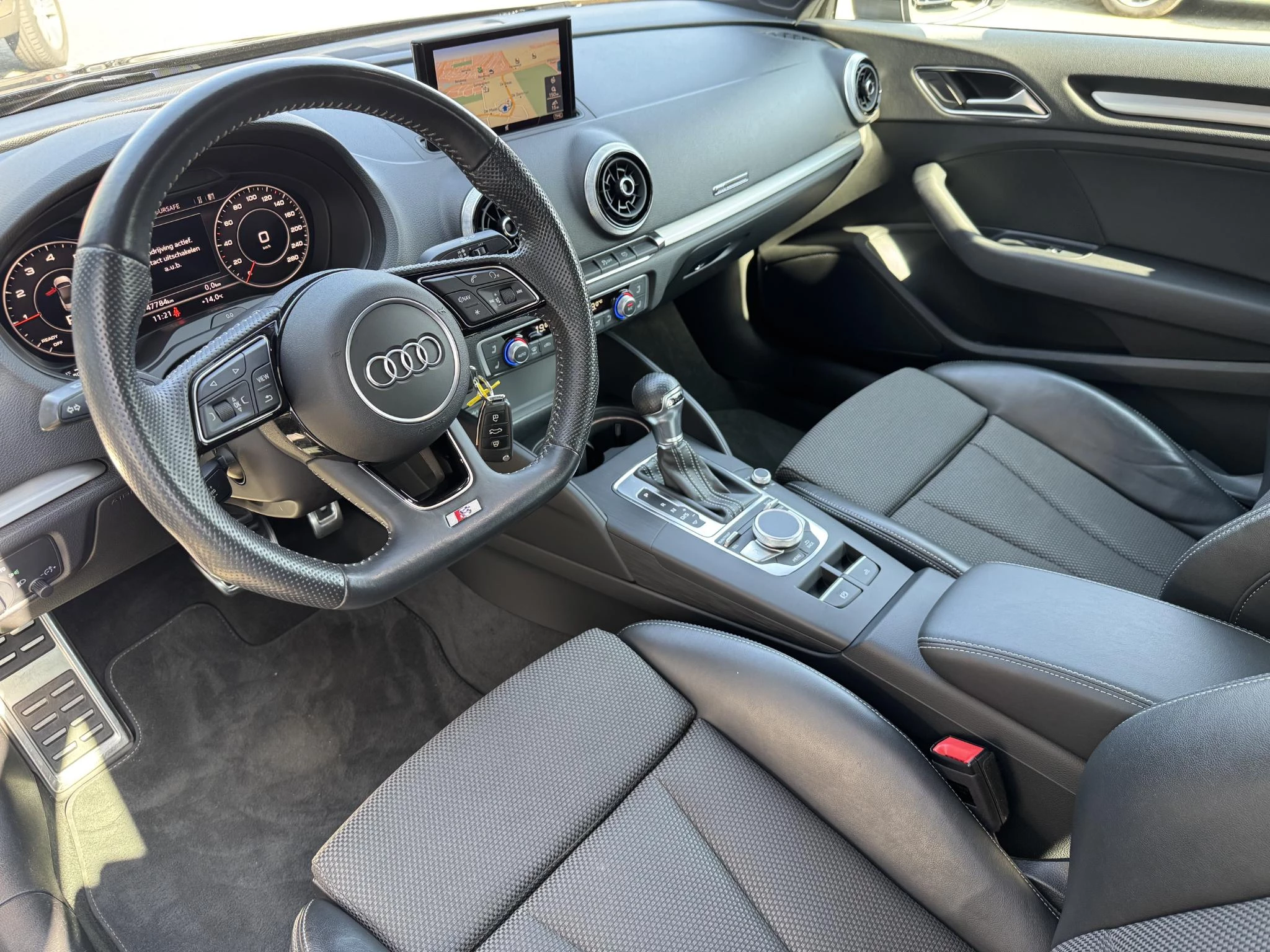 Pragmatisch en veilig als deze auto is, beschikt hij over diverse veiligheidssystemen. Onbedoeld buiten de rijstrook raken wordt voorkomen door het Lane-keeping systeem. In deze Audi vinden we verder een dodehoekdetectie en bandenspanningcontrolesysteem.