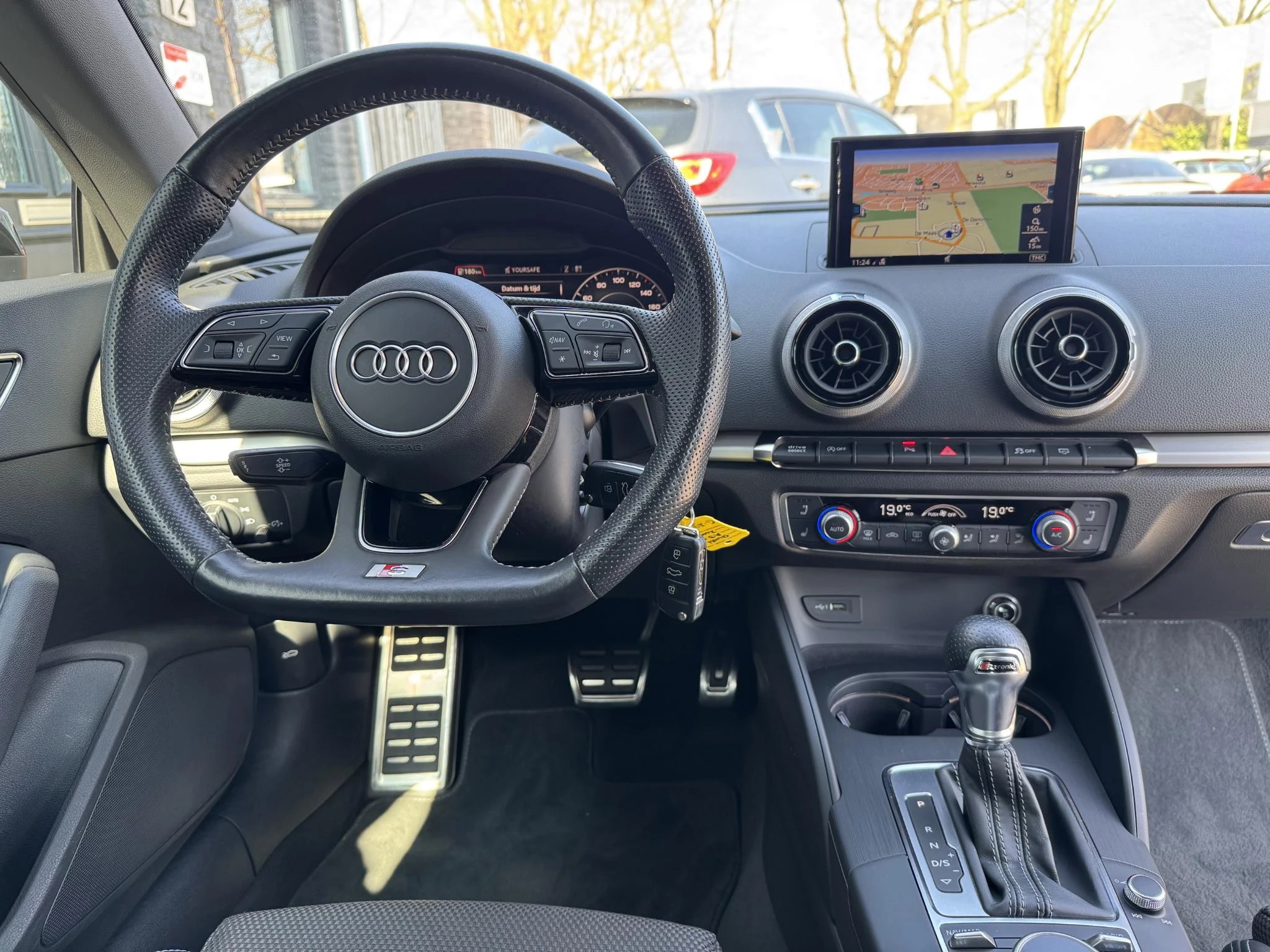 Het digitale dashboard in deze auto maakt personalisatie van jouw cockpitinterface mogelijk. Adaptive cruise control is veilig en comfortabel. De snelheidsregelaar houdt automatisch afstand tot het voertuig dat voor je rijdt. De ingebouwde file assistent is een echte helper als het vaststaat onderweg. Het systeem meet ruimte tot de auto vóór u permanent en activeert zelfs de remmen als je voorligger stopt. Onderweg kun jij veilig genieten van het audio-installatiesysteem met DAB-radio en het navigatiesysteem met harde schijf. Want in deze Audi bedien je ze vanaf het stuurwiel. De kans op een kop-staart botsing wordt sterk gereduceerd door het systeem van achteropkomend verkeer waarschuwing. Met automatische airconditioning, parkeersensoren achter, regensensor, sportstuurwiel, automatisch dimmende binnenspiegel en centrale deurvergrendeling met afstandsbediening is deze Audi helemaal compleet.