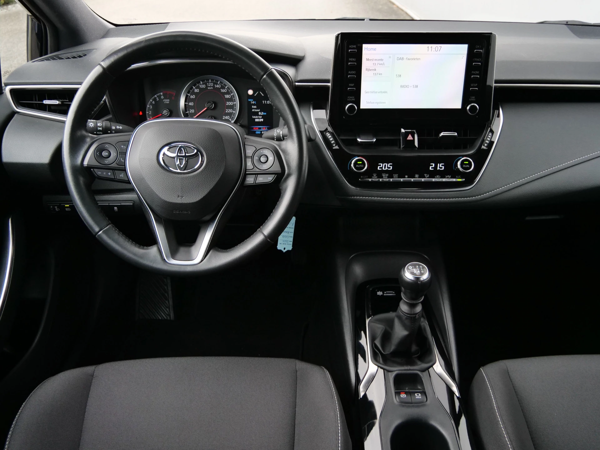 Afstand schatten bij het achteruitrijden? Niet nodig. U weet het precies, dankzij de achteruitrijcamera. Adaptive cruise control houdt de ingestelde snelheid vast en houdt afstand tot het voertuig voor u. Spraaksturing luistert naar uw stem en bedient de belangrijkste voertuigfuncties. Deze Toyota Corolla Touring Sports is voorzien van remote services. Via uw smartphone bedient u diverse functies ook op afstand en krijgt u informatie over de status van uw auto. Of het buiten nu warm is of koud, dankzij automatische airconditioning is het binnen altijd behaaglijk. De uitrusting van deze auto is met DAB ontvangst, buitentemperatuurmeter, centrale deurvergrendeling met afstandsbediening en verstelbaar stuur behoorlijk compleet.