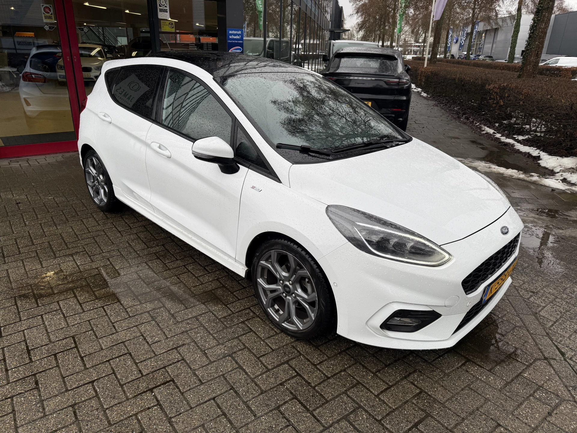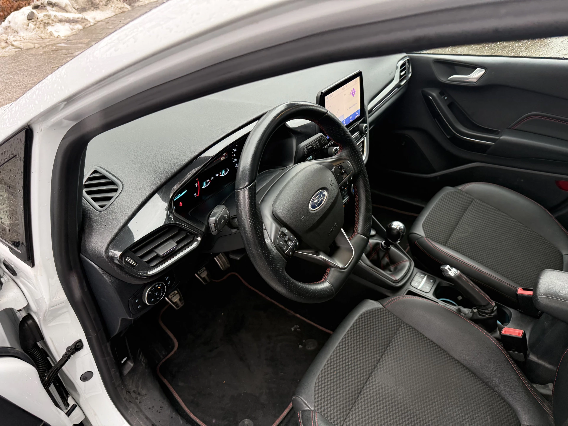 Zoals u mag verwachten van deze Ford Fiesta is hij uitgerust met een reeks aan actieve veiligheidssystemen. Onderweg zorgt verkeersborddetectie ervoor dat u geen waarschuwingsbord mist. Een camera houdt de juiste koers binnen de rijstrook in de gaten en het Lane-keeping systeem corrigeert bij afwijkingen. Een belangrijk veiligheidssysteem in deze auto is de vermoeidheidsherkenning, die u een duidelijk signaal geeft wanneer u achter het stuur in slaap dreigt te vallen. Ook helpen het hill hold functie, brake assist en bandenspanningcontrolesysteem, uw rit tot een veilige rit te maken.