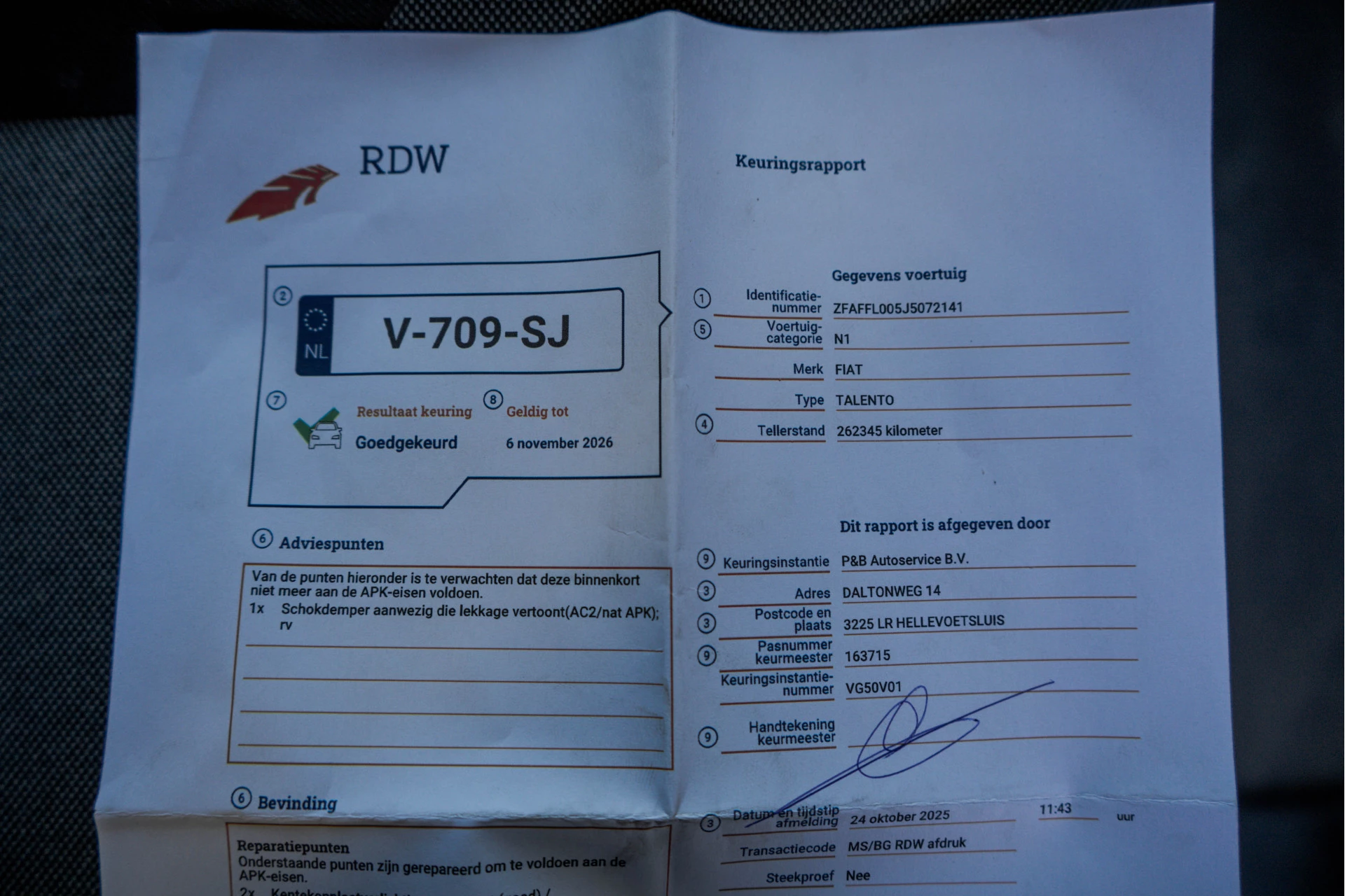 NAP: Logisch. Bandenprofiel: Voor 5.3 mm en Achter 8.3 mm. Aantal eigenaren privé / zakelijk 0 / 1. Aantal sleutels: 2.