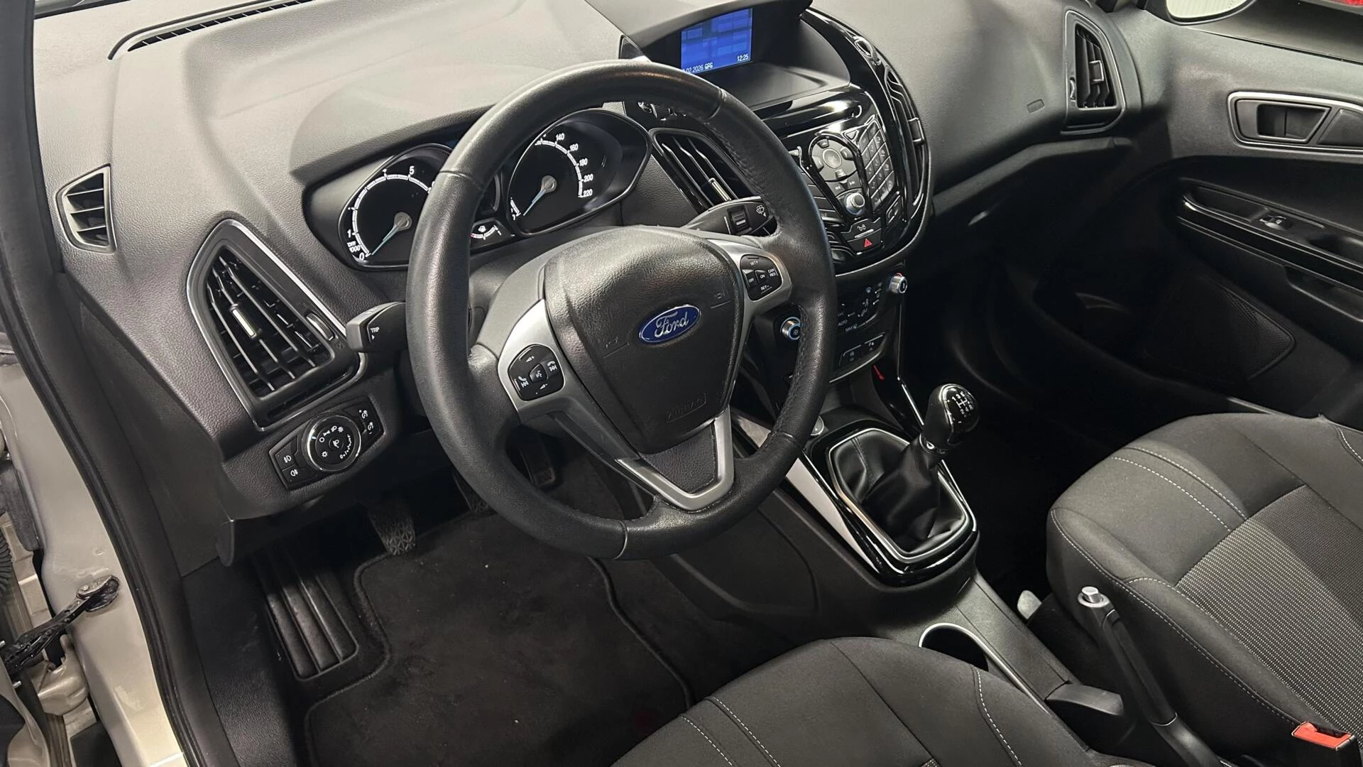 Spraaksturing luistert naar uw stem en bedient de belangrijkste voertuigfuncties. Met Connected Services wordt iedere rit nóg veiliger. U weet altijd waar u moet zijn, dankzij het full map navigatiesysteem. Met automatische airconditioning hoeft u alleen de gewenste temperatuur in te stellen. Het systeem doet de rest. Een plekje vinden in de binnenstad is één, inparkeren is twee. Voor dat laatste heeft deze Ford B-Max prima parkeersensoren die u een handje helpen. Wat u ook in deze auto kunt vinden zijn regensensor, cruise control, automatisch dimmende binnenspiegel, lederen stuur, isofix-aansluiting en centrale deurvergrendeling met afstandsbediening.