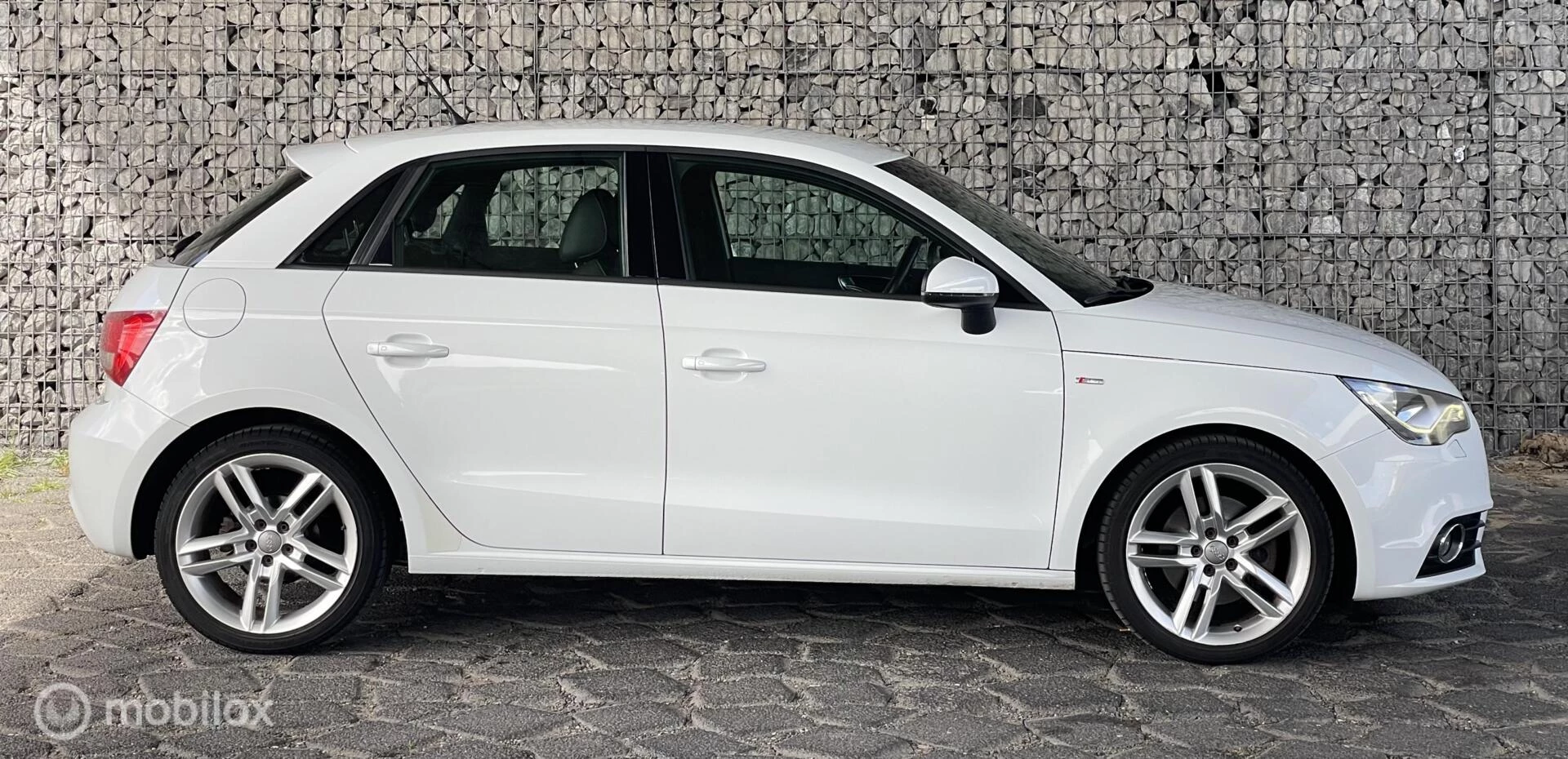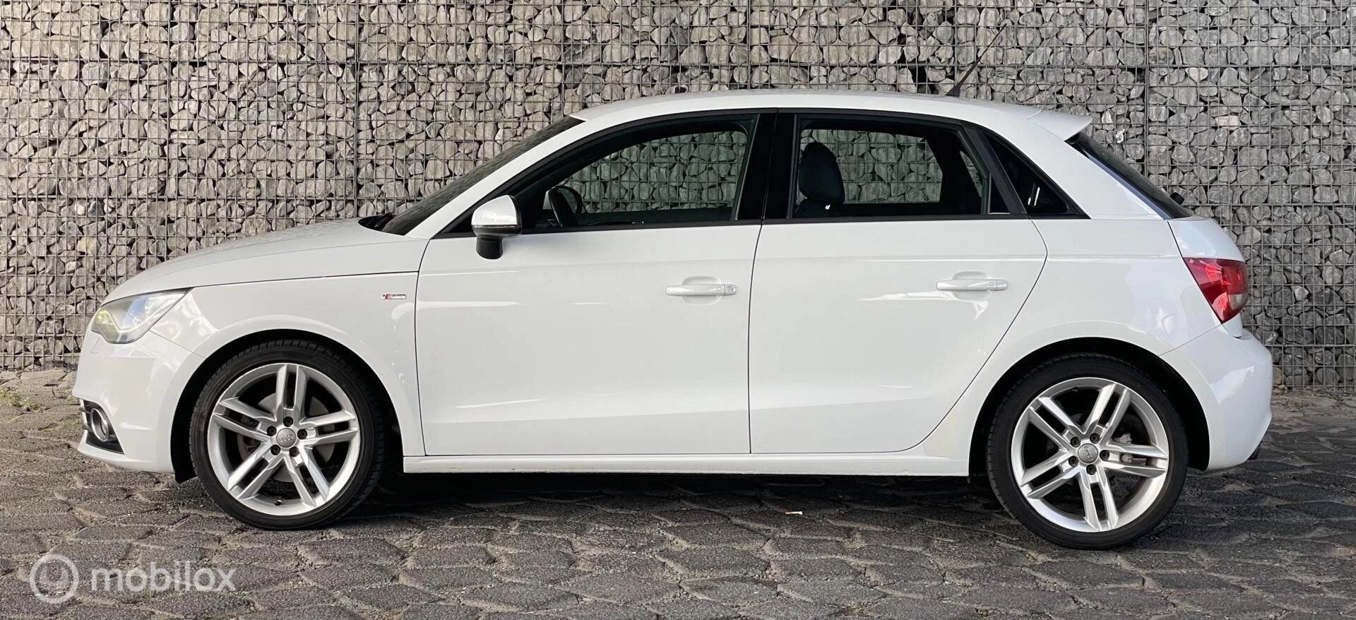 Audi A1 1.4 TFSI automaat in witte kleur, uitgevoerd met lichtmetalen velgen. De auto is voorzien van keyless entry, navigatiesysteem, Bluetooth, LED-verlichting en S line stoelen met stoelverwarming. Daarnaast beschikt de auto over een premium Bose geluidssysteem.