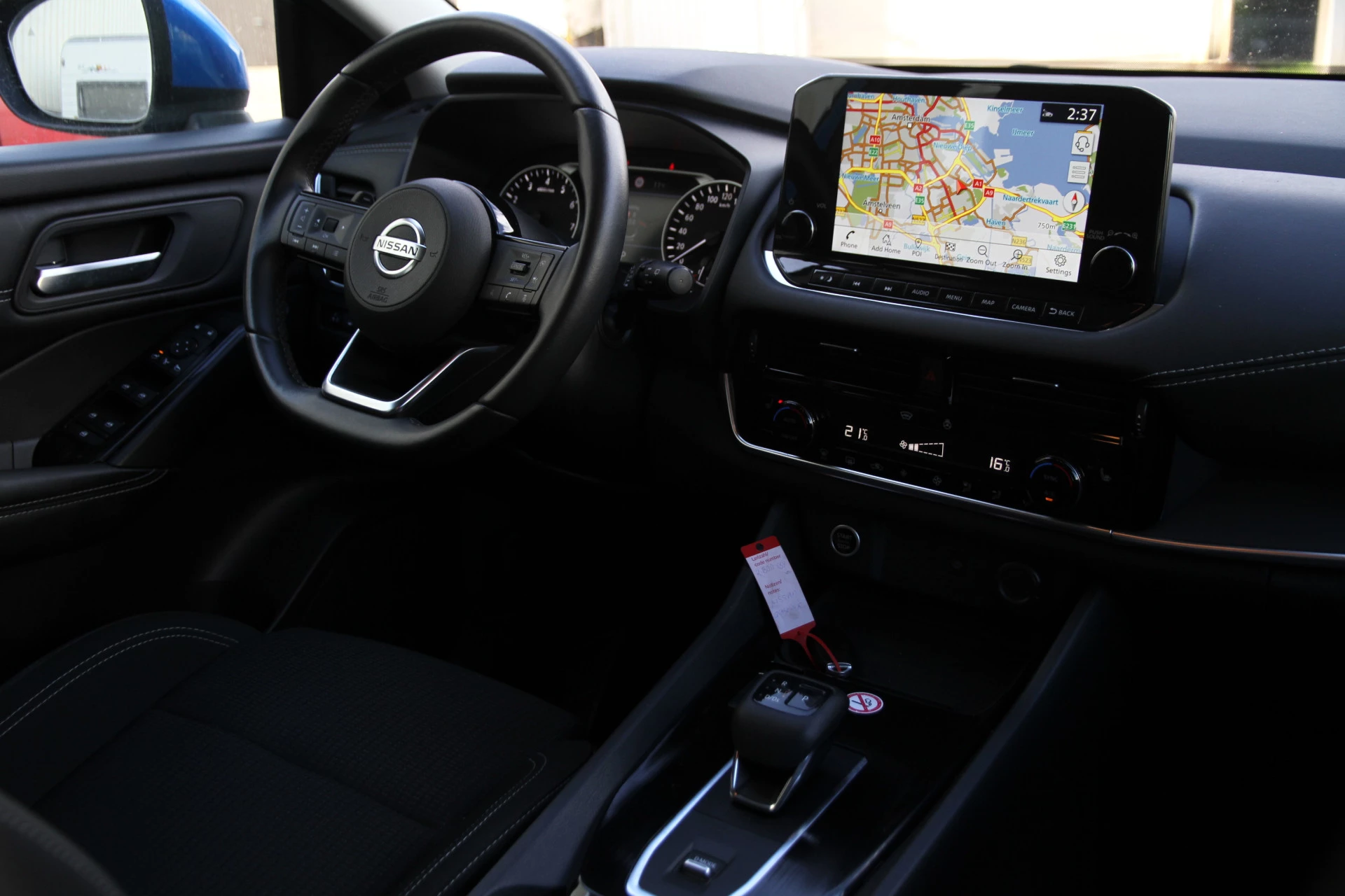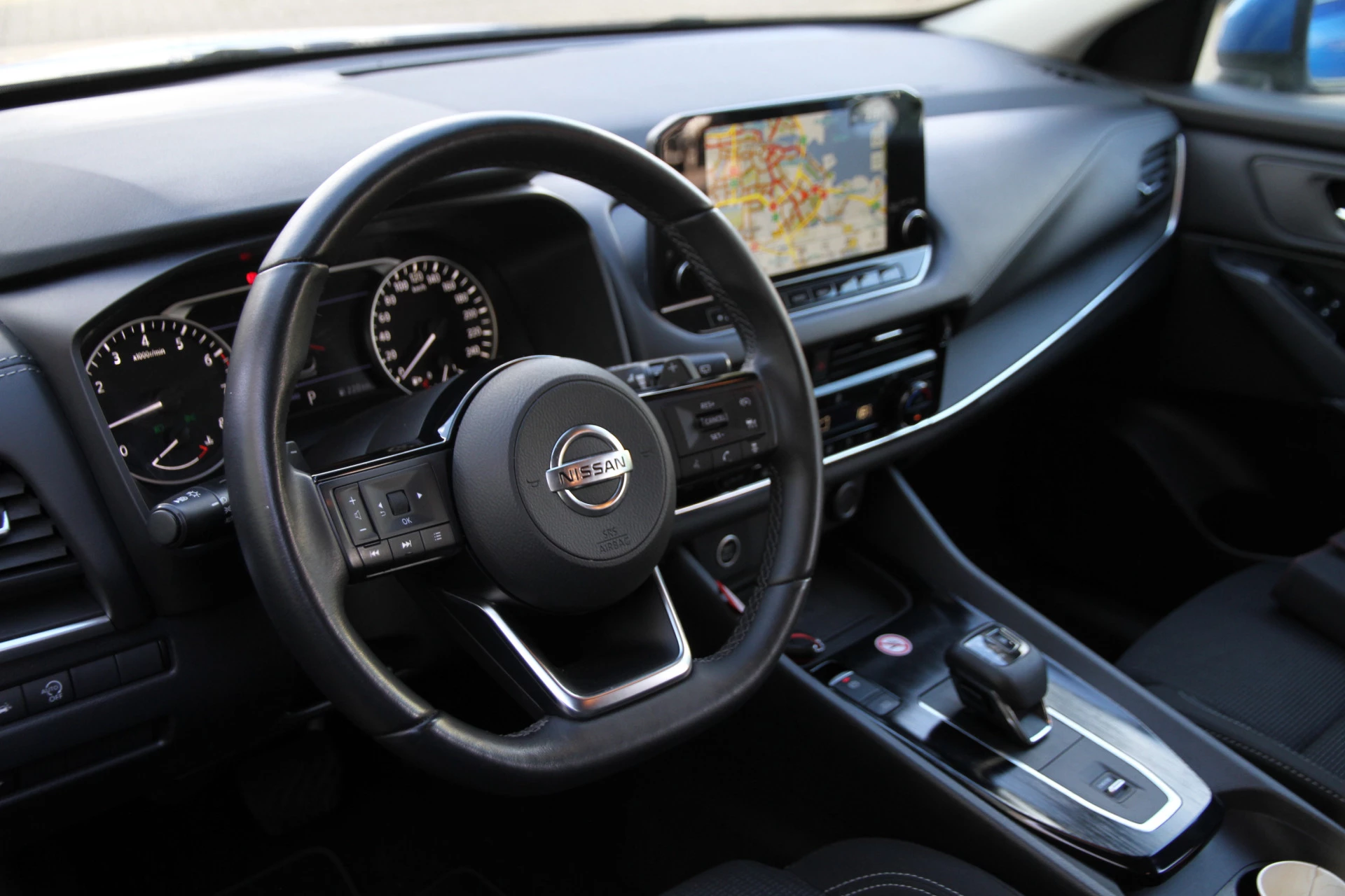 Zelfs een kleine aanrijding kan flinke kosten veroorzaken. Gelukkig laat de achteruitrijcamera precies zien wat er zich achter de auto bevindt en geeft een waarschuwingssignaal. Adaptive cruise control houdt de ingestelde snelheid vast en houdt automatisch afstand tot uw voorligger. Ook over uw schouder ziet u onderweg niet alles wat er aan de achterzijde gebeurt. Daarom heeft deze Nissan Qashqai een achteropkomend verkeer waarschuwing. Als bijzondere veiligheidsoptie heeft deze Nissan Qashqai kruisend verkeer detectie, die waarschuwt als een botsing dreigt met tegemoetkomend verkeer. Automatische airconditioning regelt volautomatisch de temperatuur. U kiest de gewenste temperatuur en het systeem doet de rest. Ook schakelpaddles aan het stuur, draadloos opladen, DAB ontvangst, regensensor, keyless entry en centrale deurvergrendeling met afstandsbediening horen tot de voorzieningen op deze auto.