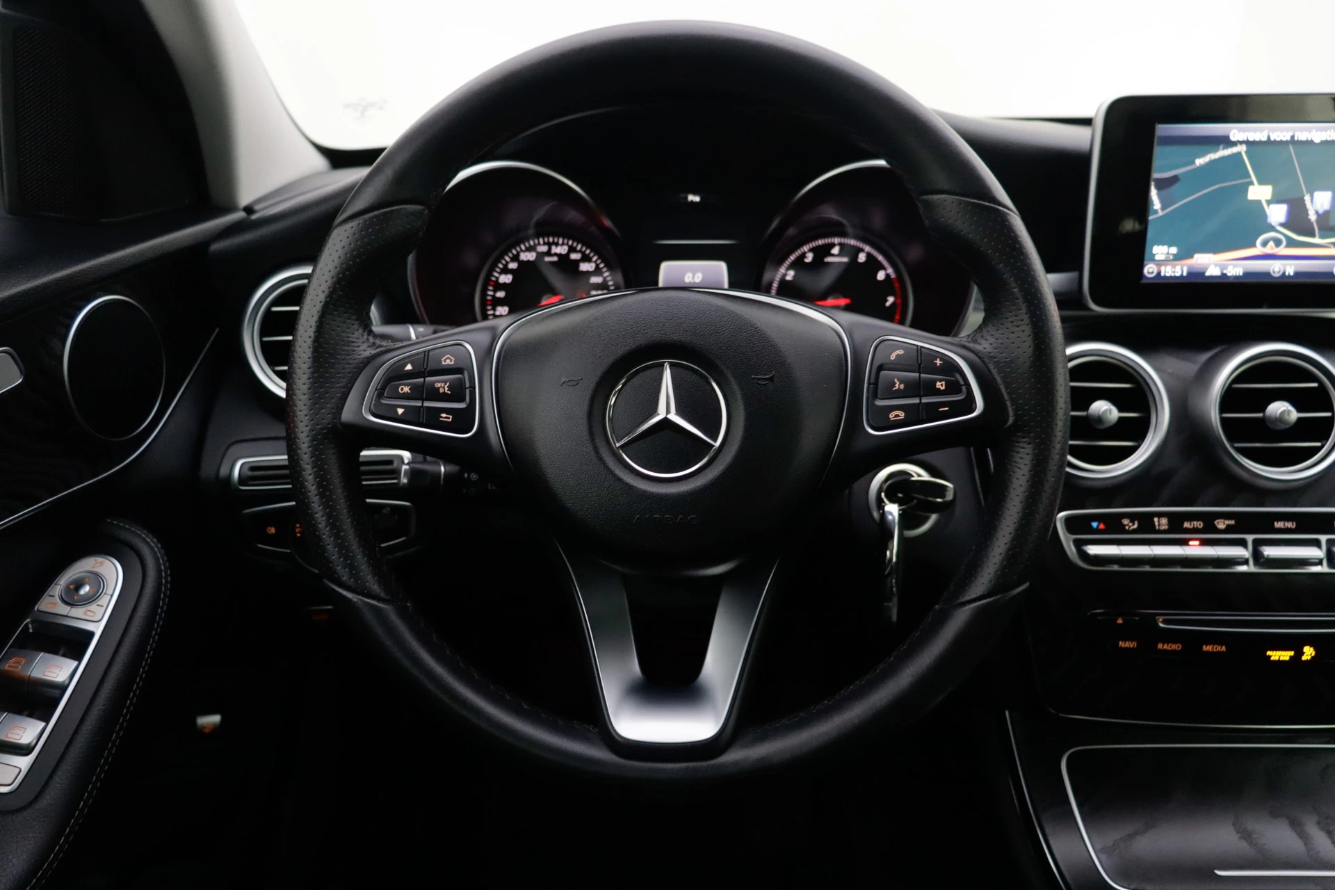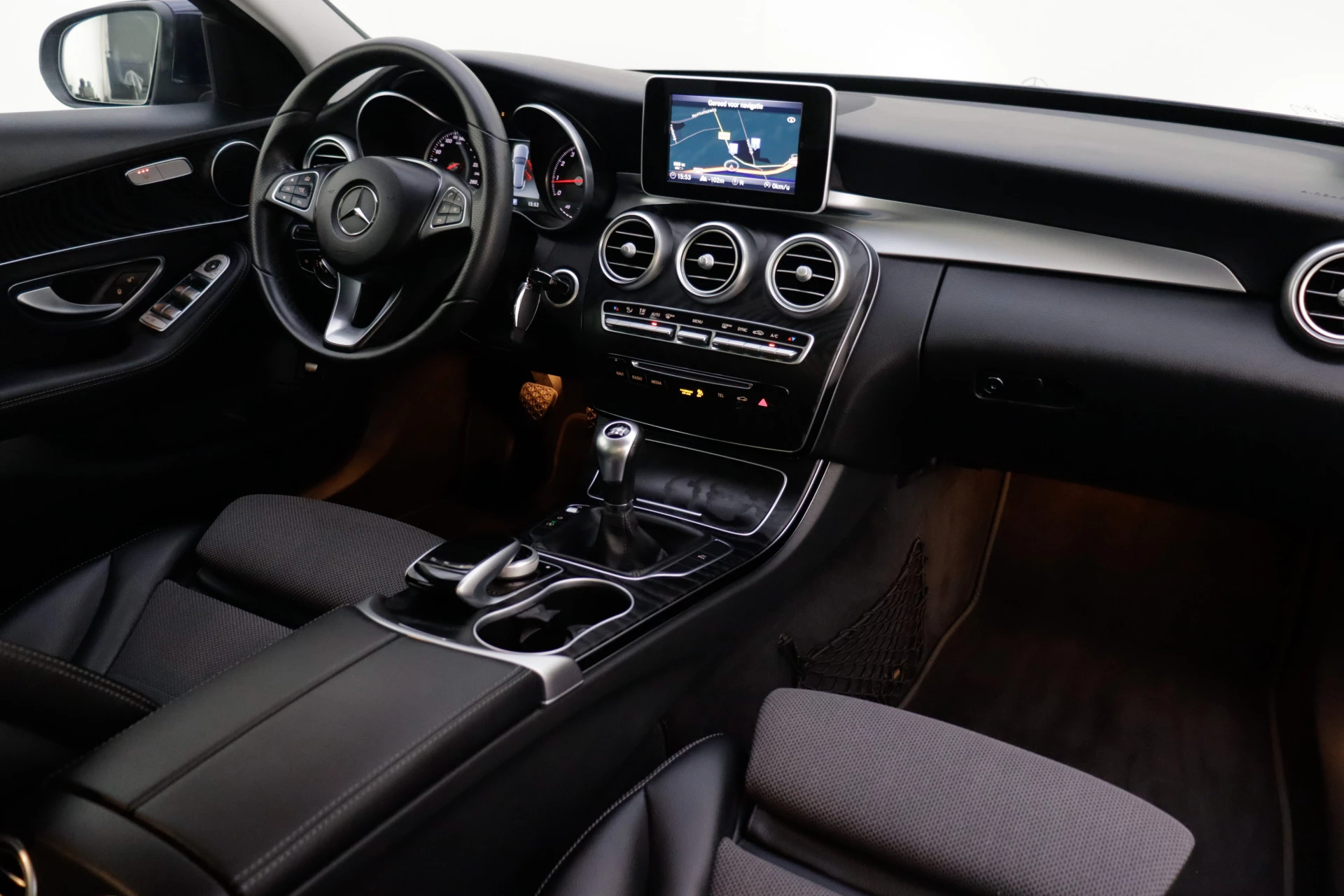 Vergeten af te sluiten? Bandenspanning onvoldoende? De speciale app geeft u direct een seintje met behulp van Connected Services. Het navigatiesysteem met harde schijf zorgt ervoor dat u altijd de juiste en snelste route vindt. Ook over uw schouder ziet u onderweg niet alles wat er aan de achterzijde gebeurt. Daarom heeft deze Mercedes-Benz C-klasse Estate een achteropkomend verkeer waarschuwing. De automatische airconditioning zorgt voor een behaaglijk klimaat in de auto. Al uw favoriete radiozenders letterlijk onder handbereik: dat kan met audiobediening op het stuur. De Mercedes-Benz is standaard voorzien van: parkeersensoren voor en achter, regensensor, cruise control, automatisch dimmende buitenspiegels, lederen stuur en centrale deurvergrendeling met afstandsbediening.