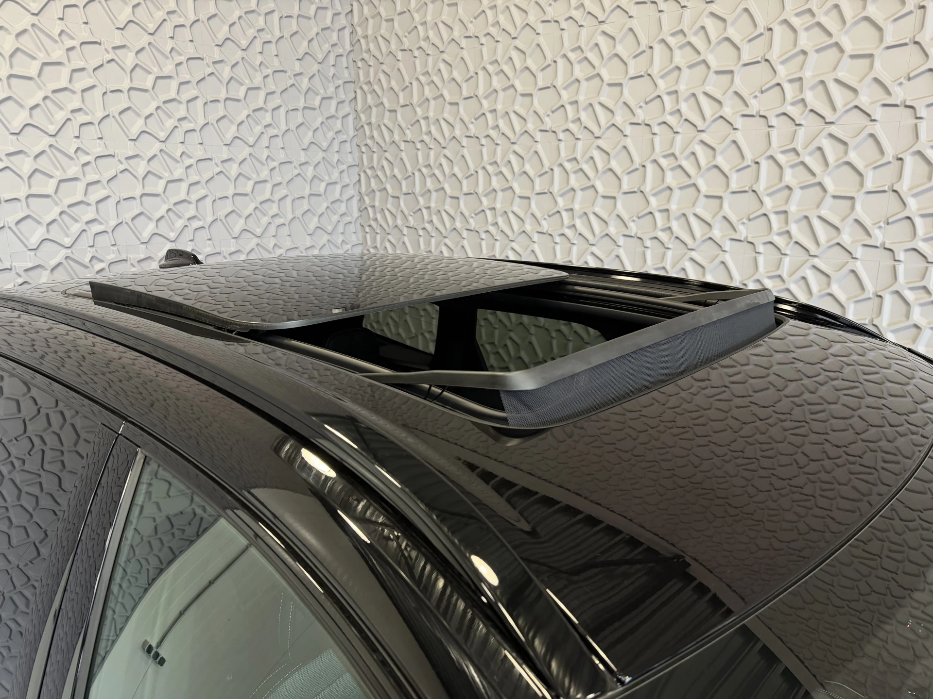 Black Edition: álles in hoogglans zwart — grille met Black Iron Mark, dakrails, raamlijsten en buitenspiegels — gecombineerd met Onyx Black metallic en zwarte lichtmetalen velgen voor een strakke, sportieve look.