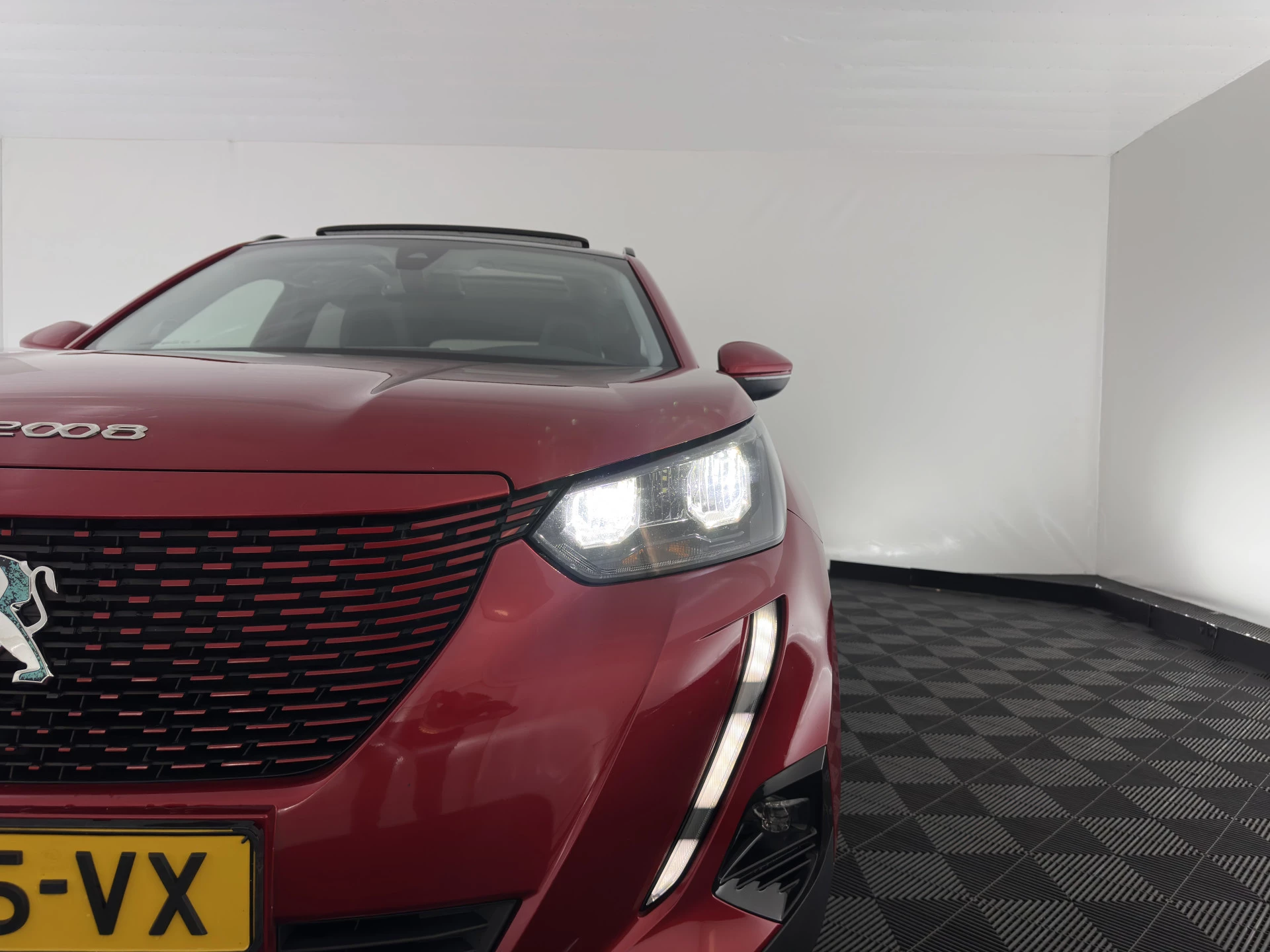 ⭐ Peugeot e-2008 EV Allure 50 kWh – Automaat | Elektrisch | in Rouge Elixir met luxe "Isabella" leder stof interieur in zwartt | Modern, Stijlvol & Efficiënt