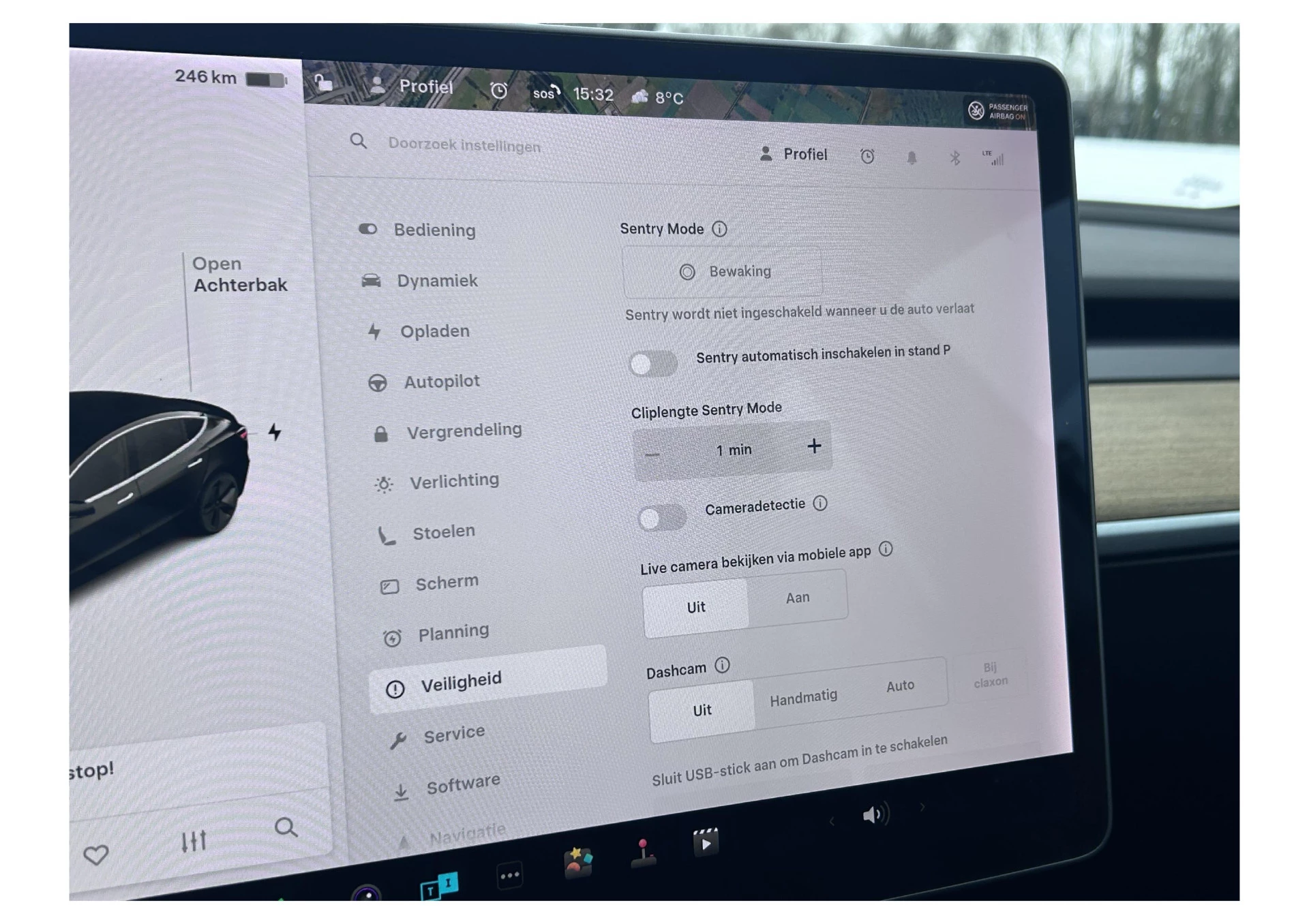Alarm, Dashcam en Beveiligingsmodus