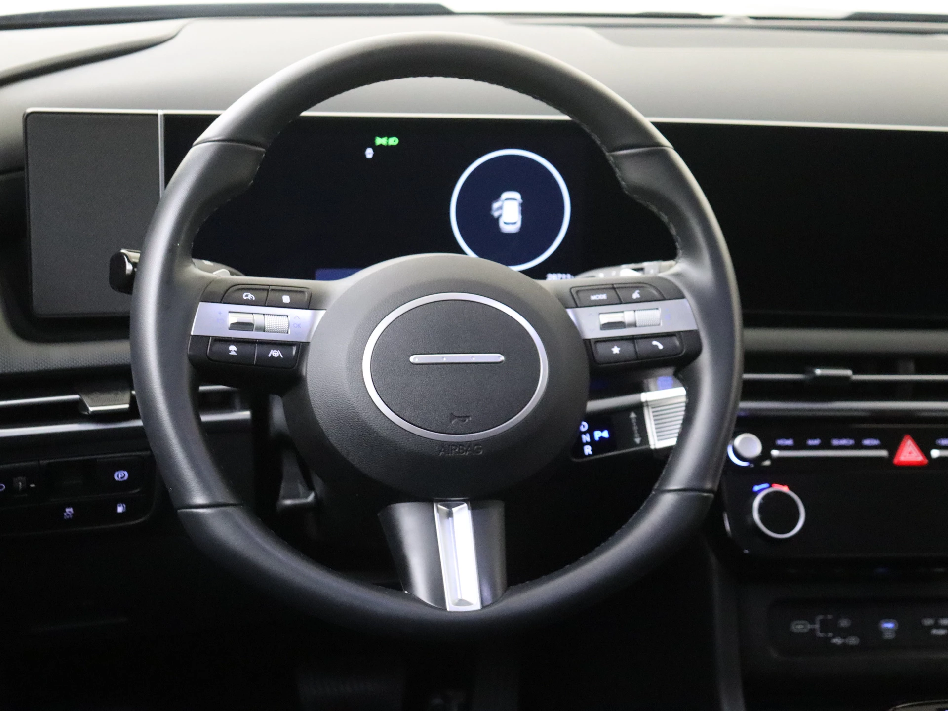 Alle functies voor een veilige en zuinige rit worden overzichtelijk weergegeven op het digitale dashboard. Comfortabel en veilig achteruitrijden gaat gemakkelijker dan ooit met behulp van de achteruitrijcamera. Met adaptive cruise control houdt de auto zelfstandig afstand tot jouw voorligger. Een veiligheidsverhogende optie waarmee je comfortabel onderweg bent. Dankzij de spraaksturing bedien jij verschillende functies zonder jouw handen van het stuur te halen. Handig en veilig: Connected Services. Alle vitale functies en data van de auto check je via de app op je smartphone. Je bent in deze Hyundai ook voorzien van navigatiesysteem, automatische airconditioning, schakelpaddles aan het stuur, draadloos opladen, DAB ontvangst en regensensor.