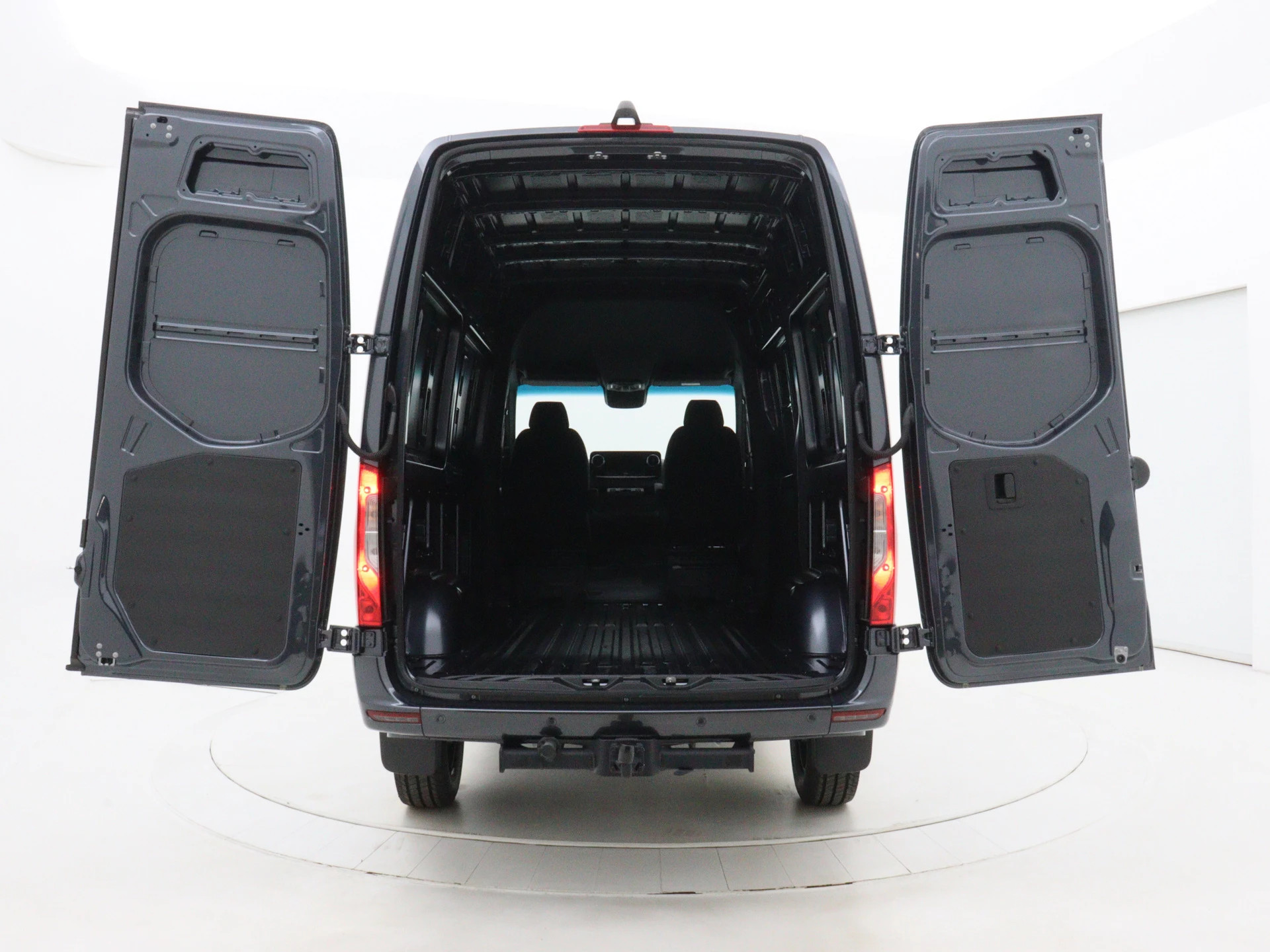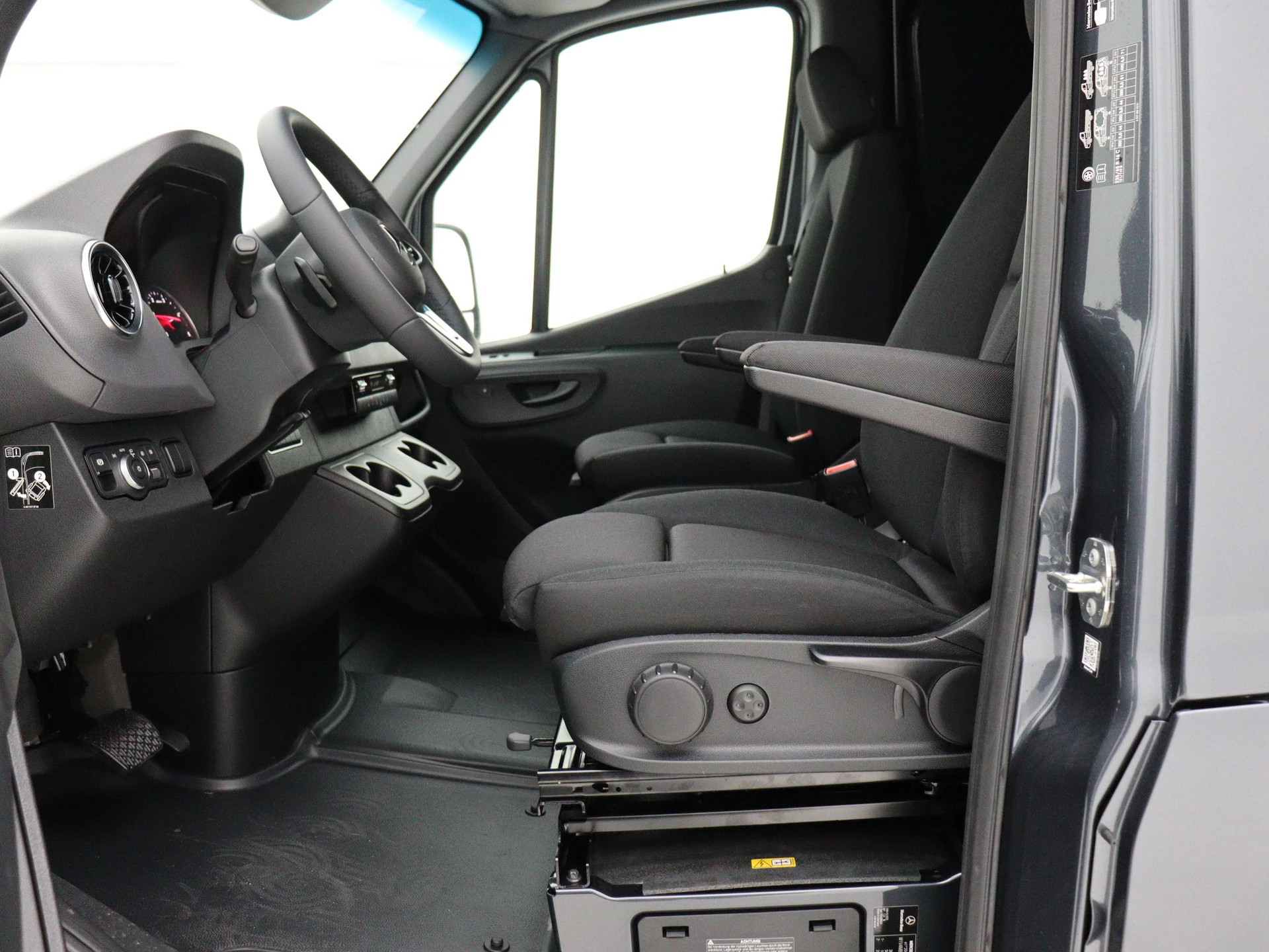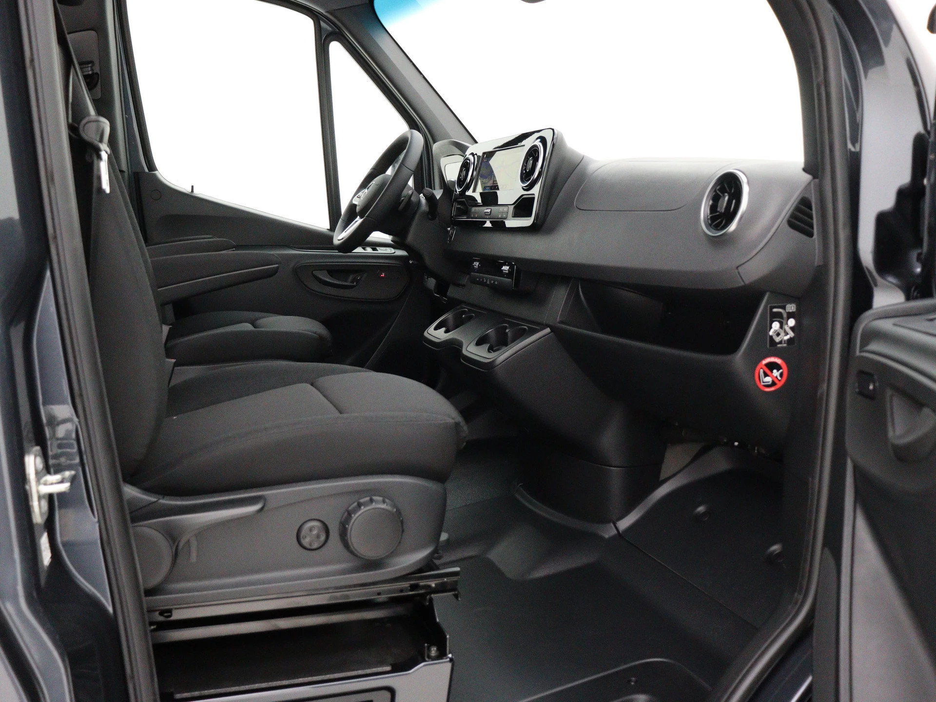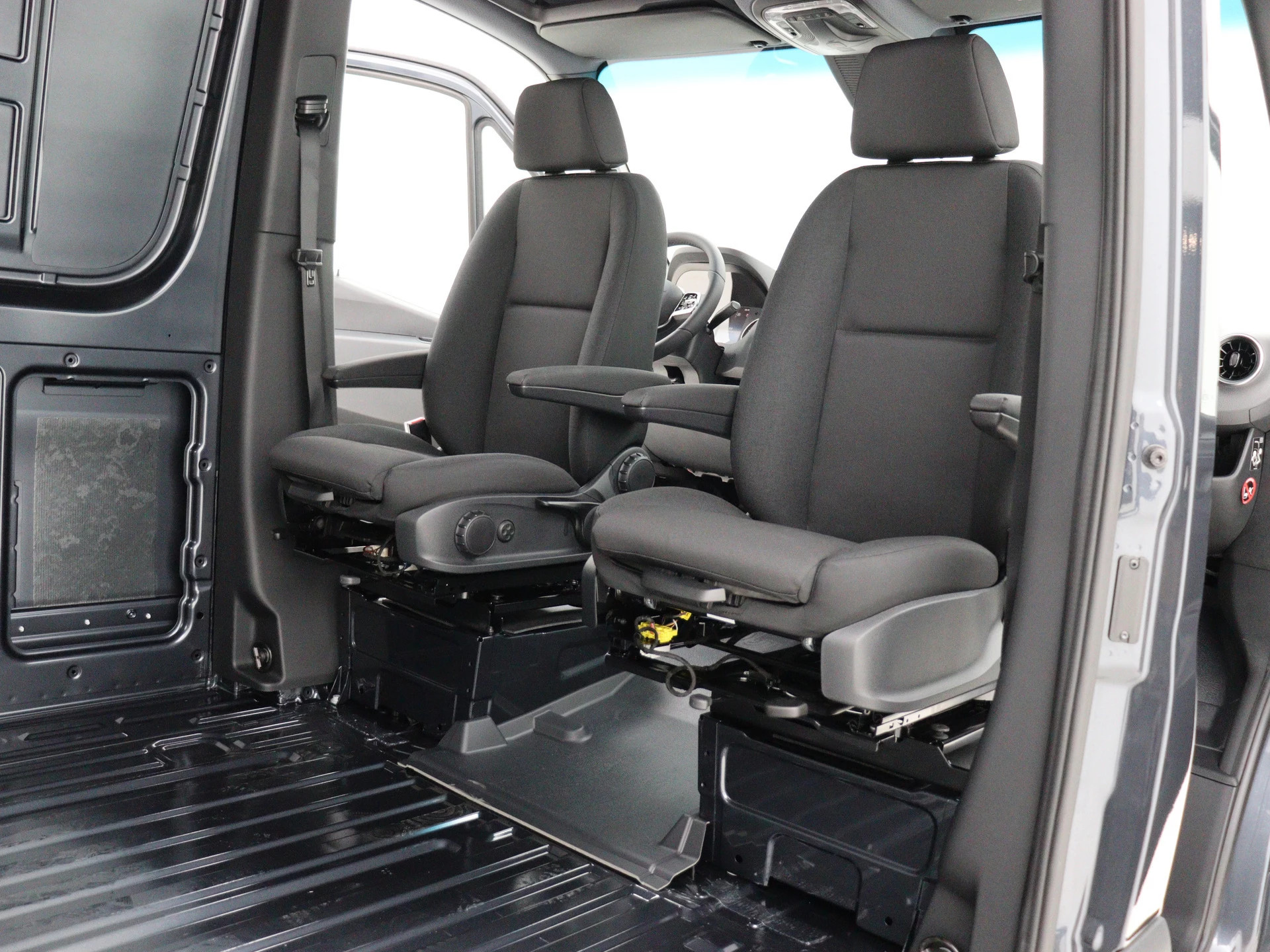 Ook praktisch: de voorstoelen zijn 180 graden draaibaar, ideaal voor overleg of laptopwerk onderweg.