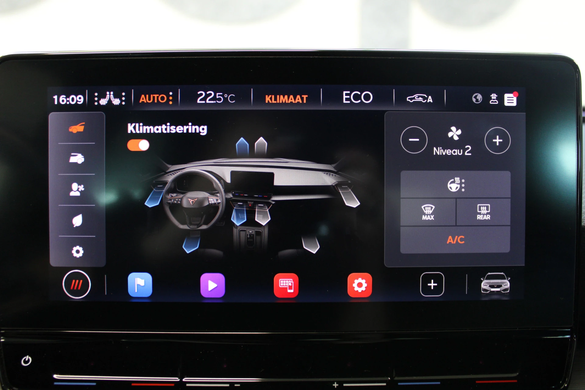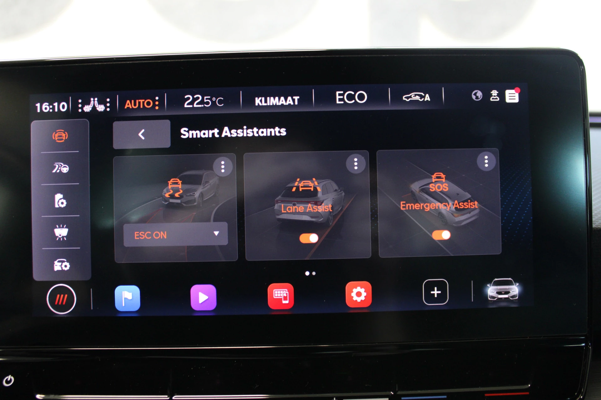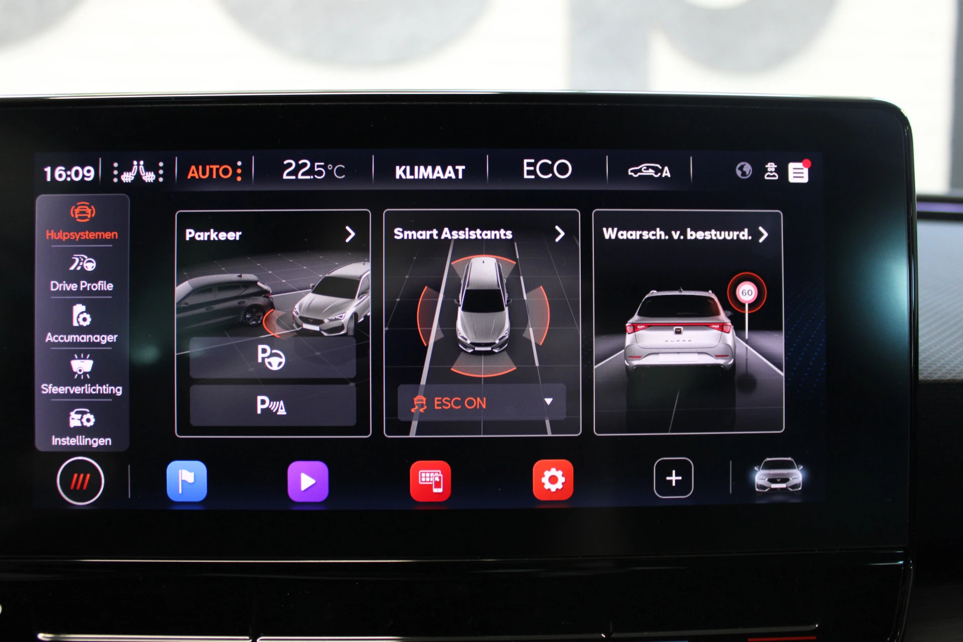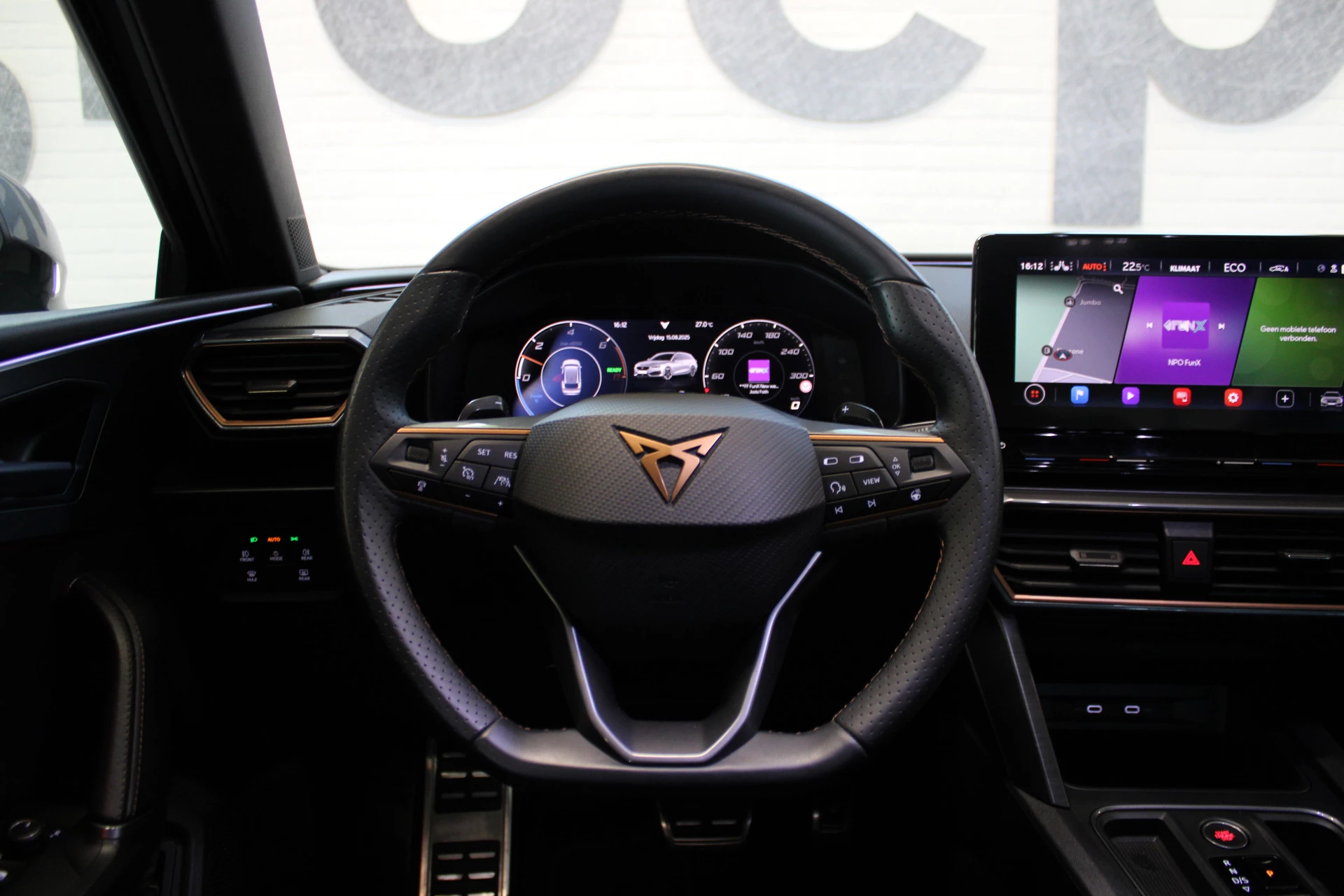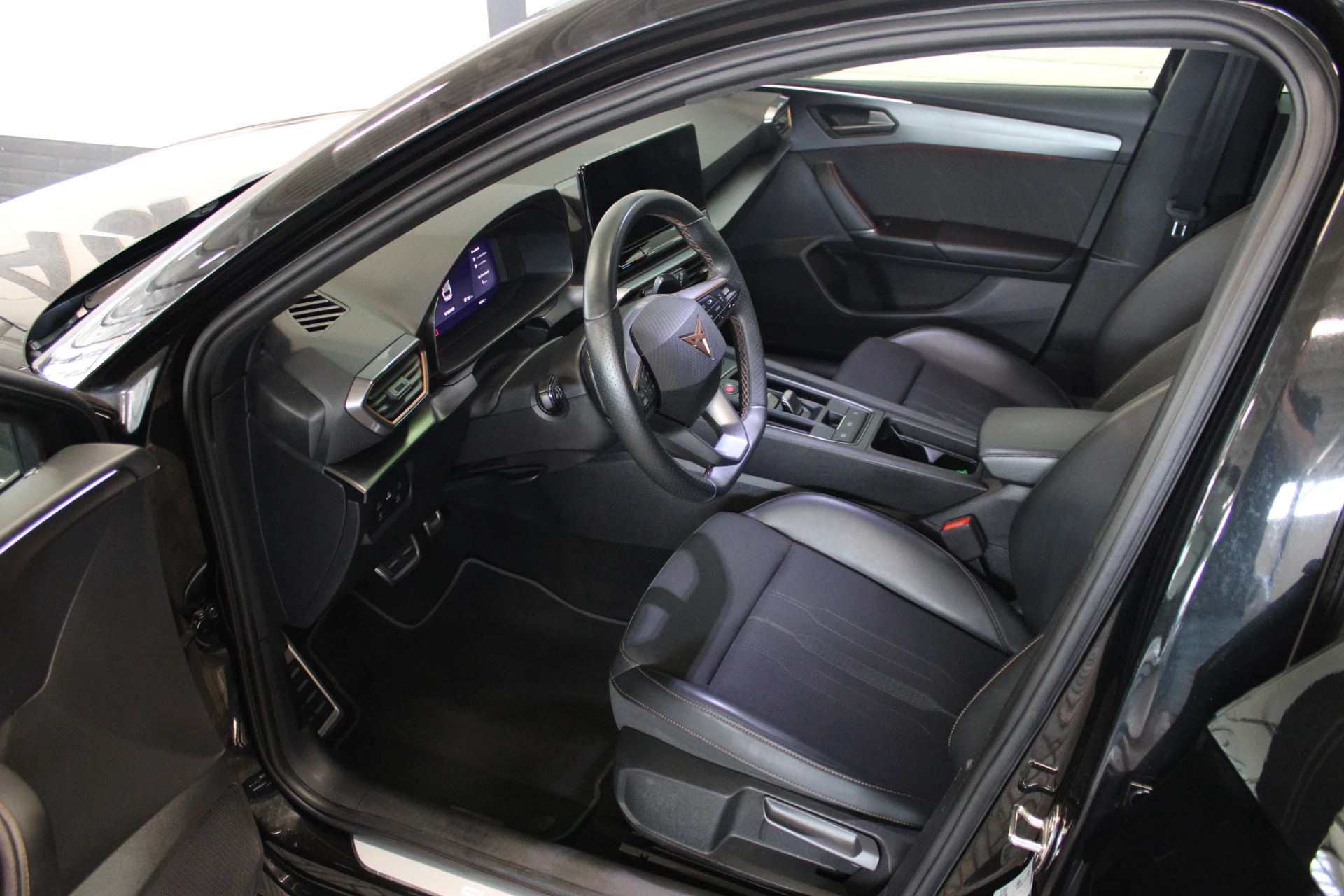 Pragmatisch en veilig als deze auto is, beschikt hij over diverse veiligheidssystemen. Onderweg fungeert de verkeersbord-detectie als het ware als uw bijrijder en attendeert u op de verkeersborden langs de weg. Mooi binnen de lijnen van de rijstrook blijven? Het Lane-keeping systeem helpt altijd een handje. Forward collision warning is een automatisch waarschuwingssysteem dat direct in werking treedt bij gevaar voor een kop-staartbotsing. In deze CUPRA vinden we verder een dodehoekdetectie, hill hold functie, vermoeidheidsherkenning, autonoom remsysteem en bandenspanningcontrolesysteem.
