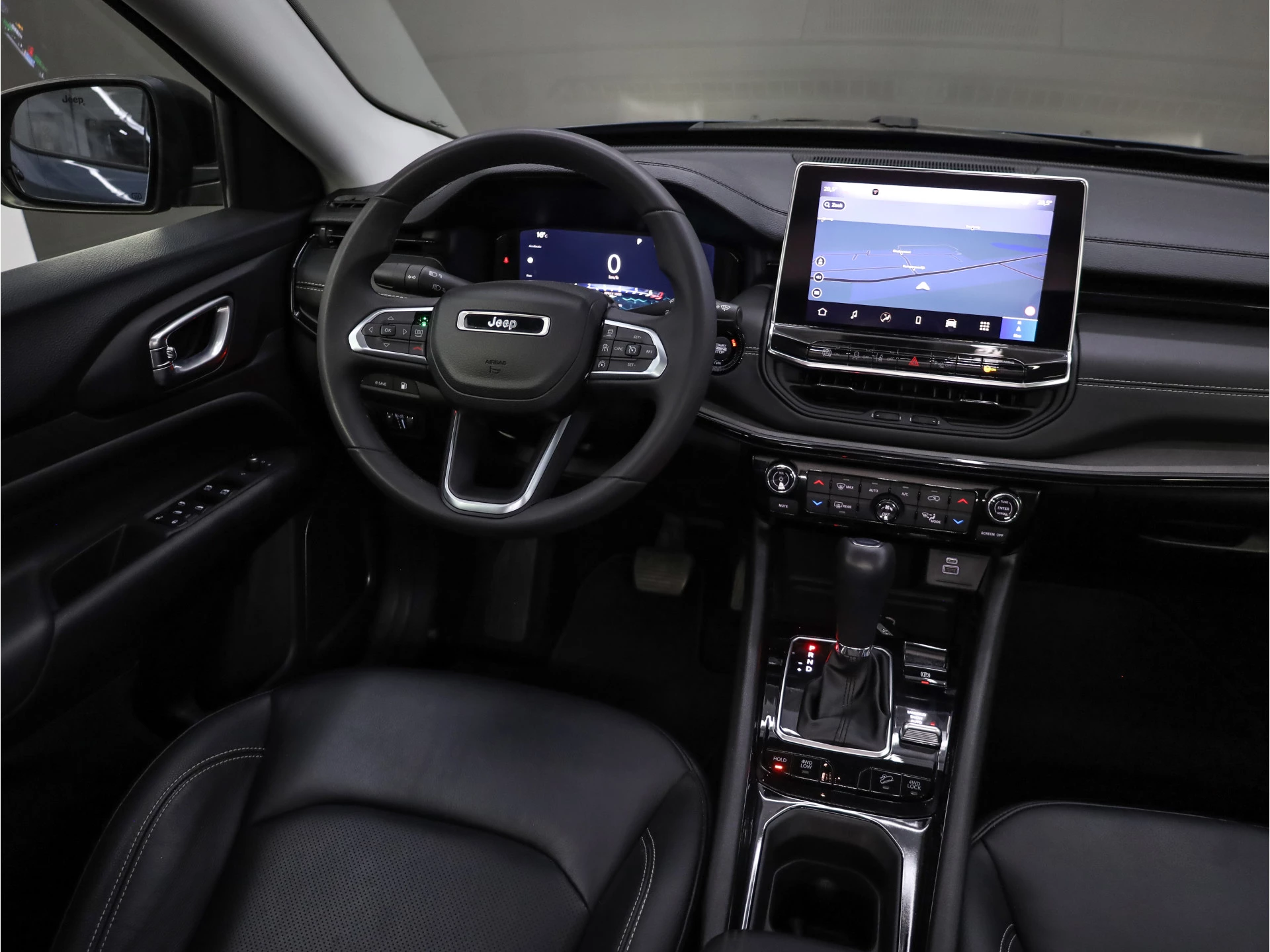 Het digitale dashboard is qua lay-out en zichtbaarheid superslim ingedeeld. Alle functies in één keer in beeld! Alles vrij achter? De achteruitrijcamera laat het meteen zien. Adaptive cruise control houdt de ingestelde snelheid vast en houdt afstand tot het voertuig voor u. Dankzij Connected Services heeft u overal en altijd uw dashboard op zak. Alle belangrijke functies zijn te checken via de app. Onderweg kunt u veilig genieten van het audiosysteem met DAB-radio en het full map navigatiesysteem. Want in deze Jeep bedient u ze vanaf het stuurwiel of met uw stem. En deze auto heeft ook automatische airconditioning, draadloos opladen, regensensor, keyless entry, automatisch dimmende binnenspiegel en lederen stuur als standaard uitrusting.