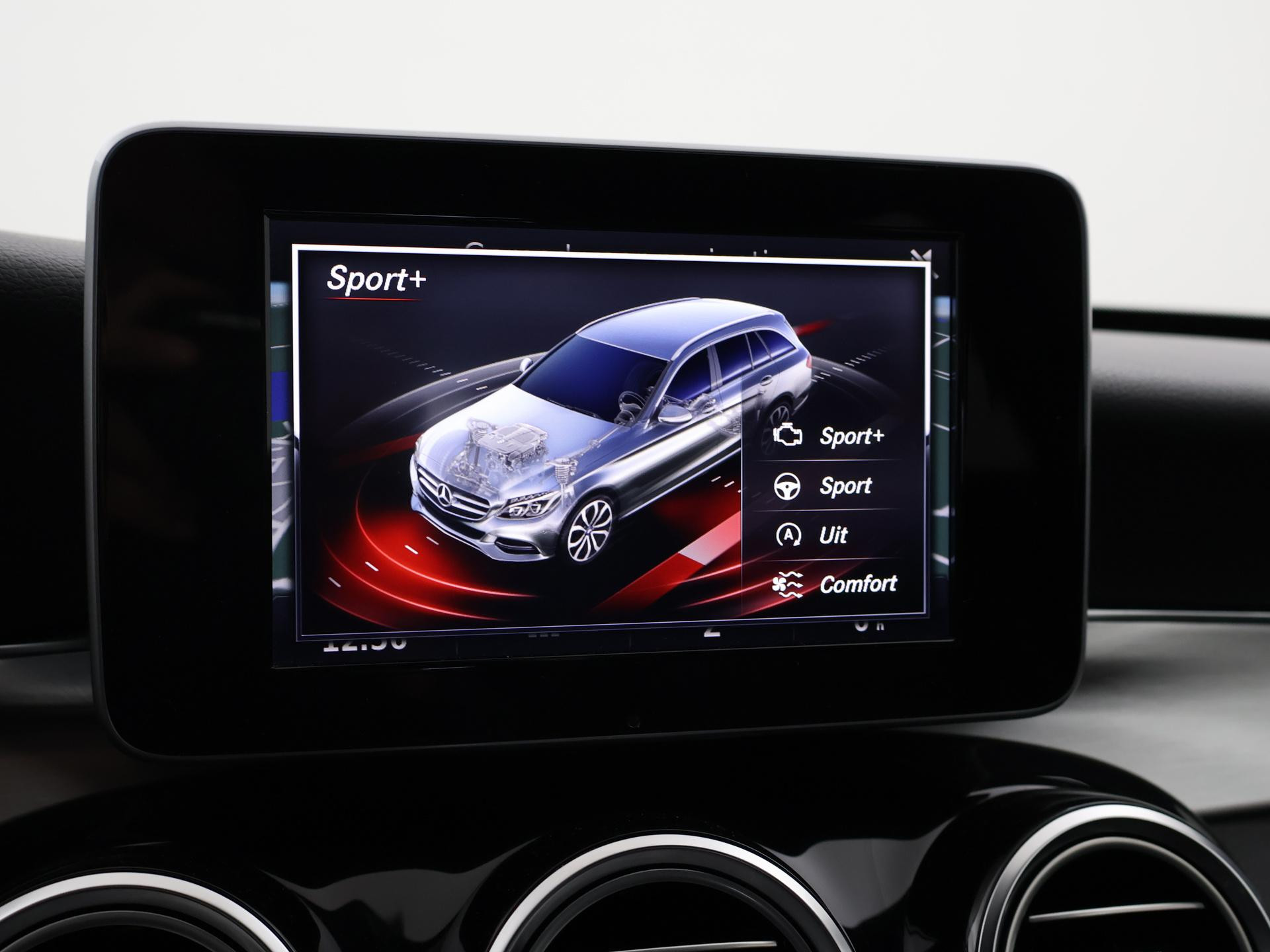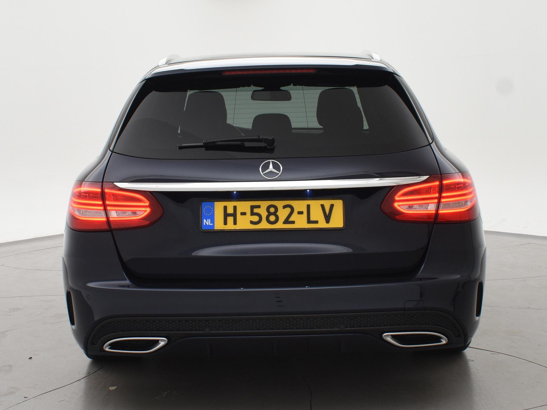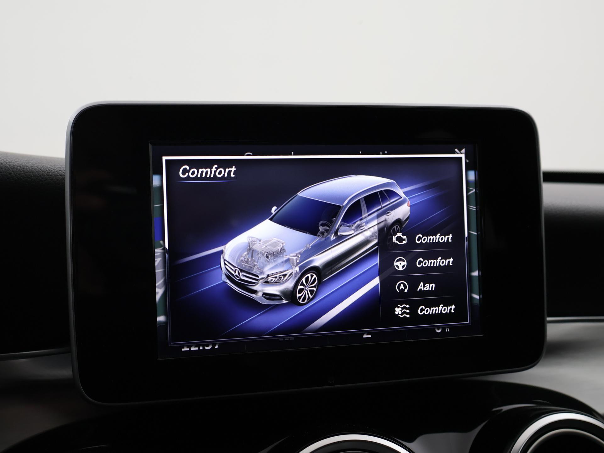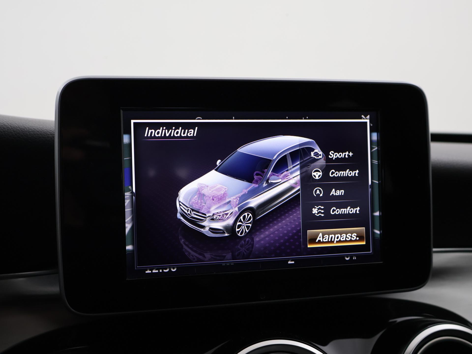 Mercedes-Benz C-klasse Estate 180 diesel handgeschakeld met 6 versnellingen, AMG Sport uitvoering, Cavansite Blue metallic exterieurkleur, Volledig (kunst)leder sportinterieur, Sportstoelen met verlengbaar zitvlak, LED koplampen, LED achterlichten, Stoelverwarming met 3 standen, Bluetooth telefoonverbinding met audiostreaming, Navigatiesysteem met kaartweergave, Lichtmetalen velgen AMG, Elektrische achterklep, Diamond grill, Cruise control, Climate control. De bestuurdersstoel heeft scheurtjes. Er zitten Burmester speakerkappen in de deurpanelen, maar wij hebben de indruk dat er niet echt Burmester in zit.