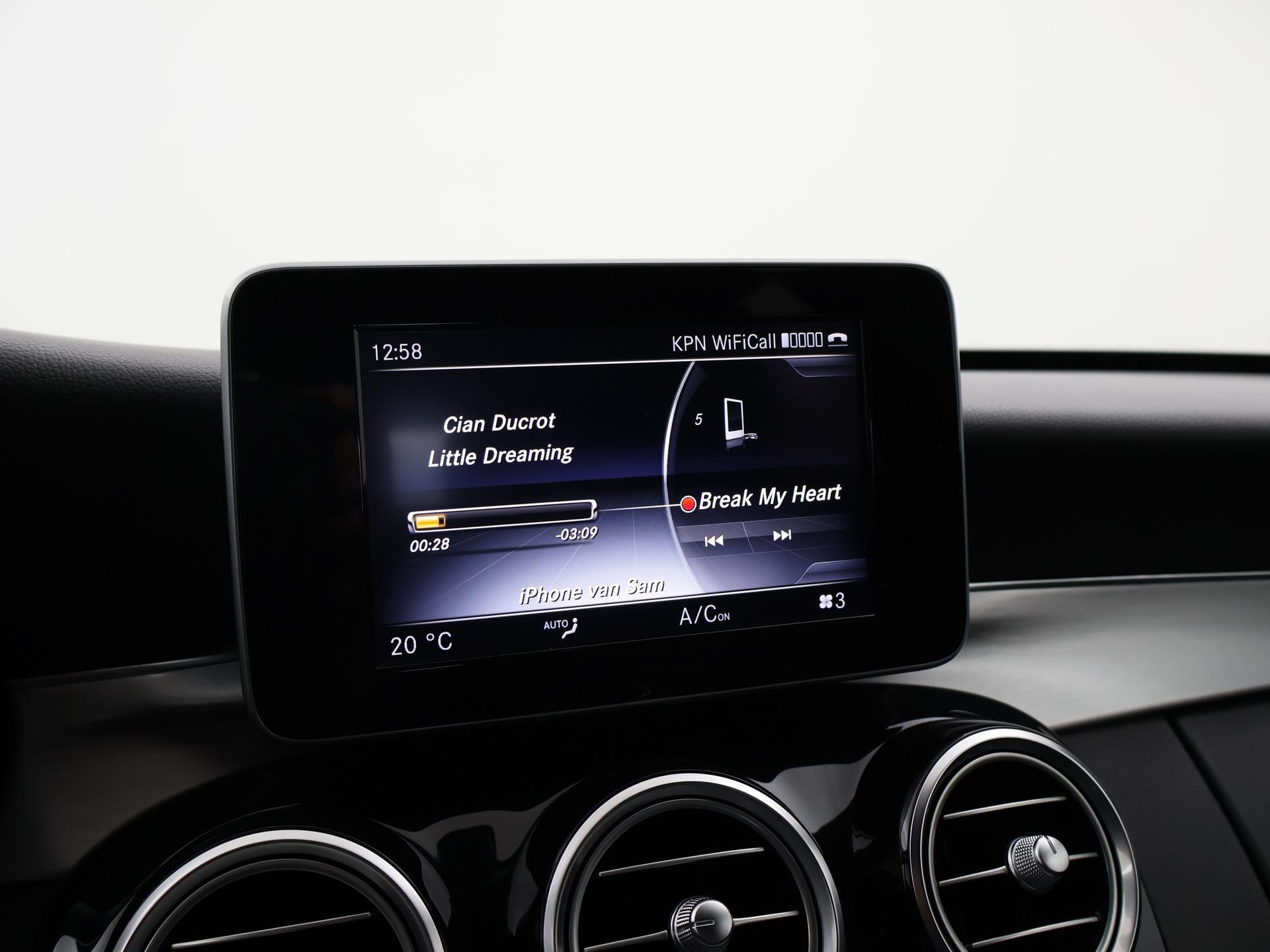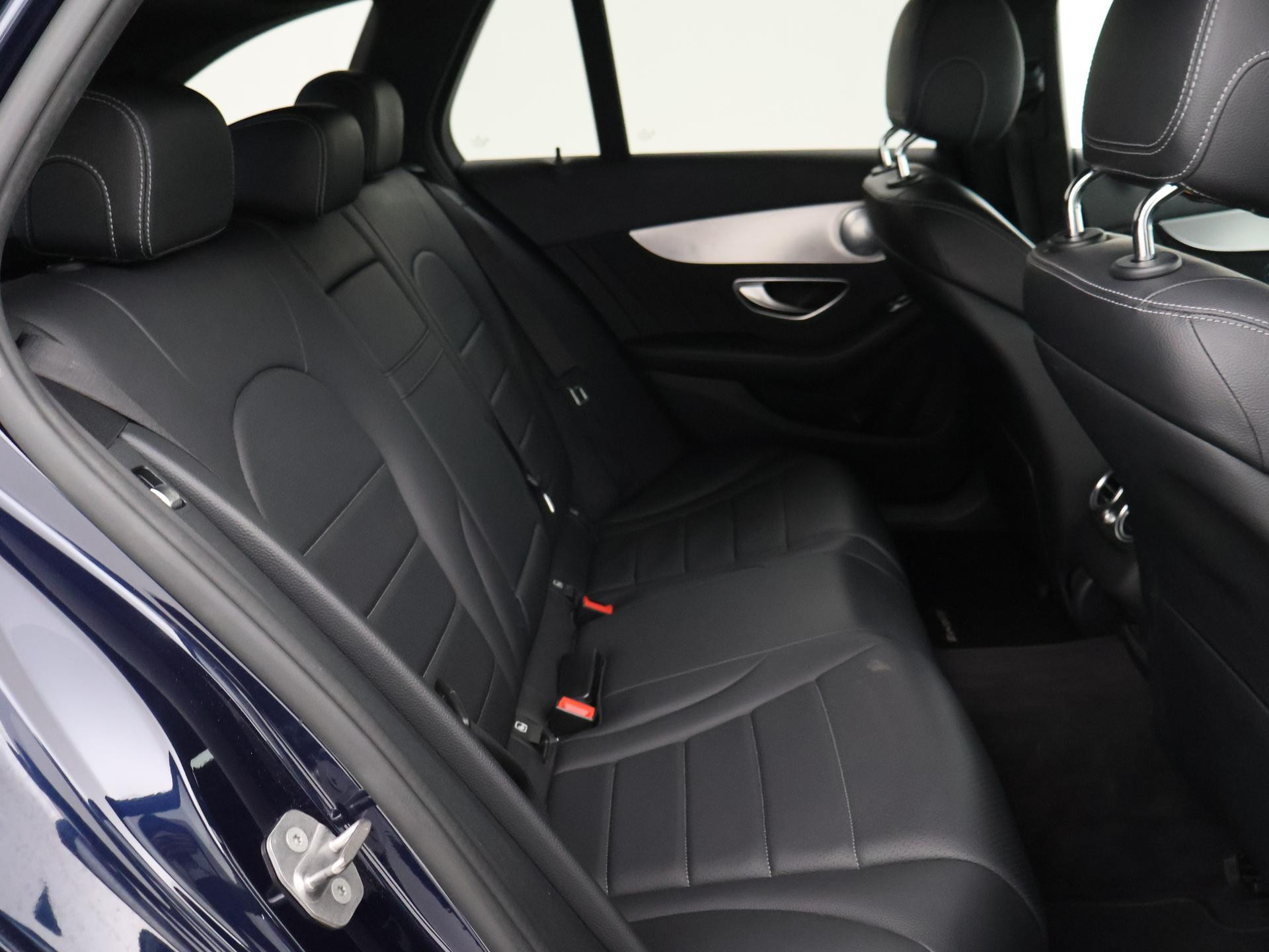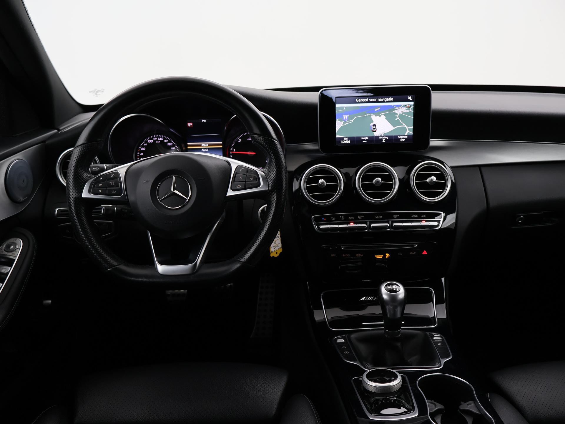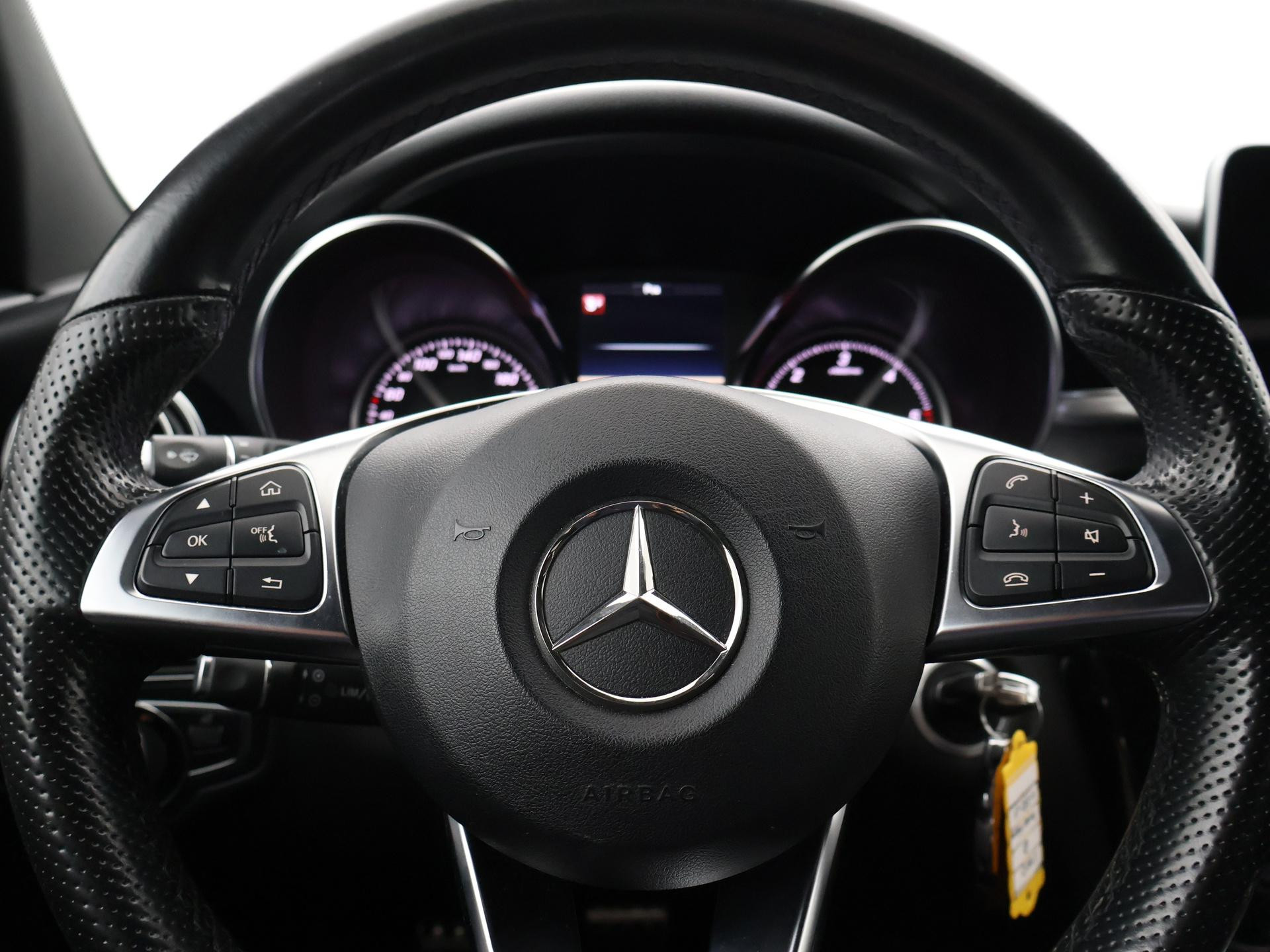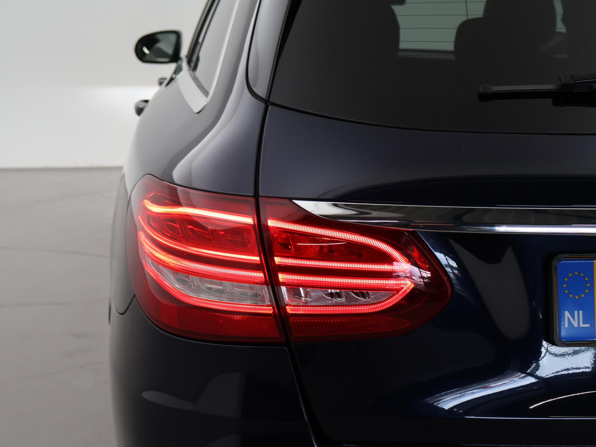 Mercedes-Benz C-klasse Estate 180 diesel handgeschakeld met 6 versnellingen, AMG Sport uitvoering, Cavansite Blue metallic exterieurkleur, Volledig (kunst)leder sportinterieur, Sportstoelen met verlengbaar zitvlak, LED koplampen, LED achterlichten, Stoelverwarming met 3 standen, Bluetooth telefoonverbinding met audiostreaming, Navigatiesysteem met kaartweergave, Lichtmetalen velgen AMG, Elektrische achterklep, Diamond grill, Cruise control, Climate control. De bestuurdersstoel heeft scheurtjes. Er zitten Burmester speakerkappen in de deurpanelen, maar wij hebben de indruk dat er niet echt Burmester in zit.