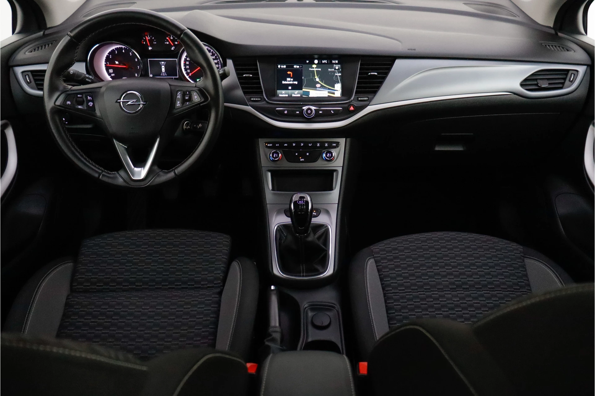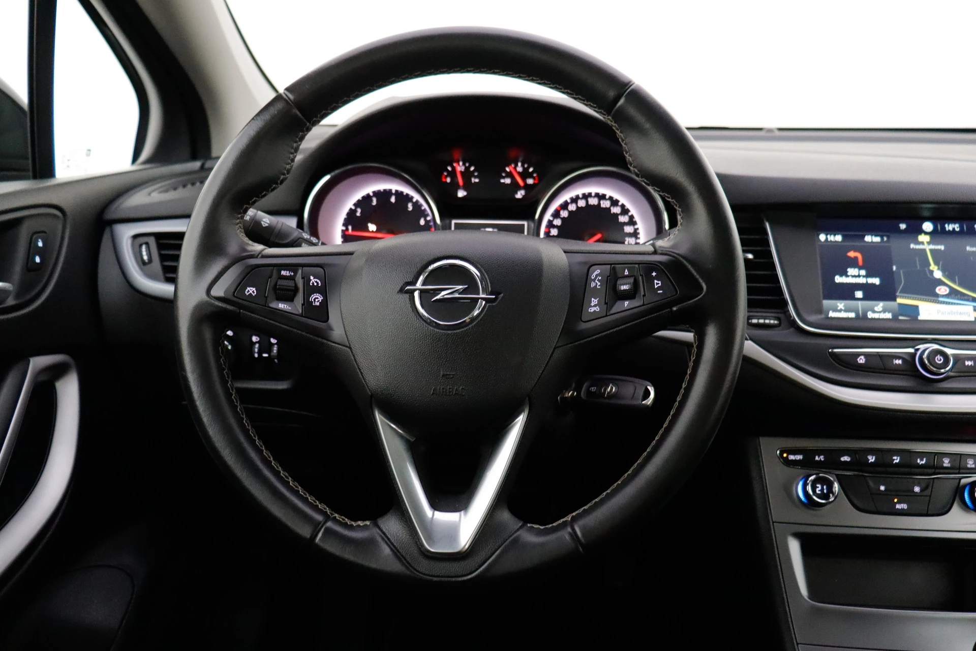 Parkeer en kijk niet om! De achteruitrijcamera doet dat voor u. In deze Astra vindt u niet alleen schakelaars op het stuur om het navigatiesysteem te bedienen en het audiosysteem met DAB-ontvangst, maar er is ook spraakbediening. Ook is de auto voorzien van electronic climate control. Om de veiligheid onderweg te verhogen, heeft deze Opel zowel een automatisch inschakelbare verlichting als een regensensor aan boord, zodat hij zelf de verlichting en de ruitenwissers kan inschakelen. Voorzien van cruise control, dus vriendelijk voor de inzittenden én de benzinetank. Ook is de Opel uitgerust met: lederen stuur, centrale deurvergrendeling met afstandsbediening en boordcomputer.