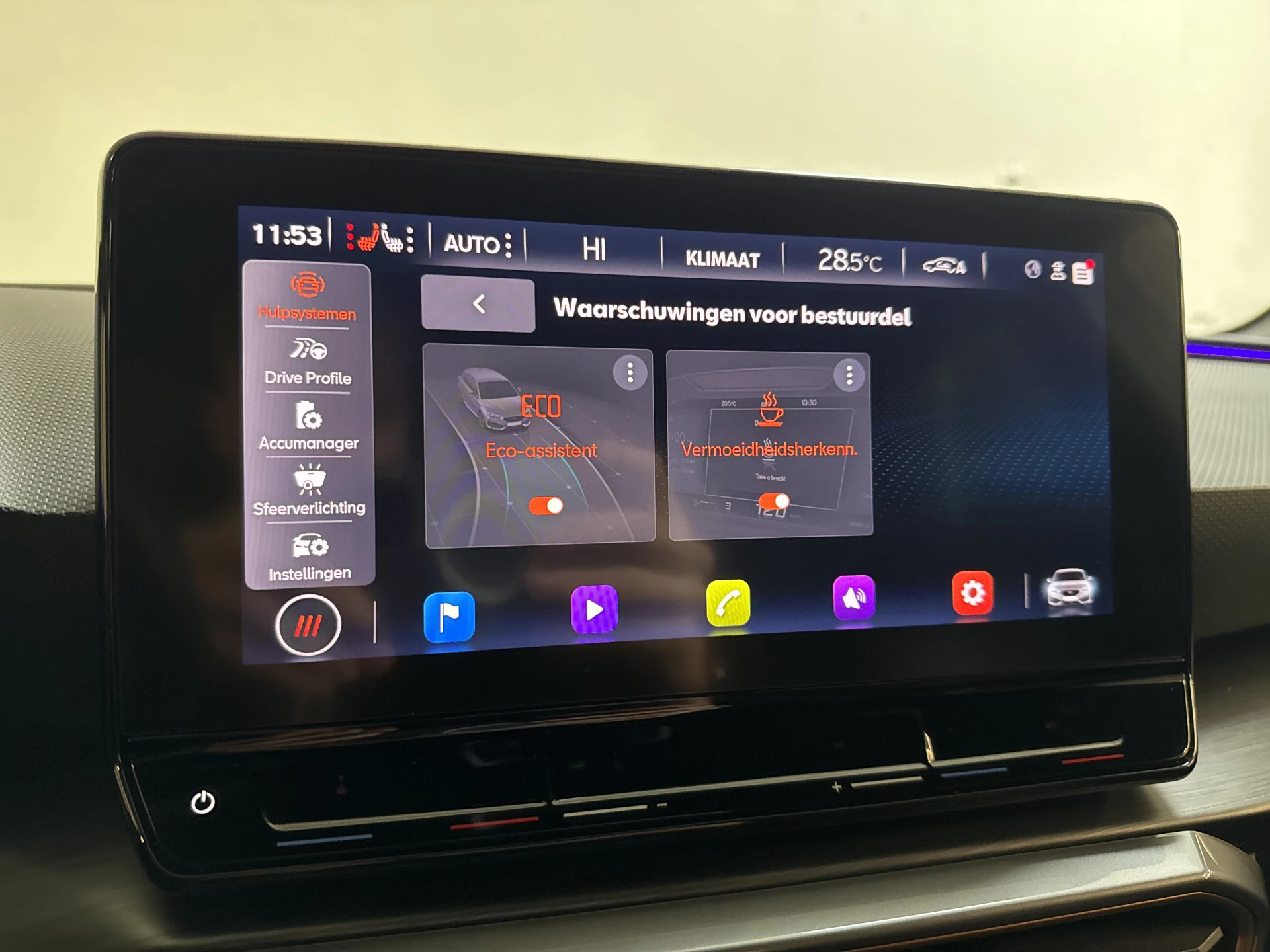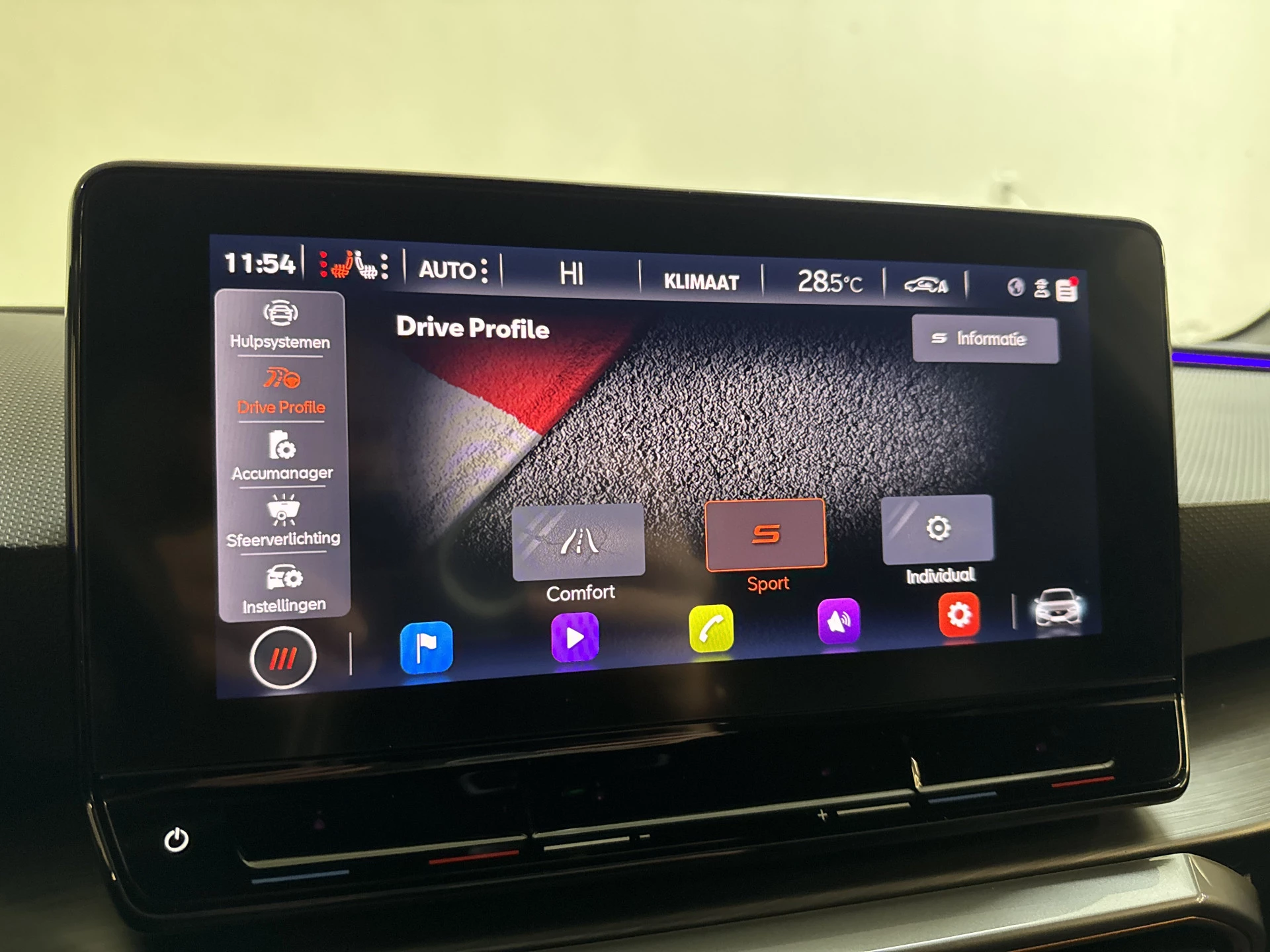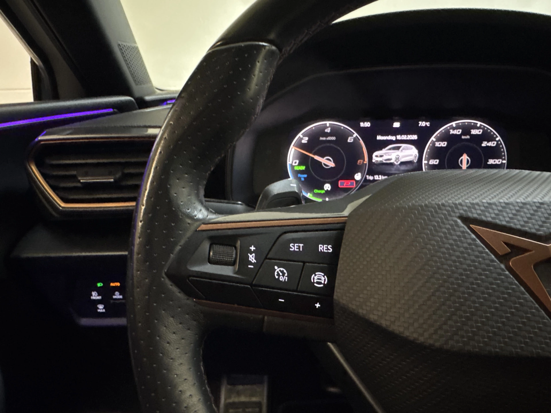 Terwijl je instapt in de CUPRA Leon e-HYBRID 204PK DSG BUSINESS SPORT, voel je meteen dat dit geen gewone auto is. De sportieve kuipstoelen omsluiten je perfect, en zodra je de startknop indrukt, wordt de wereld om je heen stil. In volledige elektrische modus glijdt de CUPRA geruisloos over de weg, ideaal voor dagelijkse ritten zonder brandstofverbruik. Maar zodra je het gaspedaal indrukt, voel je de kracht van de 204 pk sterke plug-in hybride aandrijving. De DSG-automaat schakelt razendsnel, waardoor elke rit soepel en dynamisch aanvoelt.