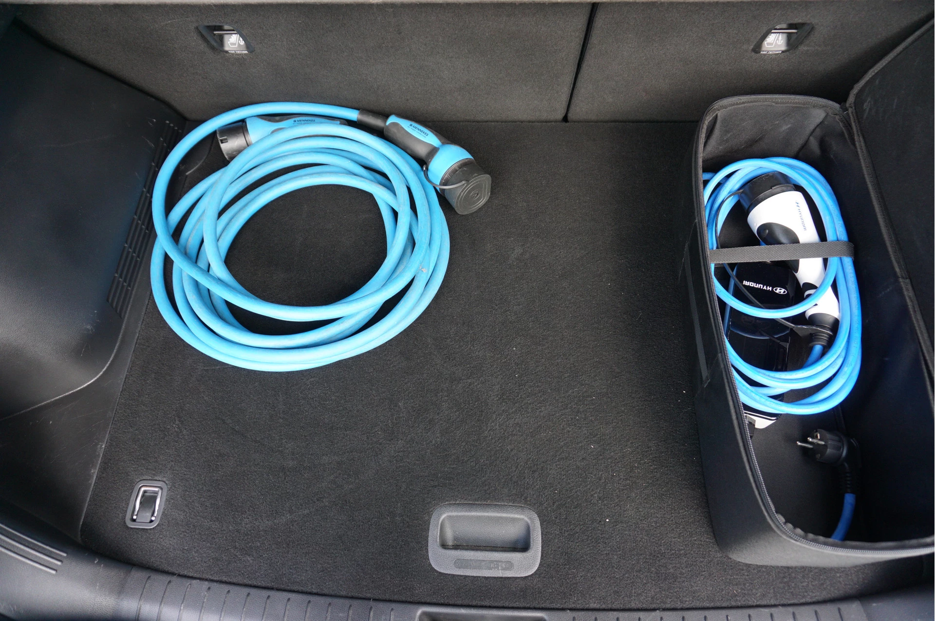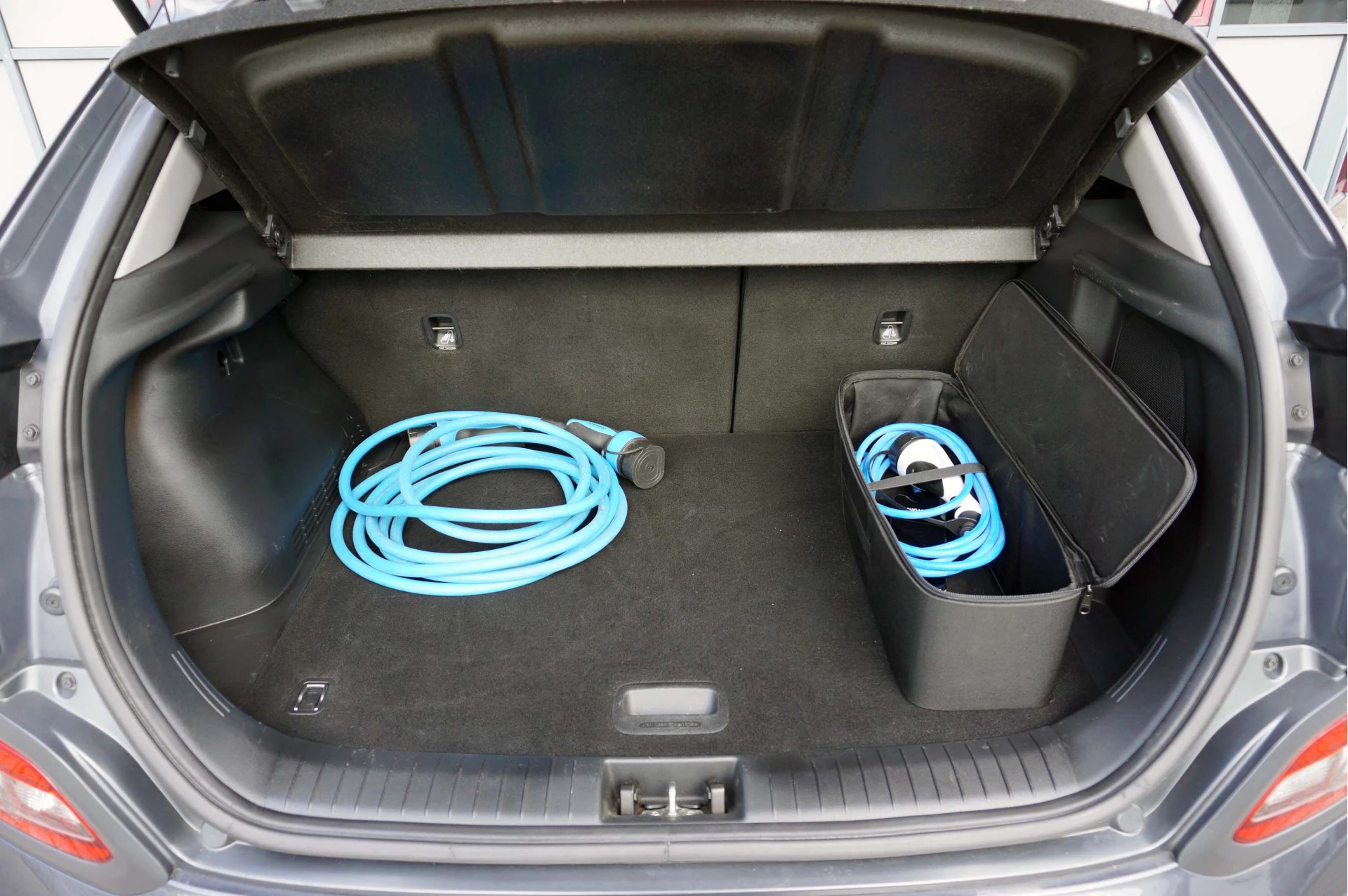 De accu van de Hyundai Kona EV heeft een capaciteit van 67,5 kWh. Daarvan is 64 kWh daadwerkelijk te gebruiken. Hiermee wordt in de praktijk een actieradius van ongeveer 480 kilometer gehaald. Opladen gaat via een Type 2 aansluiting en het laadvermogen van de boordlader is 11 kW. Hiermee is de accu in ongeveer 7 uur vanaf leeg weer helemaal opgeladen. Snelladen is mogelijk via een CCS aansluiting. Het maximale snellaadvermogen is 77 kW. De accu kan echter niet continu met dit vermogen geladen worden. In een gemiddelde snellaadsessie zal het gemiddelde snellaadvermogen ongeveer 64 kW zijn. De accu laadt daarmee in ongeveer 45 minuten van 10 tot 80%. Hiermee wordt ongeveer 380 kilometer aan actieradius toegevoegd.