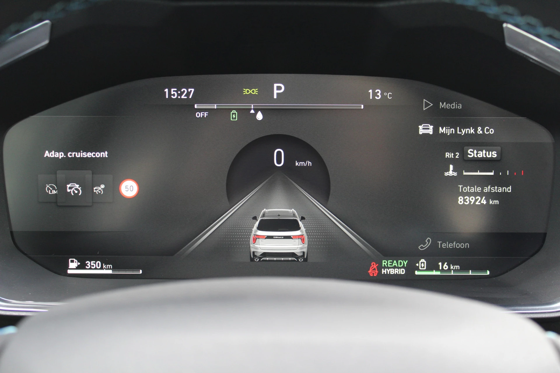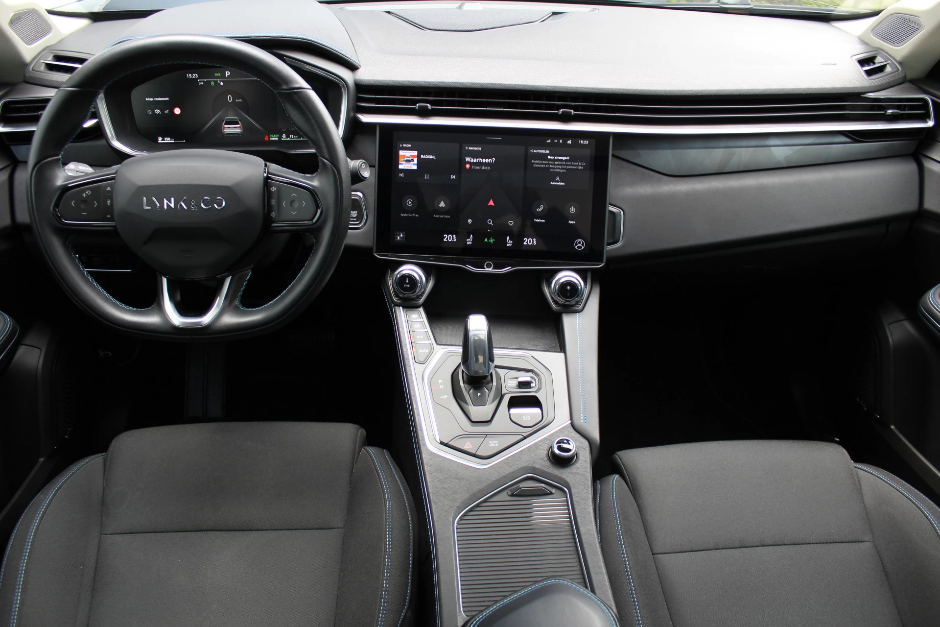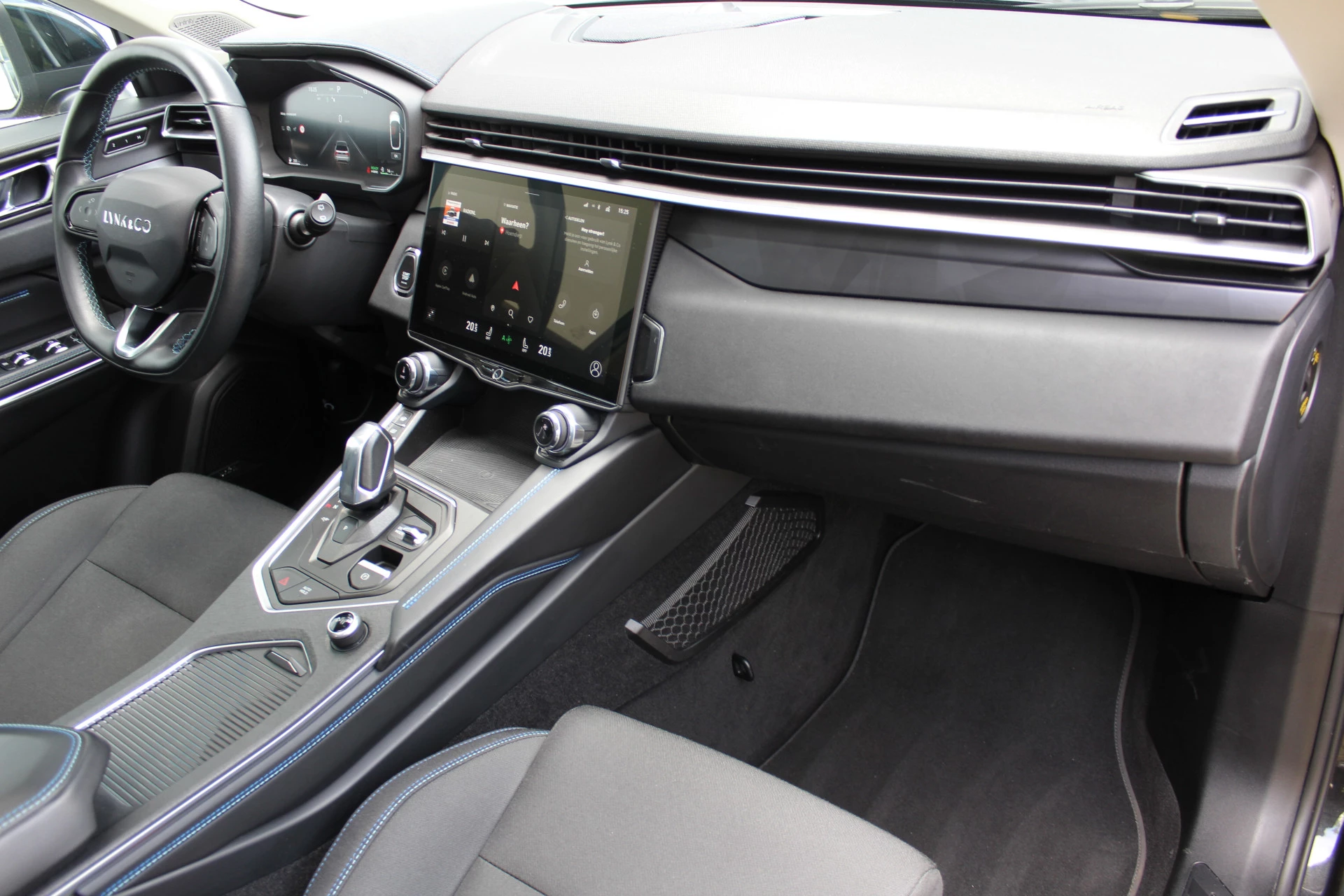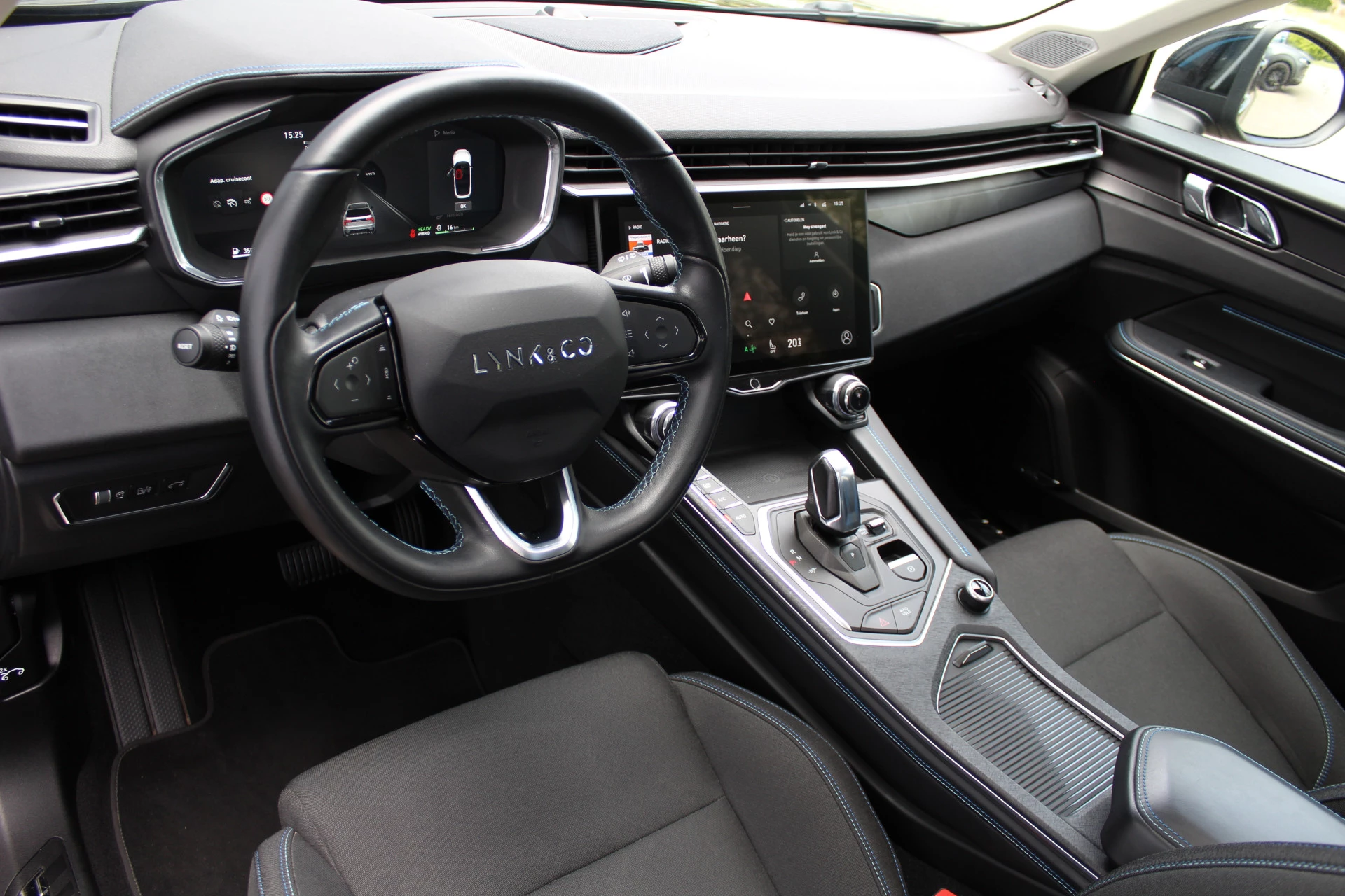 Pragmatisch en veilig als deze auto is, beschikt hij over diverse veiligheidssystemen. Onderweg zorgt verkeersborddetectie ervoor dat u geen waarschuwingsbord mist. Het Lane-keeping systeem zorgt voor een automatisch constante positie binnen de rijstrook. Afdwalen is uitgesloten. Kop-staartbotsingen vormen een belangrijk deel van de meest voorkomende aanrijdingen. De forward collision warning van deze auto voorkomt zulke botsingen geheel of reduceert de ernst van de schade aanzienlijk. Bovenop deze veiligheidsfeatures heeft deze Lynk & Co bovendien dodehoekdetectie, hill hold functie, brake assist en vermoeidheidsherkenning.