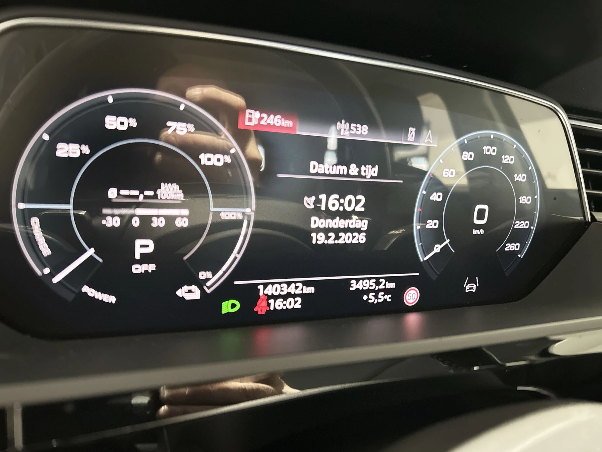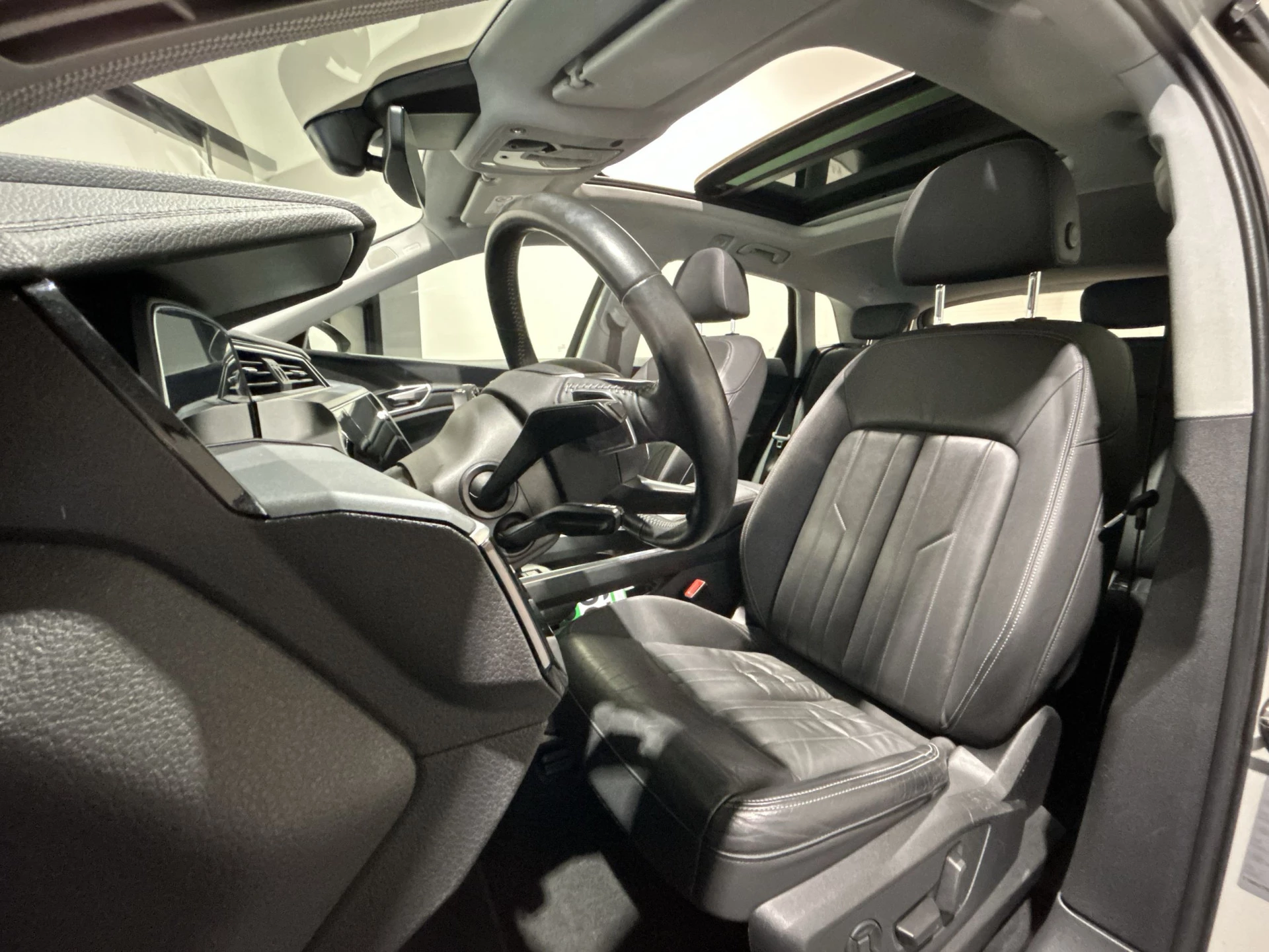 De nieuwste veiligheidssystemen komen in deze Audi e-tron samen. Het Lane-keeping systeem zorgt voor een automatisch constante positie binnen de rijstrook. Afdwalen is uitgesloten. Op een kop-staartbotsing zit niemand te wachten. Daarom is de forward collision warning onderweg constant alert en berekent via een sensor de veilige afstand tot voorliggers. U bent mede dankzij brake assist en bandenspanningcontrolesysteem steeds veilig onderweg.