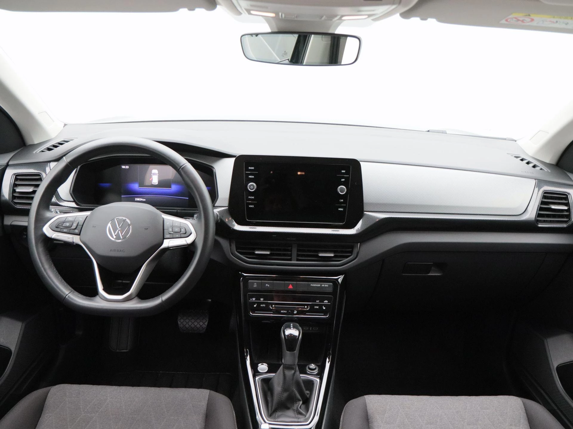 Binnenin biedt de T-Cross een comfortabele en overzichtelijke rijomgeving met stoffen bekleding, een lederen stuurwiel, stoelverwarming en elektronische climate control. De Virtual Cockpit presenteert alle rij-informatie digitaal en helder, terwijl Apple CarPlay en het infotainmentsysteem zorgen voor optimale connectiviteit.
