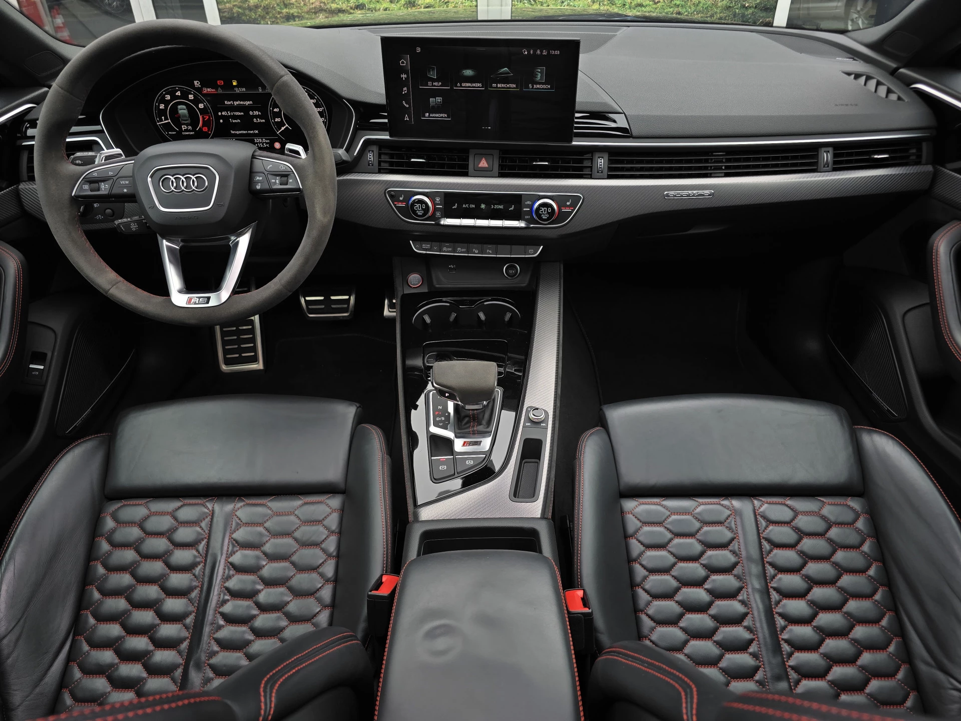 Deze auto is gebouwd voor liefhebbers. Voor mensen die houden van rijden, maar ook van comfort. De RS-sportstoelen met massagefunctie zorgen ervoor dat zelfs de langste ritten ontspannend aanvoelen. Terwijl je geniet van je favoriete muziek via het Bang & Olufsen geluidssysteem, houdt de 360 graden camera je moeiteloos op koers tijdens het inparkeren. Elk detail klopt. Van de Matrix LED-verlichting tot de zwarte optiekaccenten, van het virtuele cockpit display tot het MMI navigatiesysteem met touchscreen. Alles voelt premium, alles voelt doordacht.