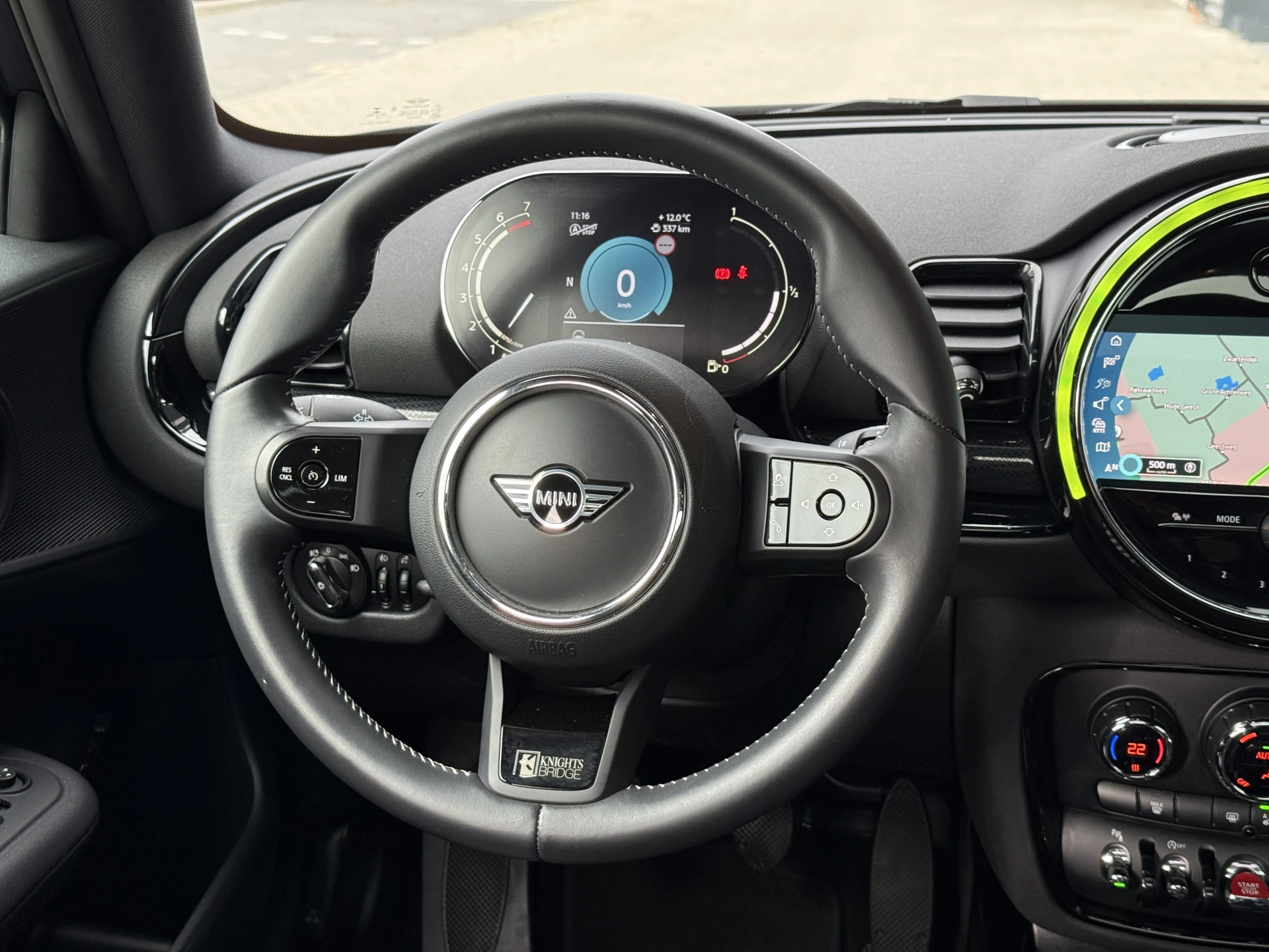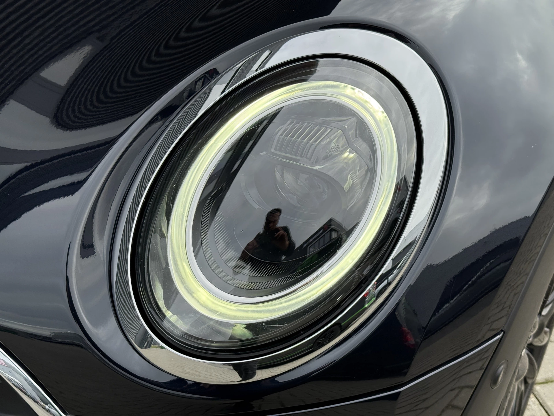 Schitterende Mini Clubman in Enigmatic Black metallic (heel diep donkerblauw) met hoogglans zwarte licht metalen velgen. Deze Clubman zit bomvol opties zoals: Panorama dak, achteruitrijcamera, cruise control, parkeersensoren voor + achter met parkeer assistent, draadloze telefoonlader, Apple Carplay, navigatie, virtuele cockpit, keyless entry and start, draadloze telefoonlader, etc..