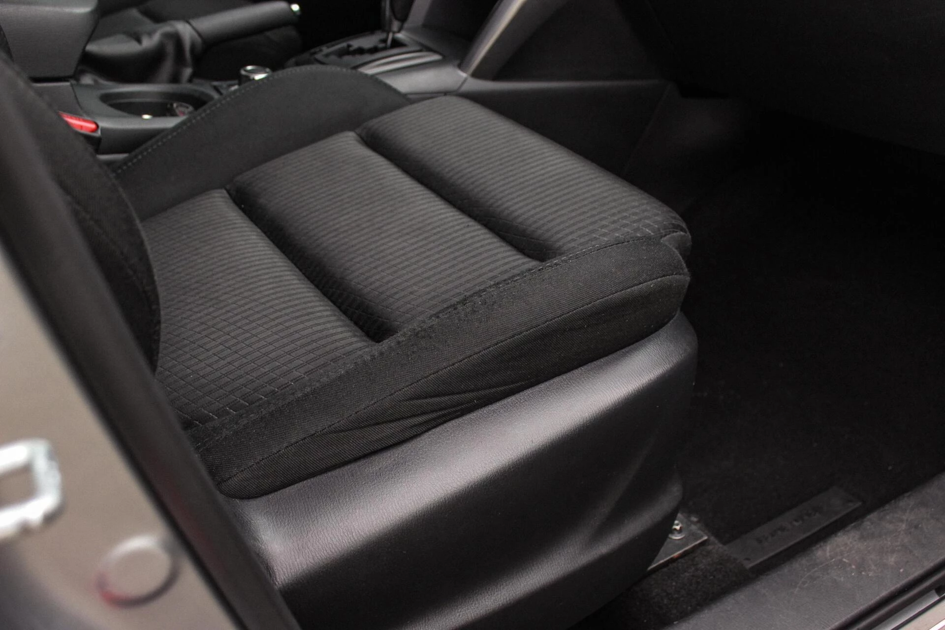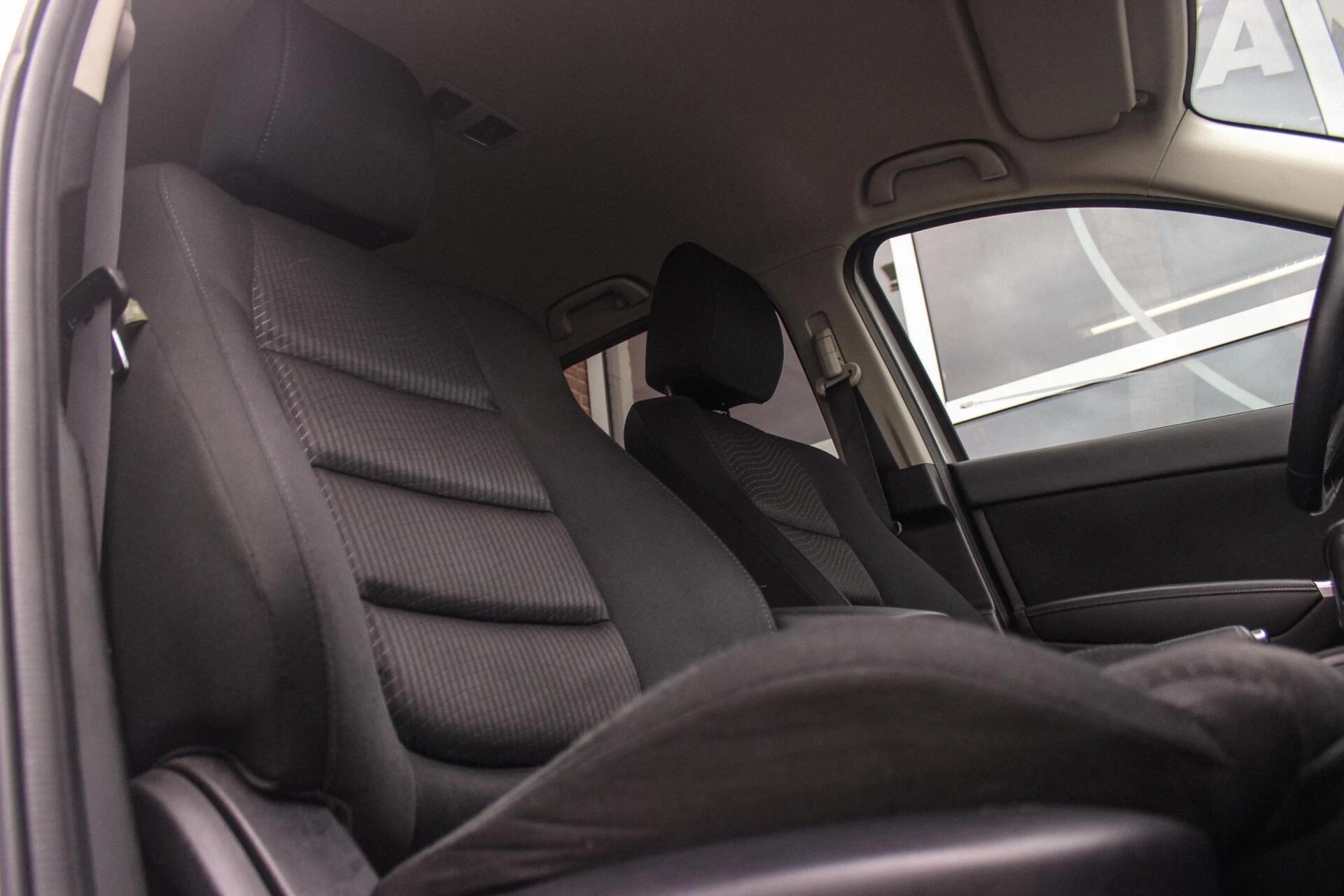 Van binnen een zwart kleurig interieur met hoogglans zwarte sierlijsten. Achterin een deelbare achterbank met ISO-fix aansluitingen.